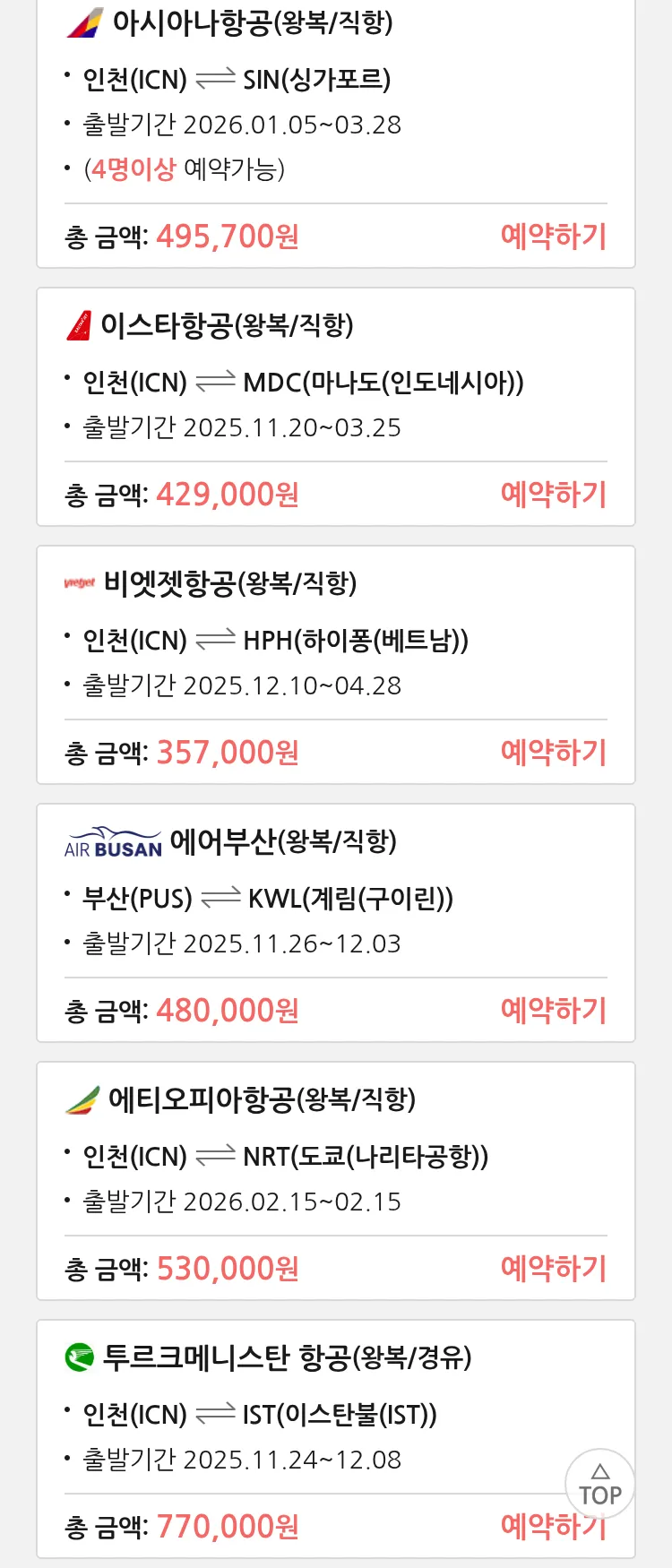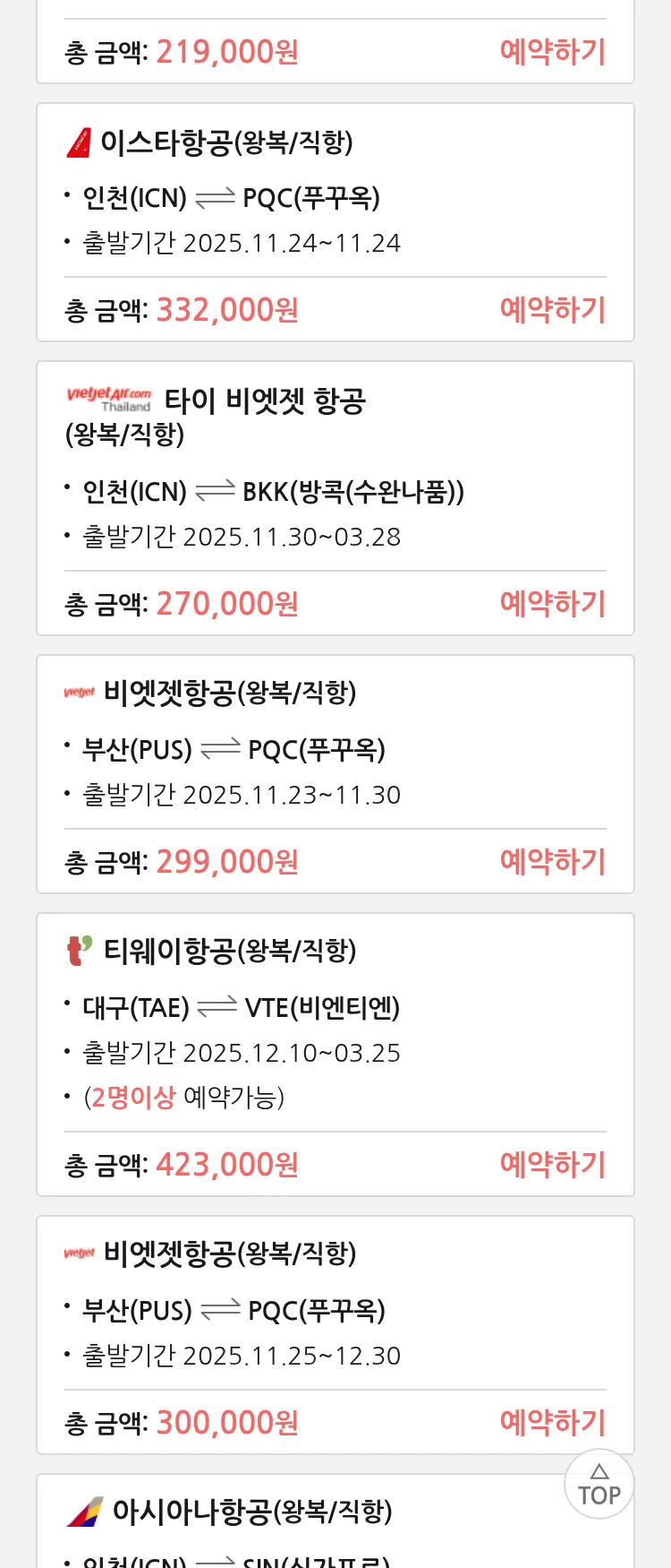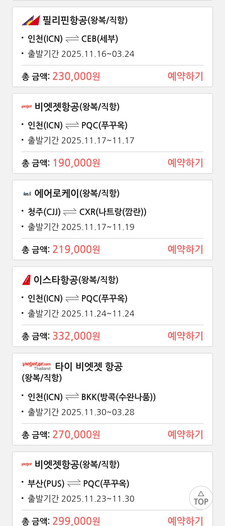 (11월 14일(금)) 모두투어 동남아 특가 항공권