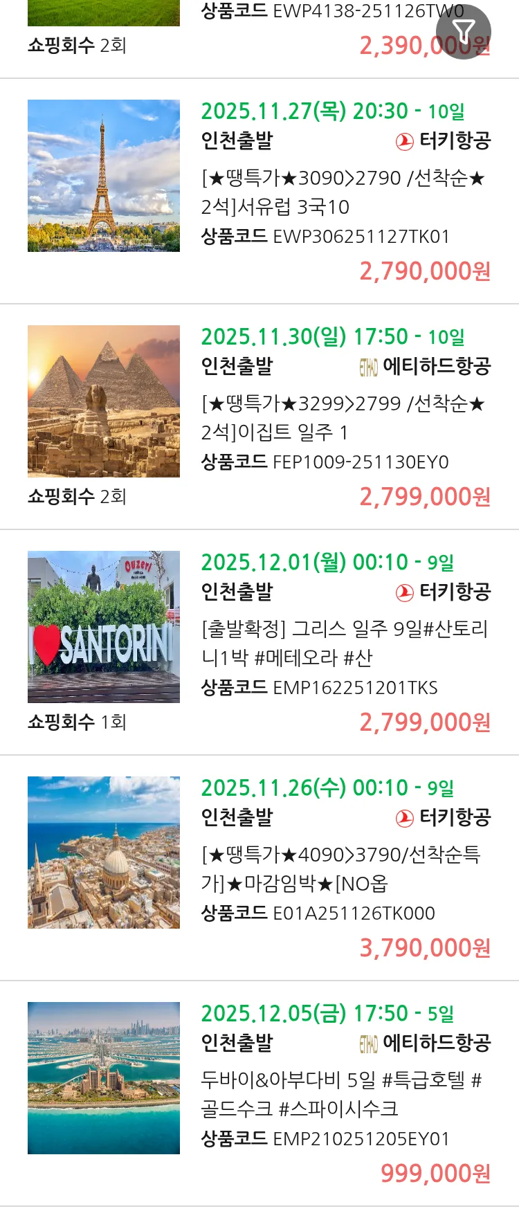 (11월 15일(토)) 땡처리 유럽 긴급 패키지