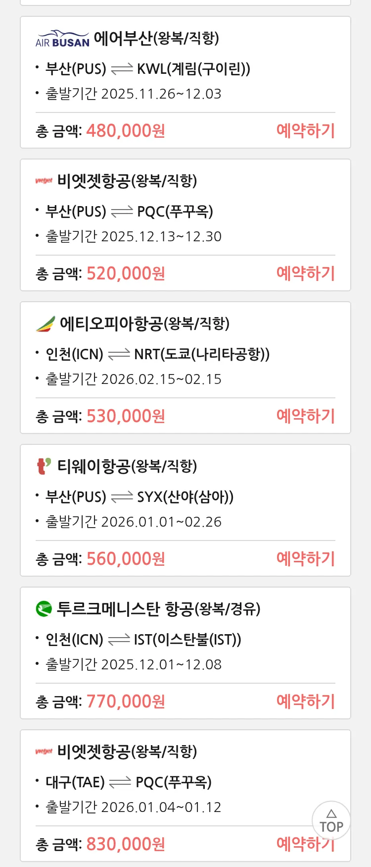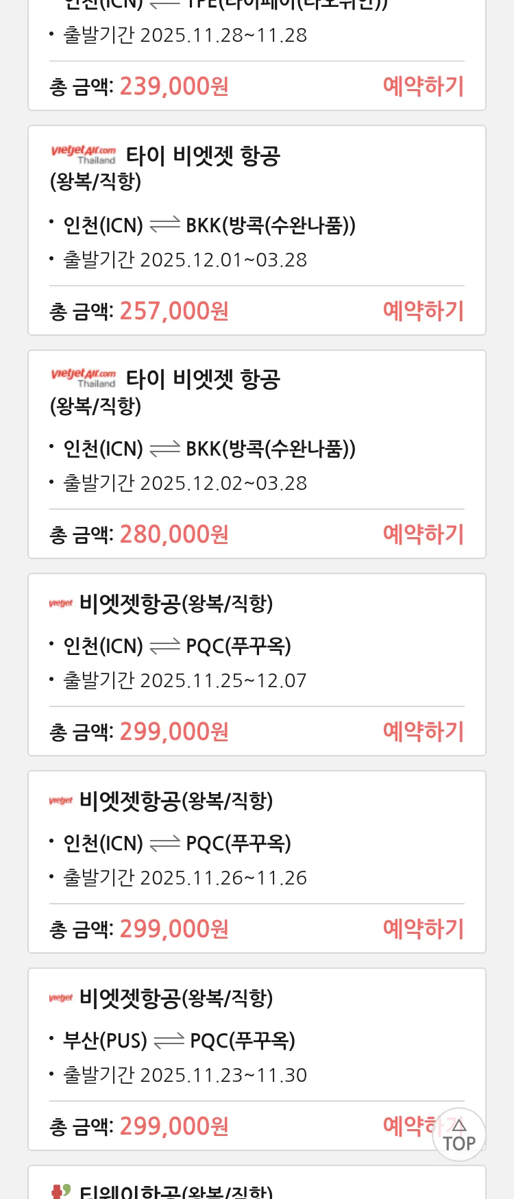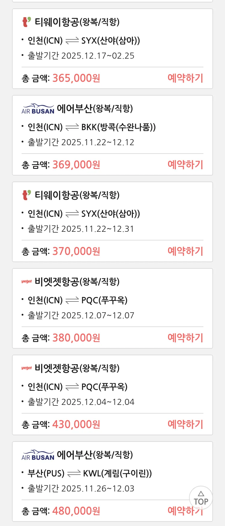 (11월 15일(토)) 땡처리 특가 항공권