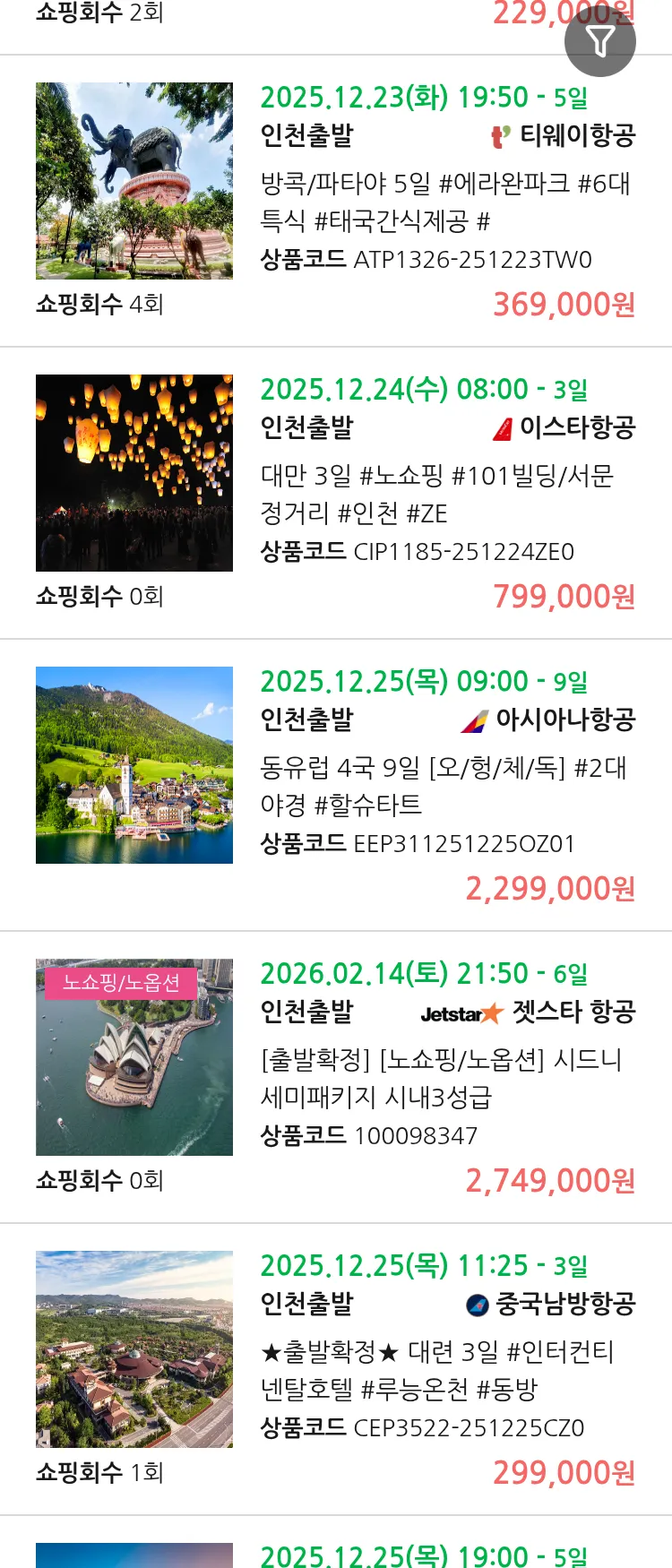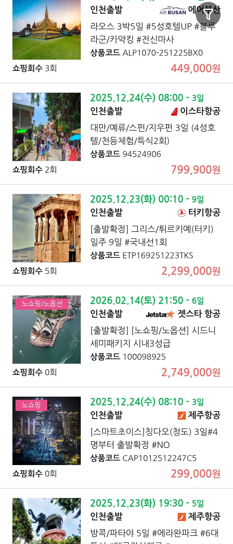 (11월 17일(월)) 땡처리 99.9% 확정 패키지