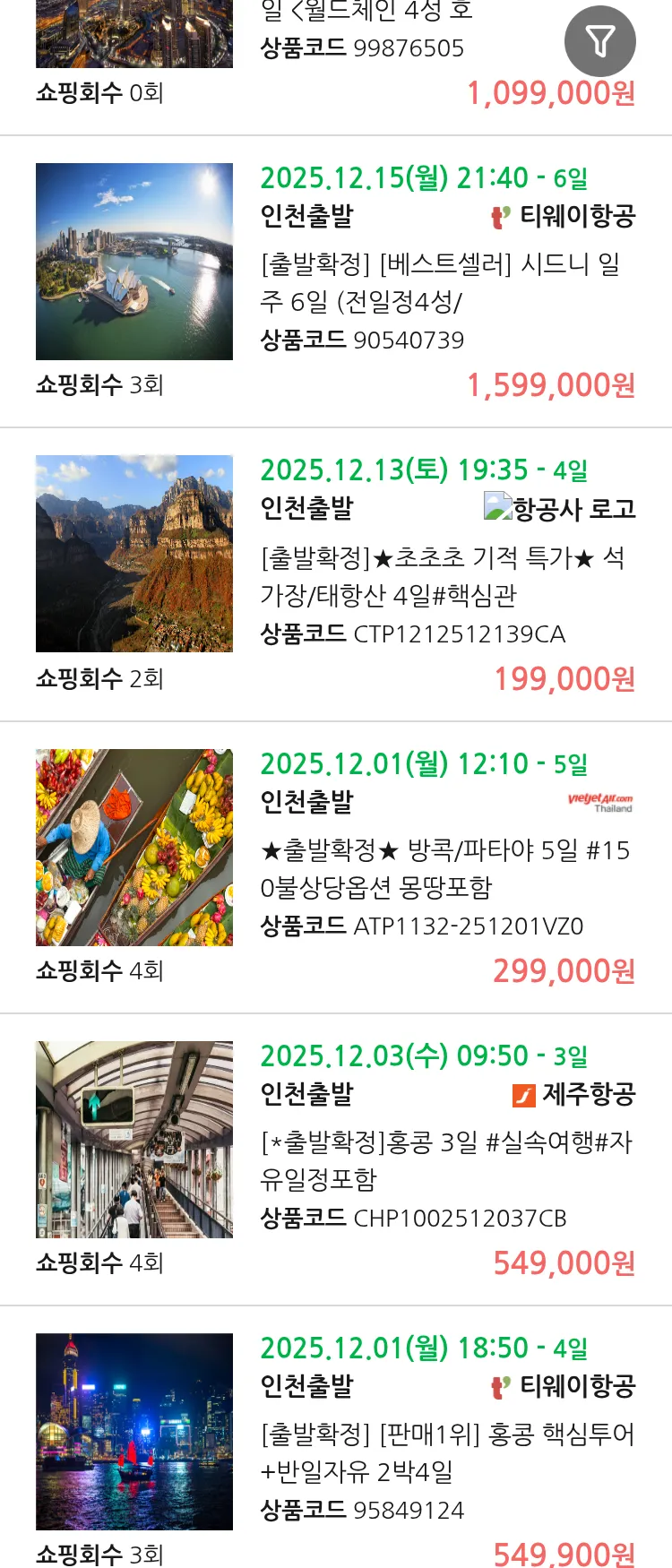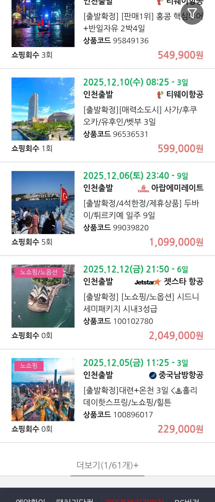 (11월 17일(월)) 땡처리 99.9% 확정 패키지