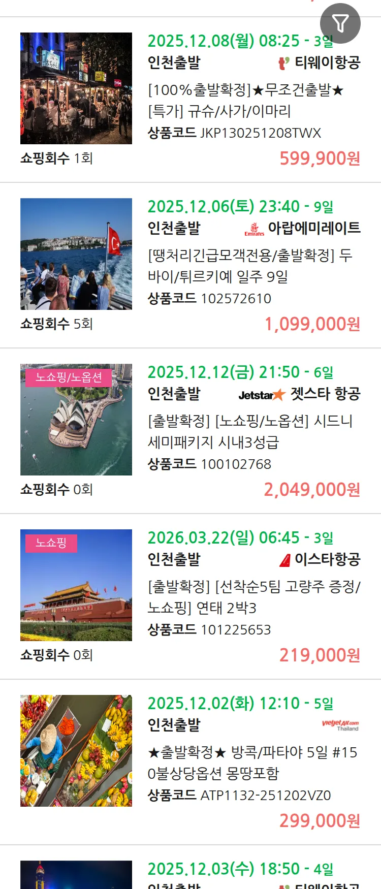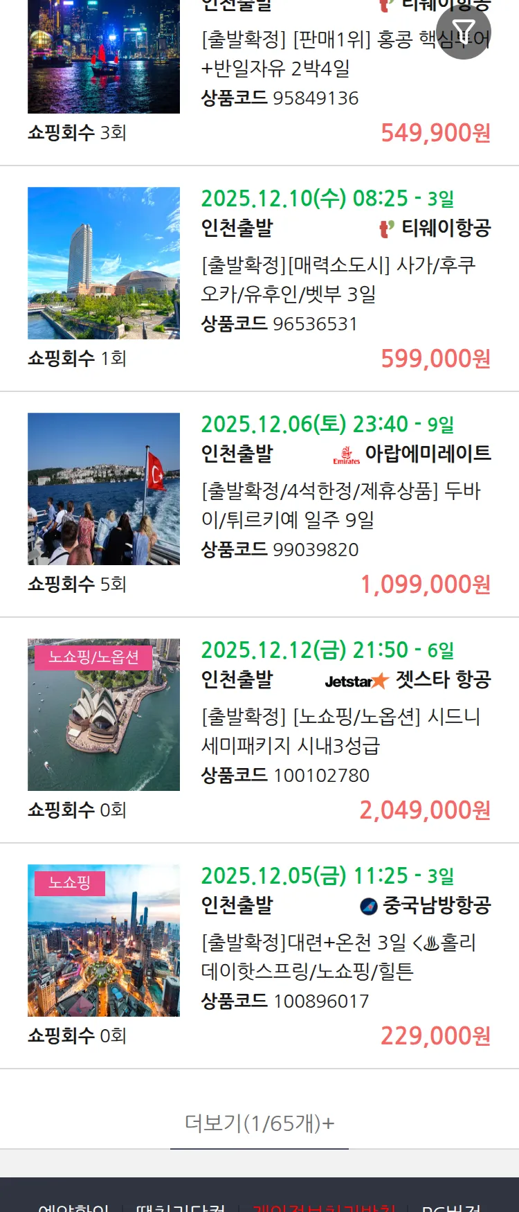 (11월 17일(월)) 땡처리 99.9% 확정 패키지