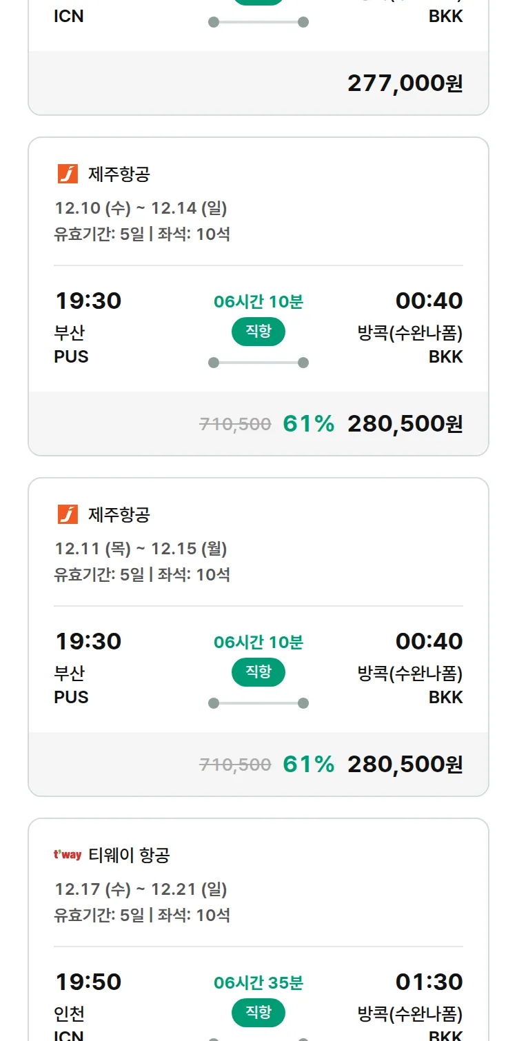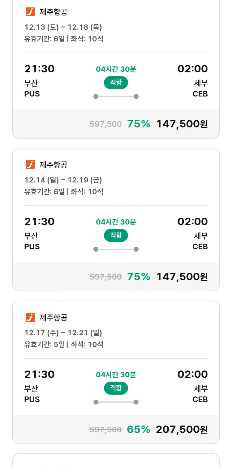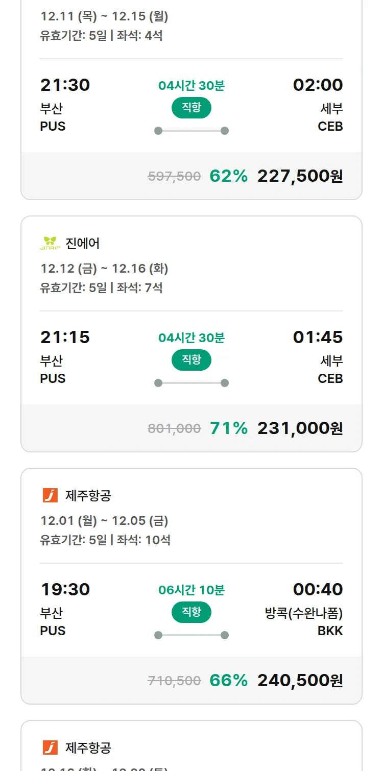 (11월 17일(월)) 땡처리 특가 항공권