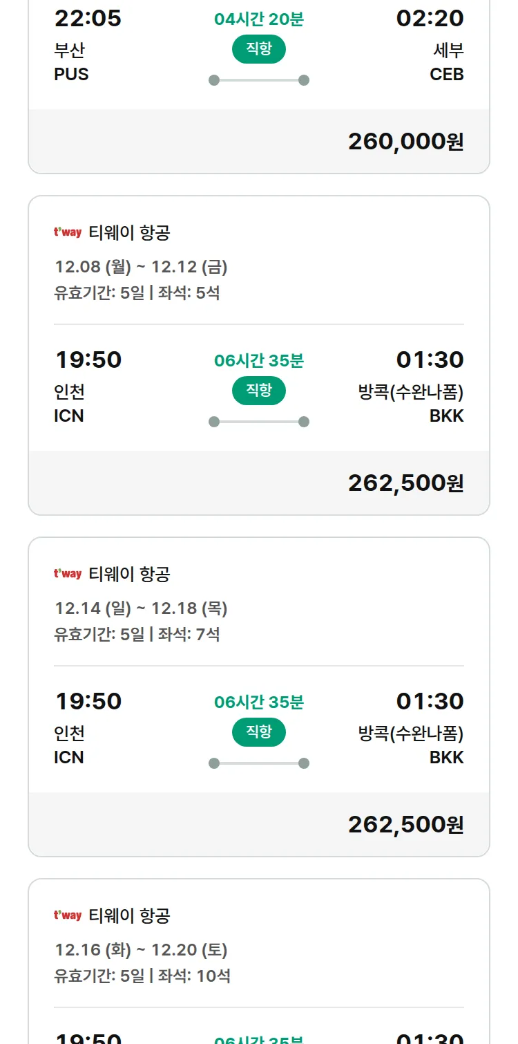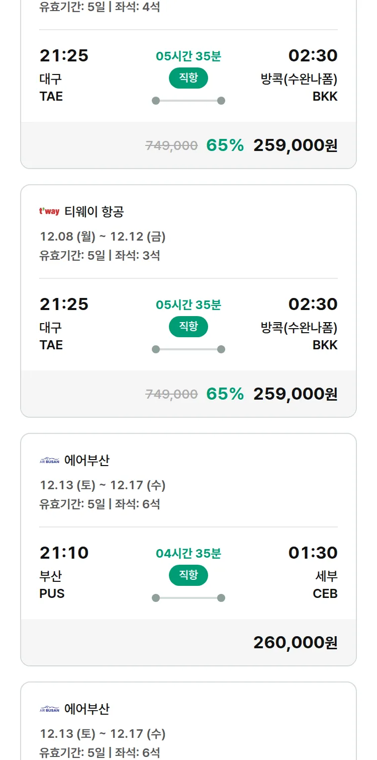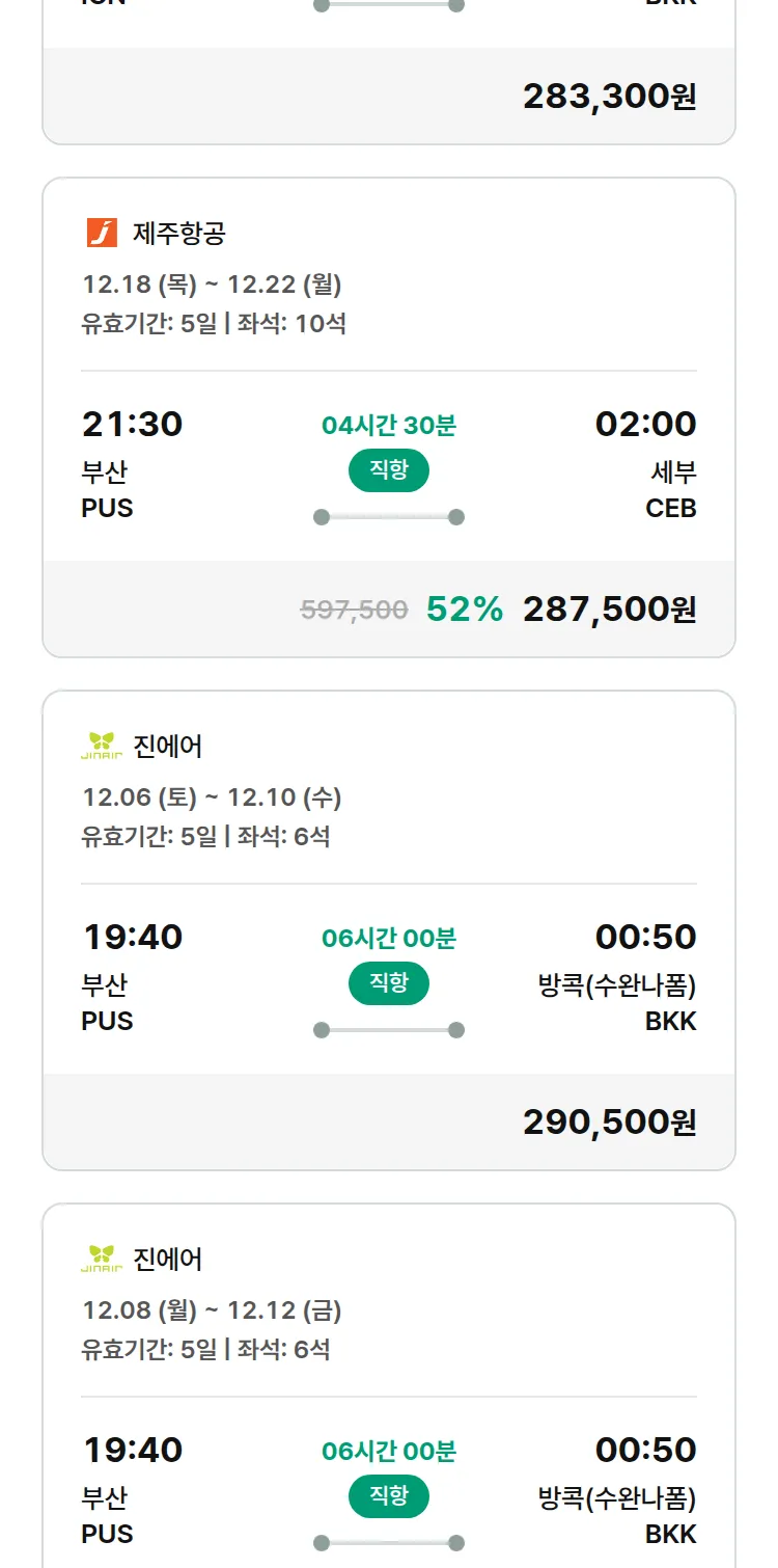 (11월 17일(월)) 땡처리 특가 항공권