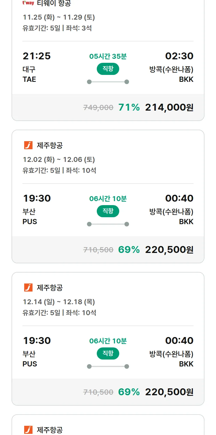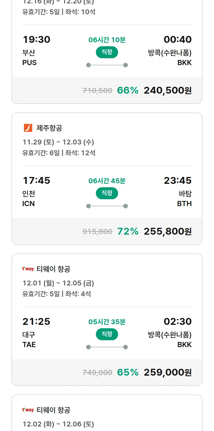 (11월 16일(일)) 땡처리 특가 항공권