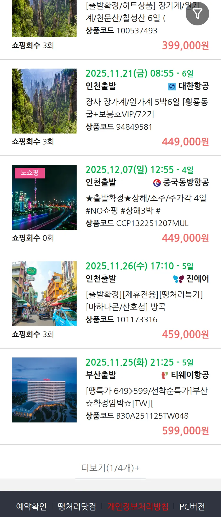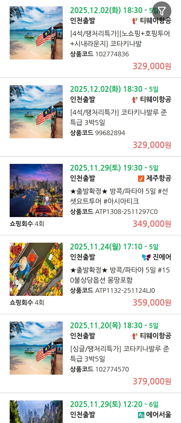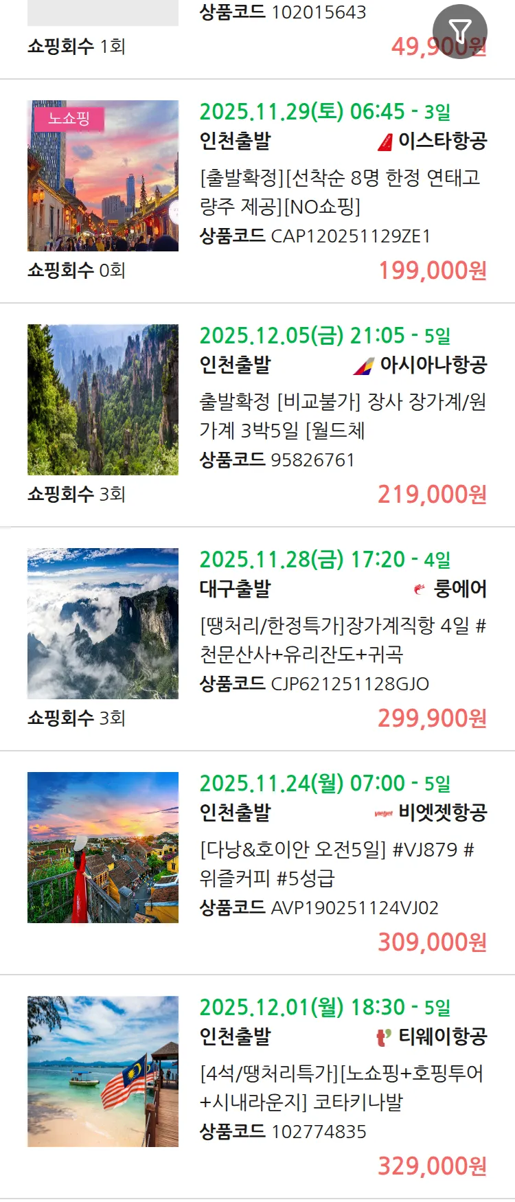(11월 18일(화)) 땡처리 99.9% 확정 패키지