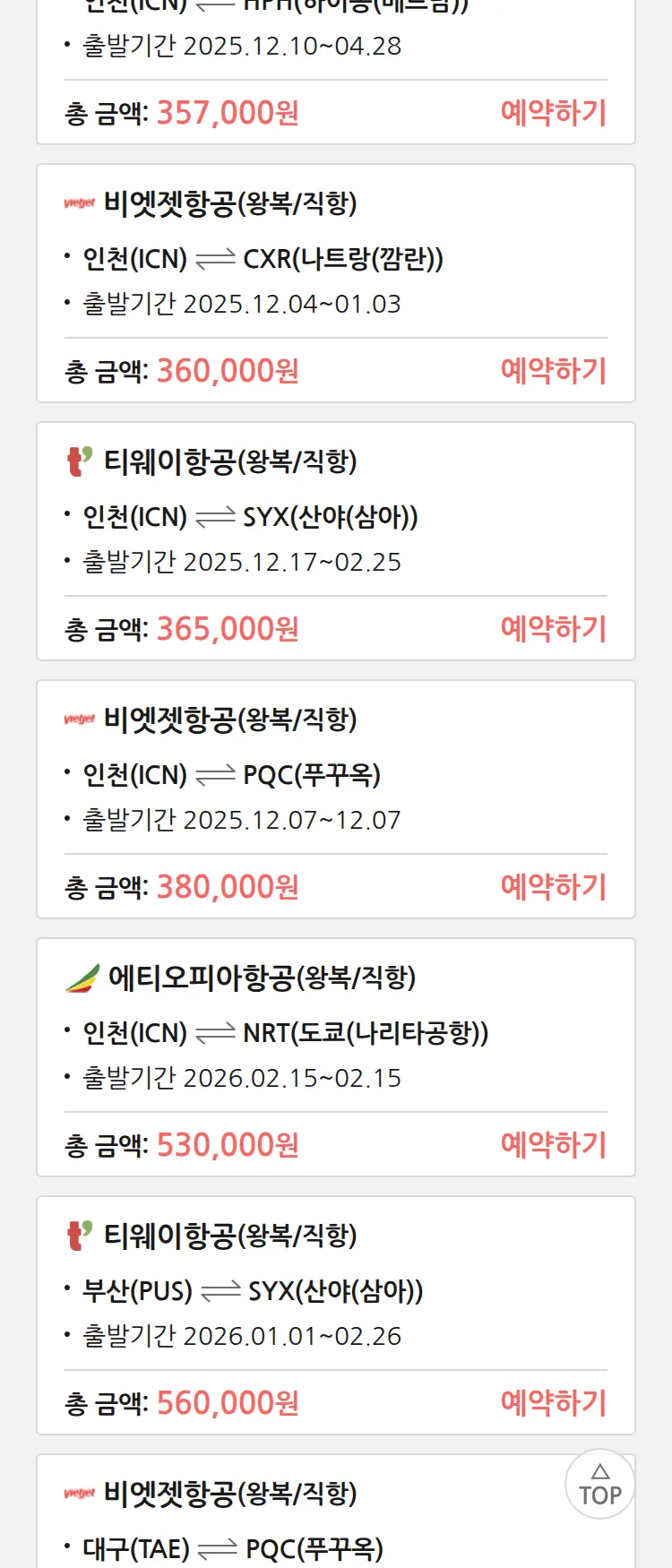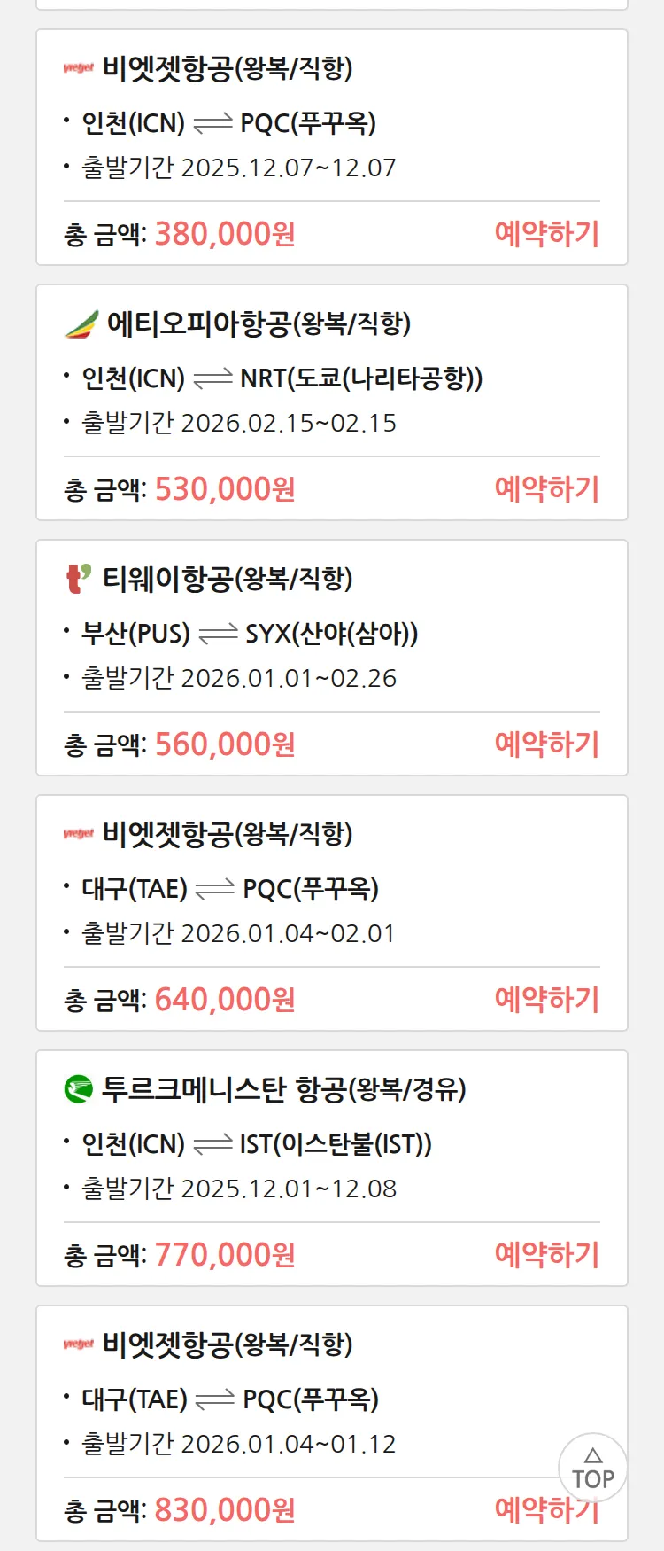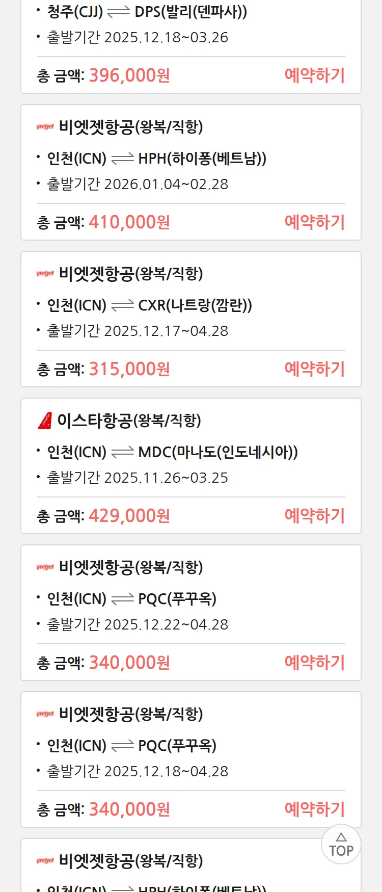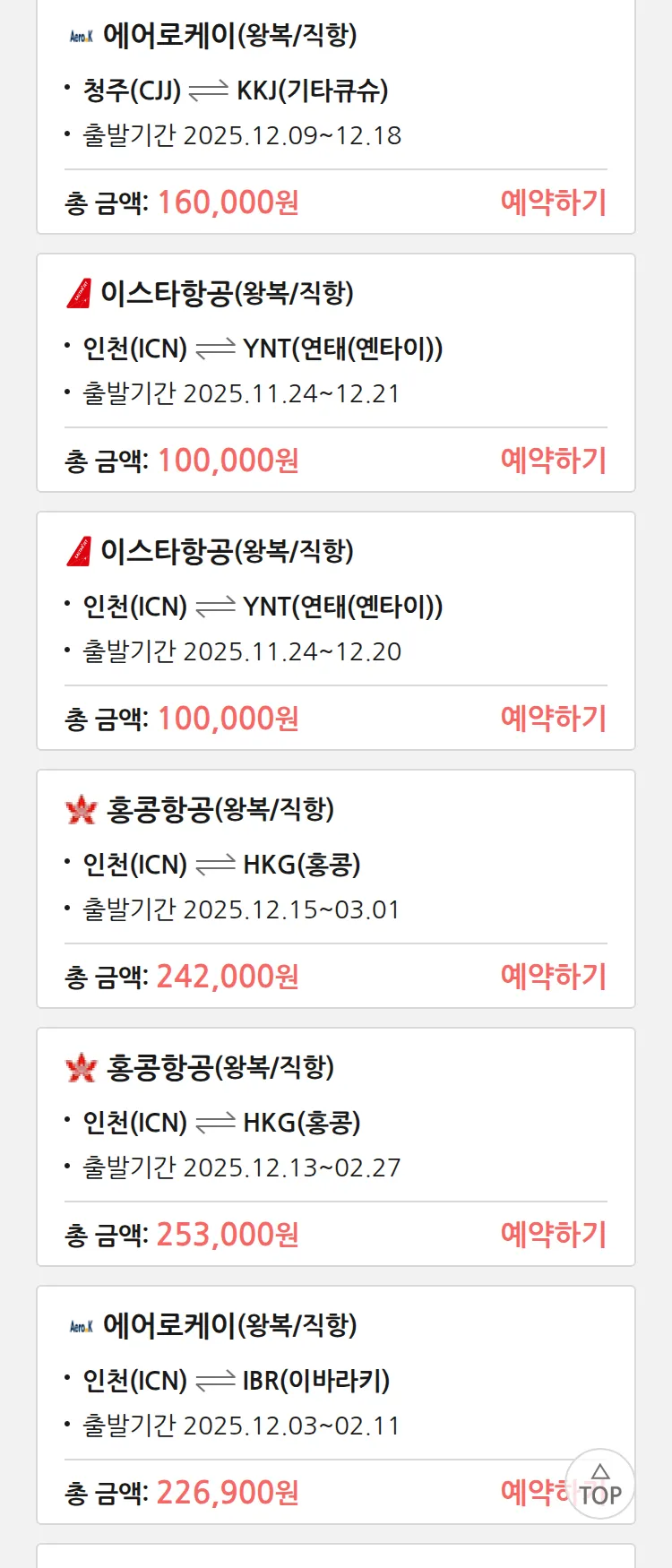 (11월 17일(월)) 땡처리 특가 항공권