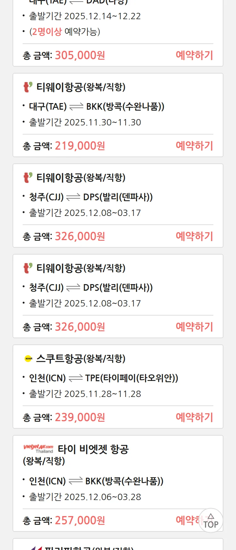 (11월 18일(화)) 땡처리 특가 항공권
