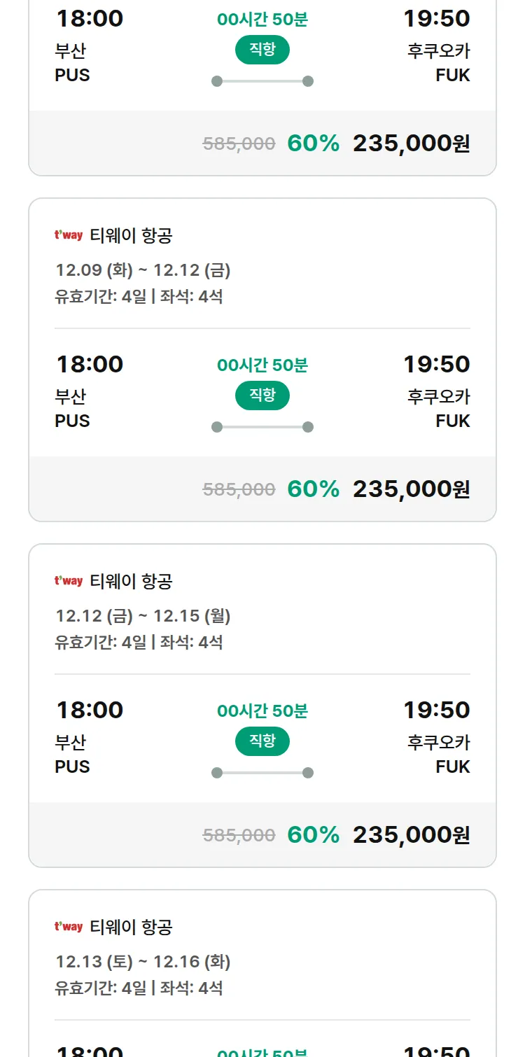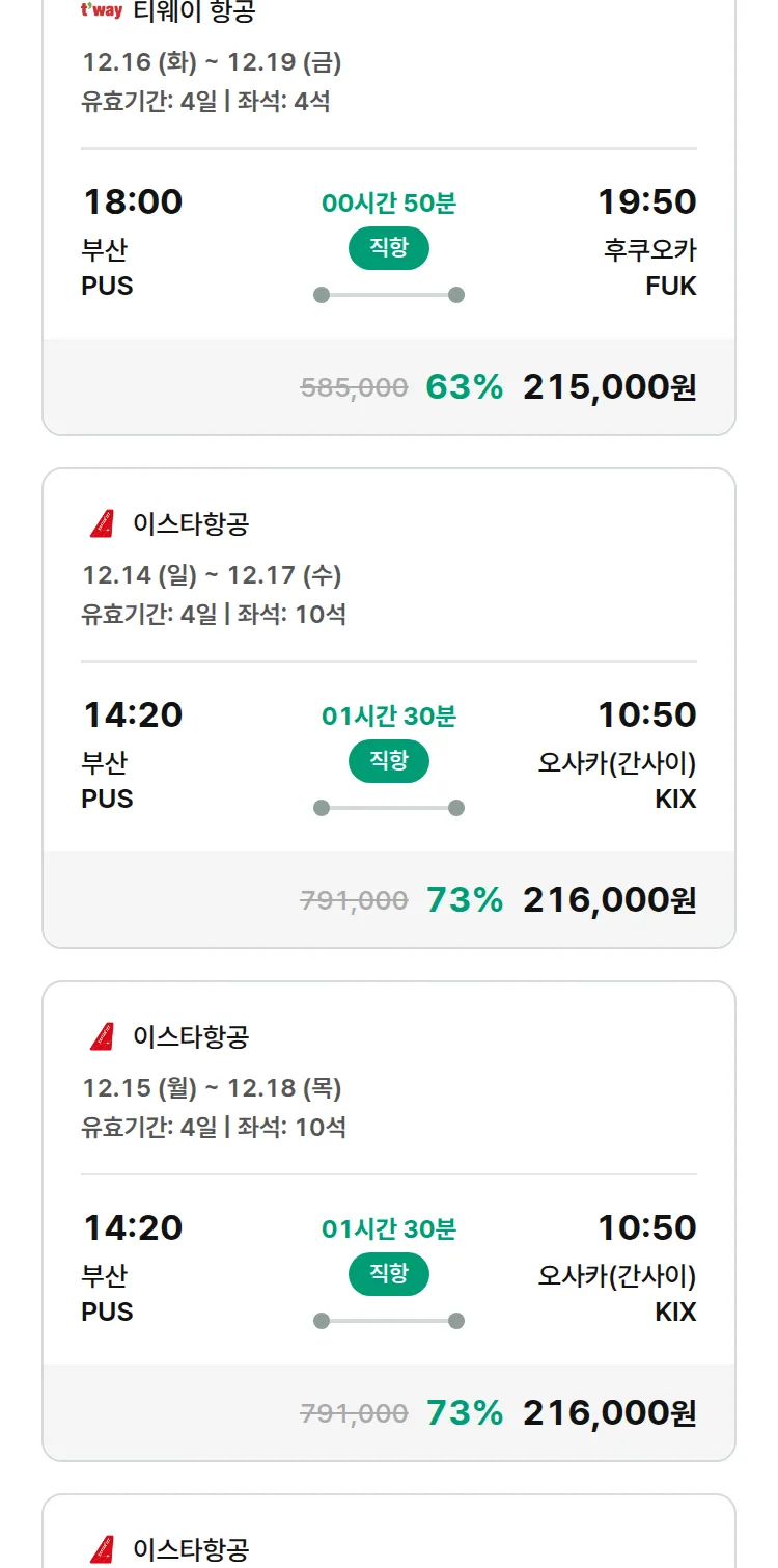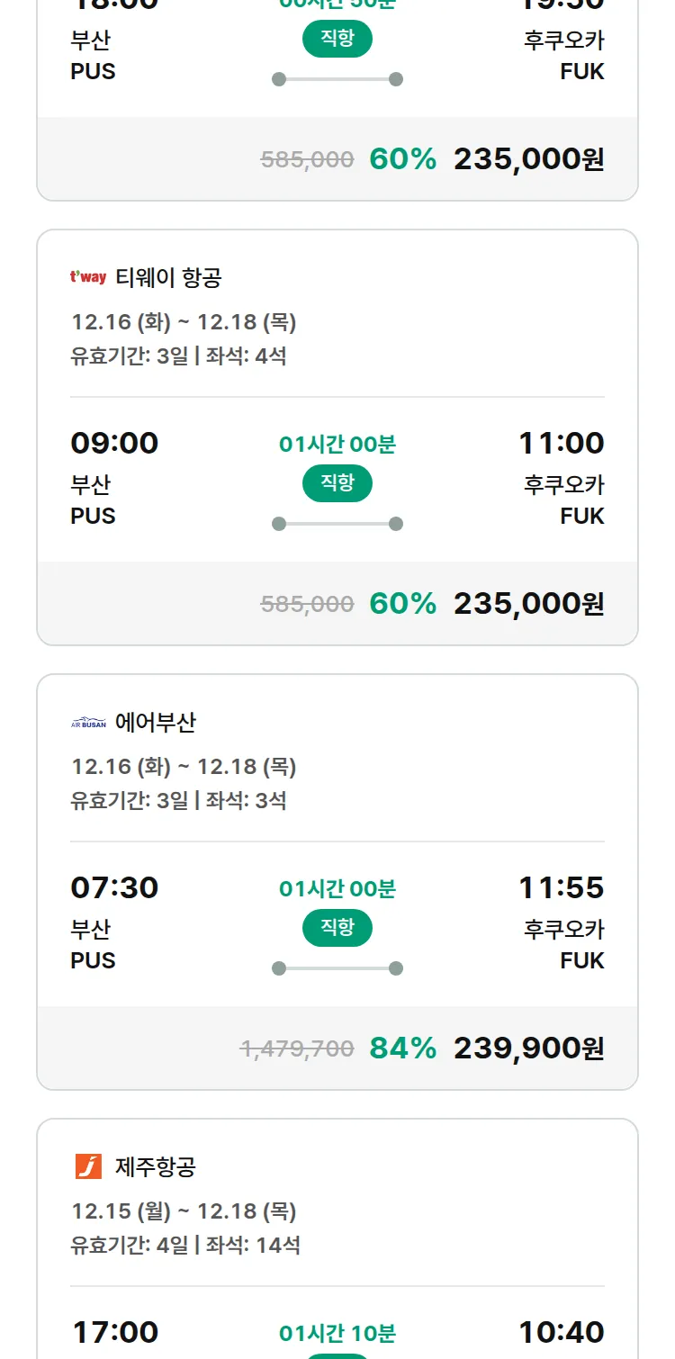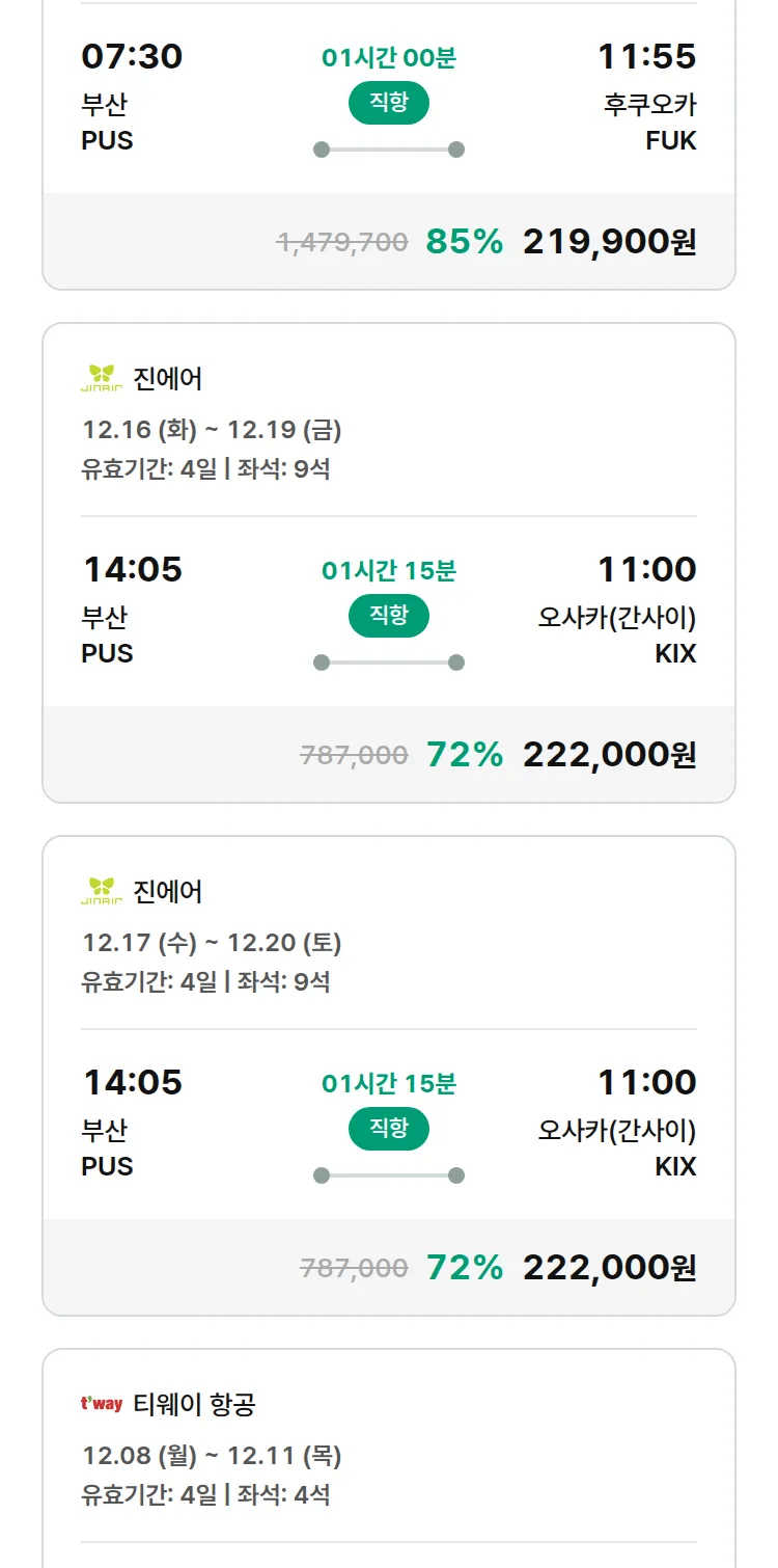 (11월 18일(화)) 땡처리 특가 항공권
