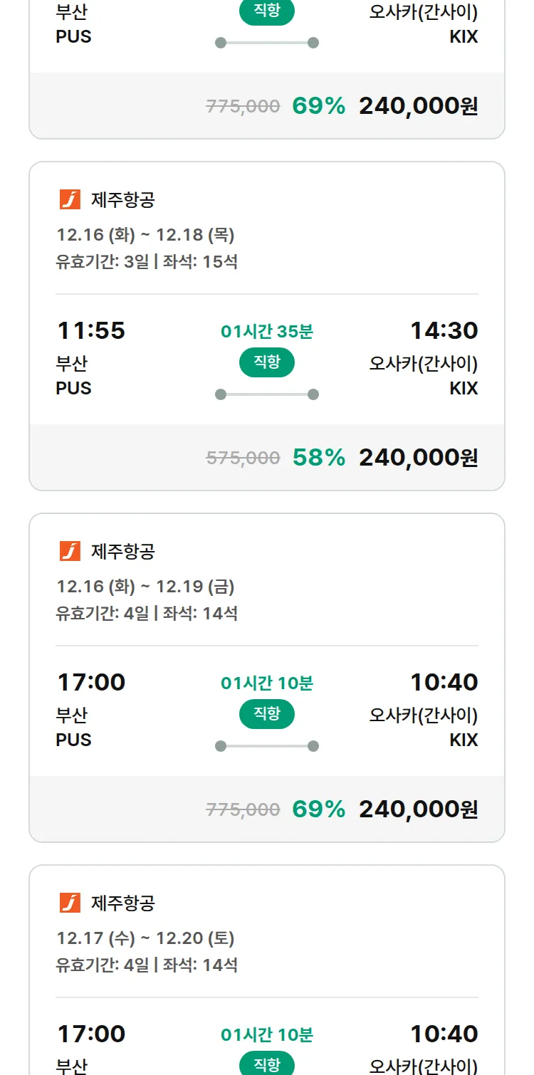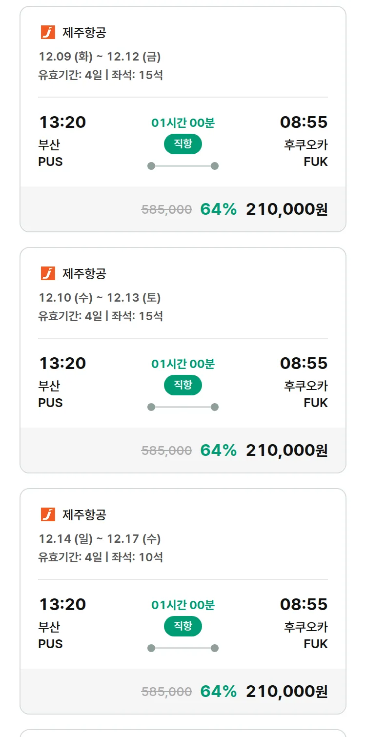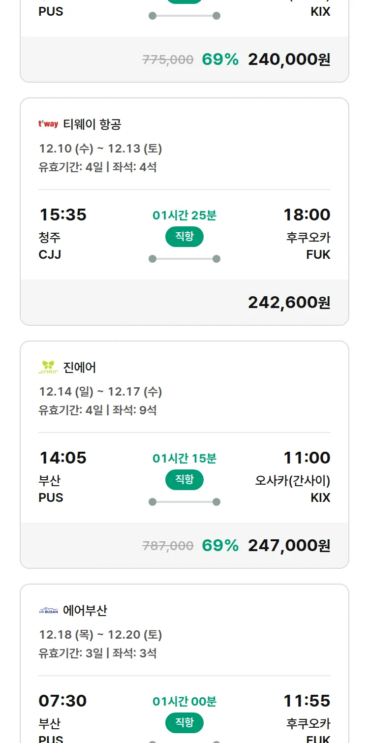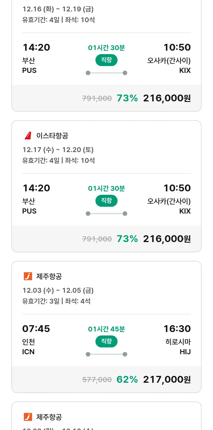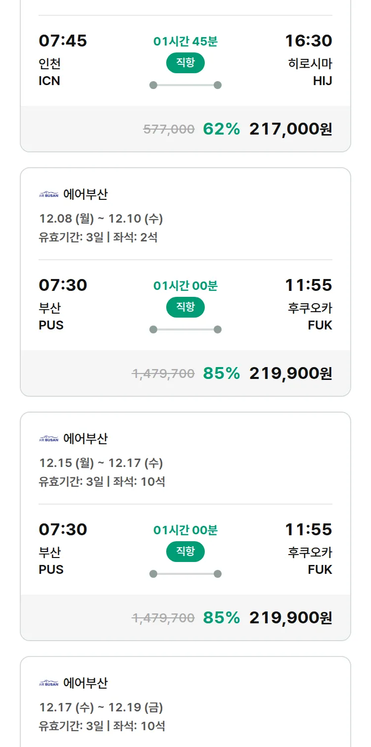 (11월 17일(월)) 땡처리 특가 항공권