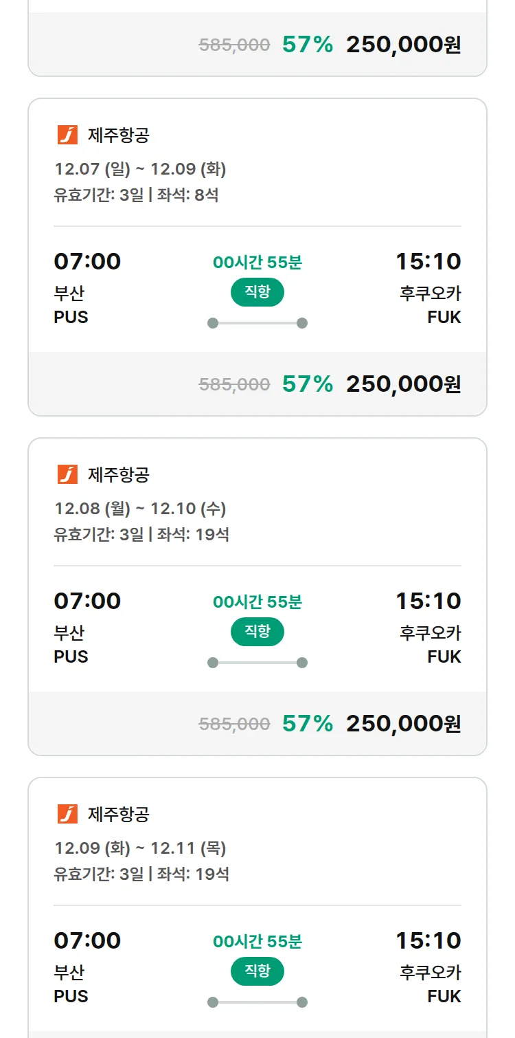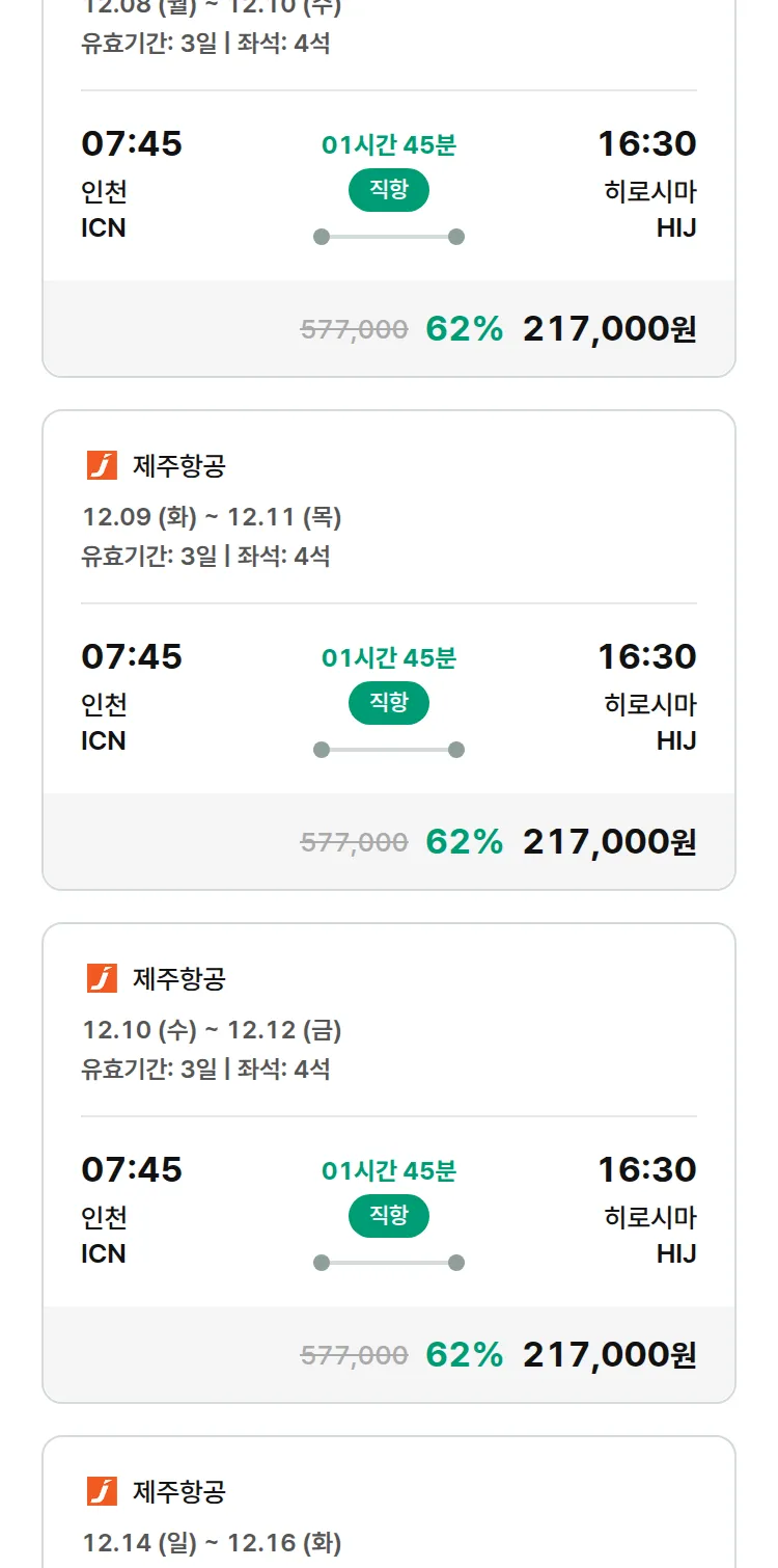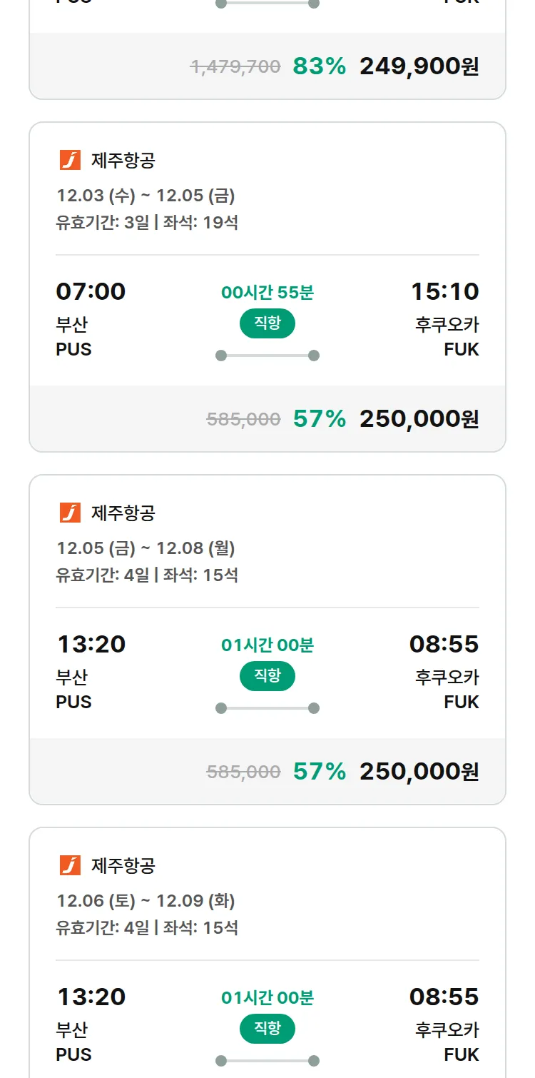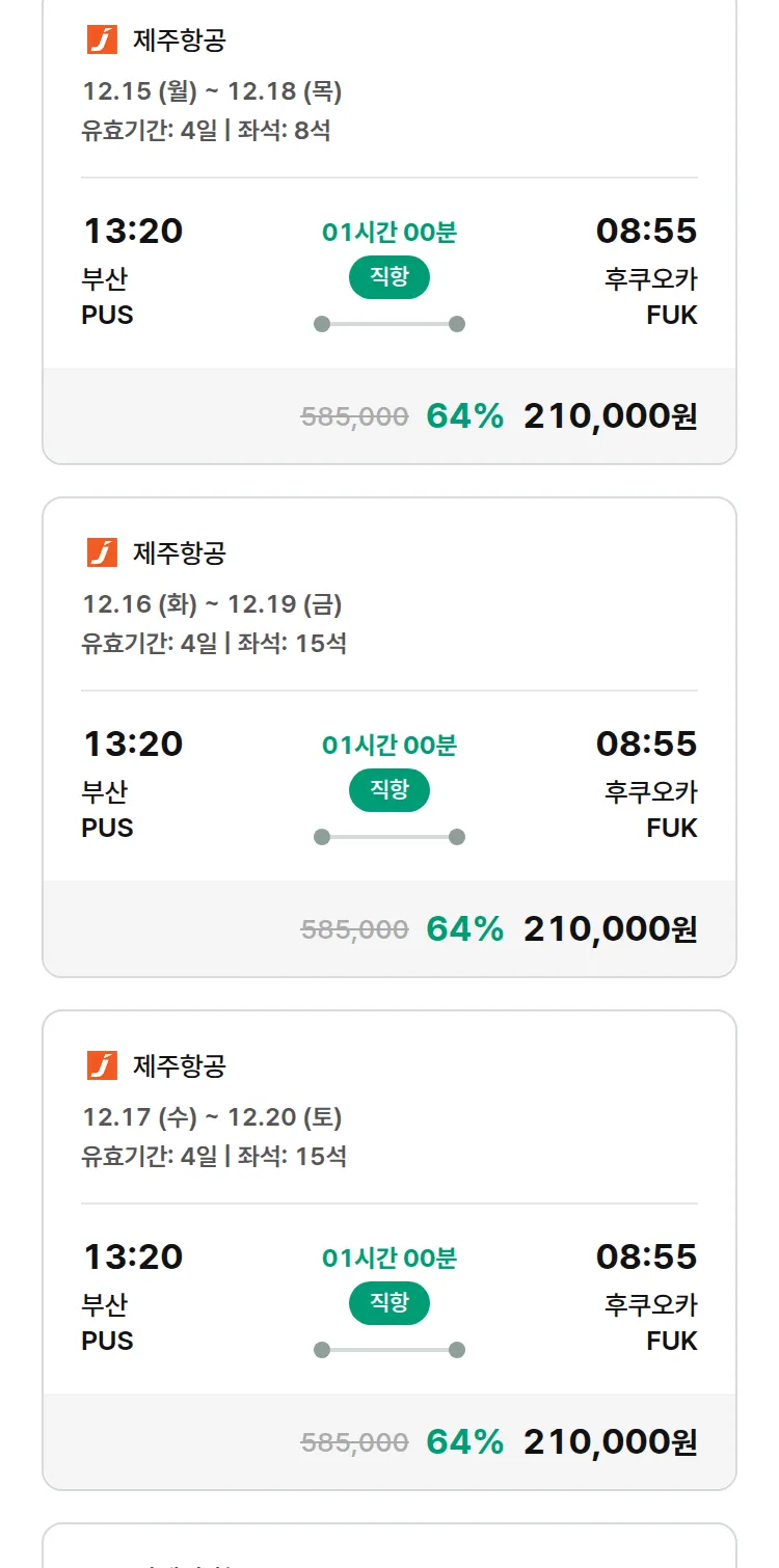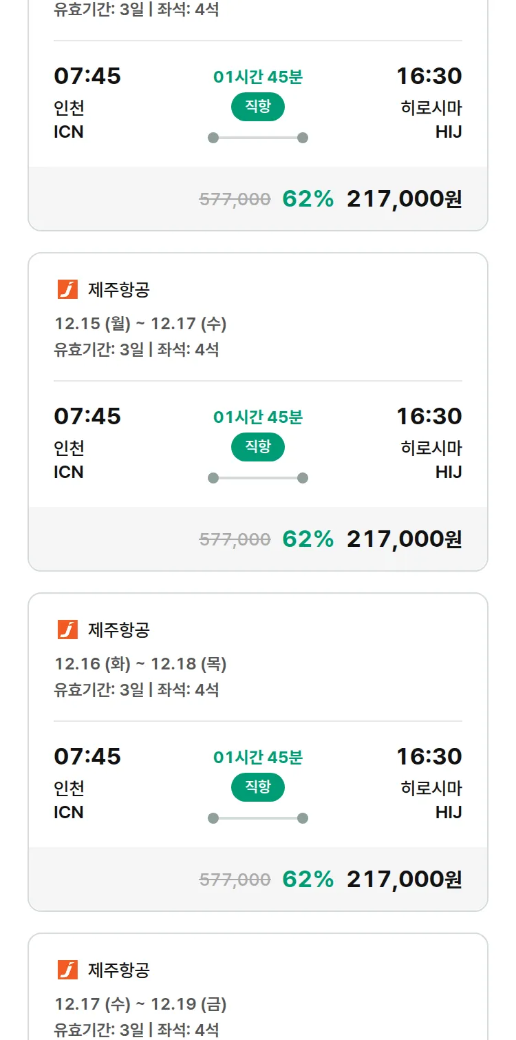 (11월 17일(월)) 땡처리 특가 항공권