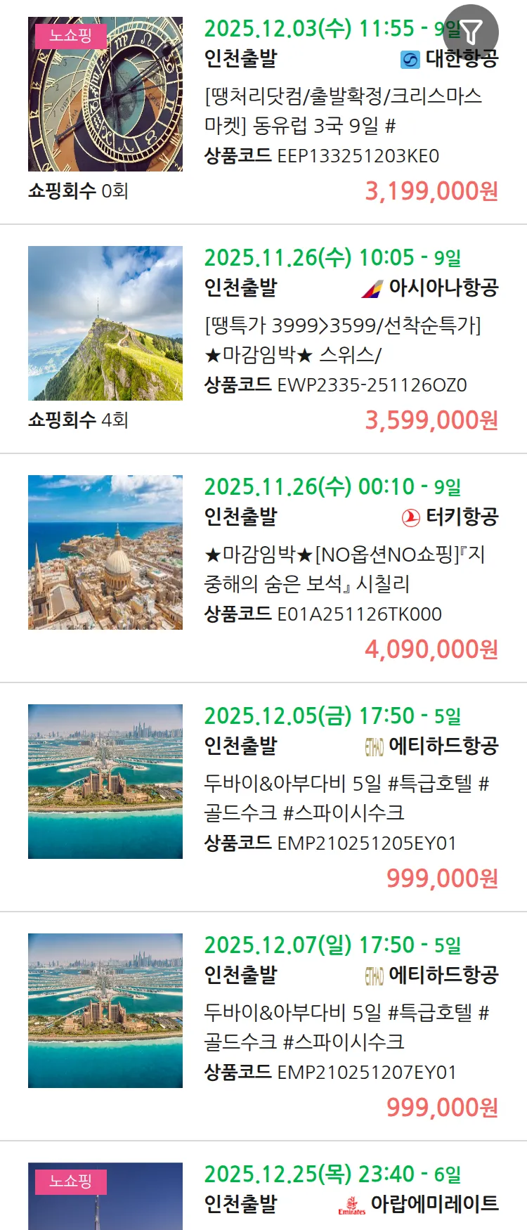 (11월 19일(수)) 땡처리 99.9% 확정 패키지