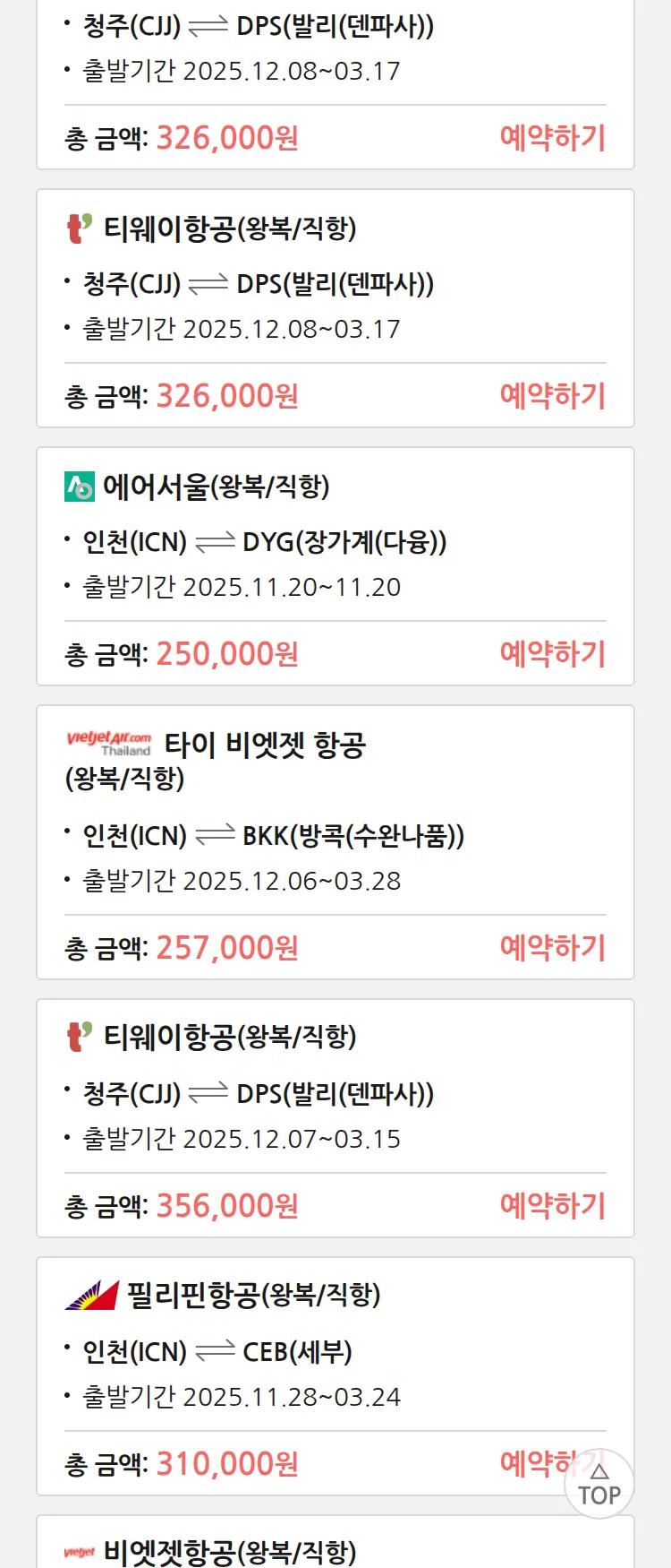 (11월 20일(목)) 모두투어 동남아 특가 항공권