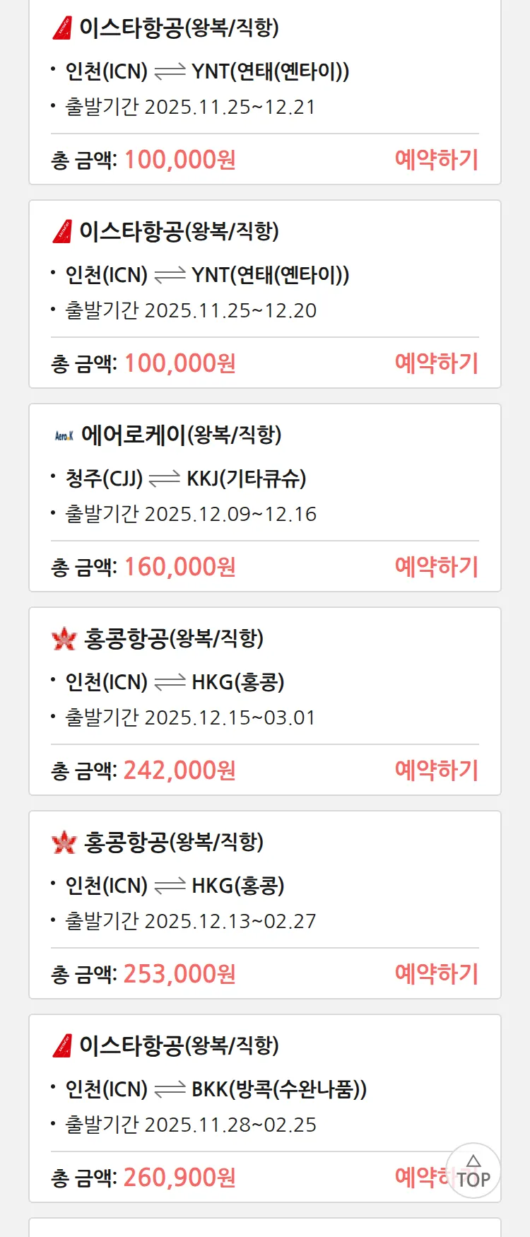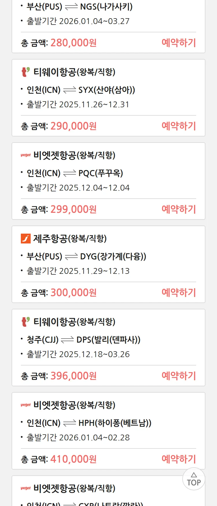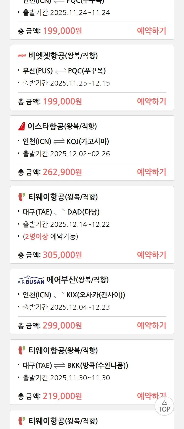 (11월 20일(목)) 땡처리 99.9% 확정 패키지