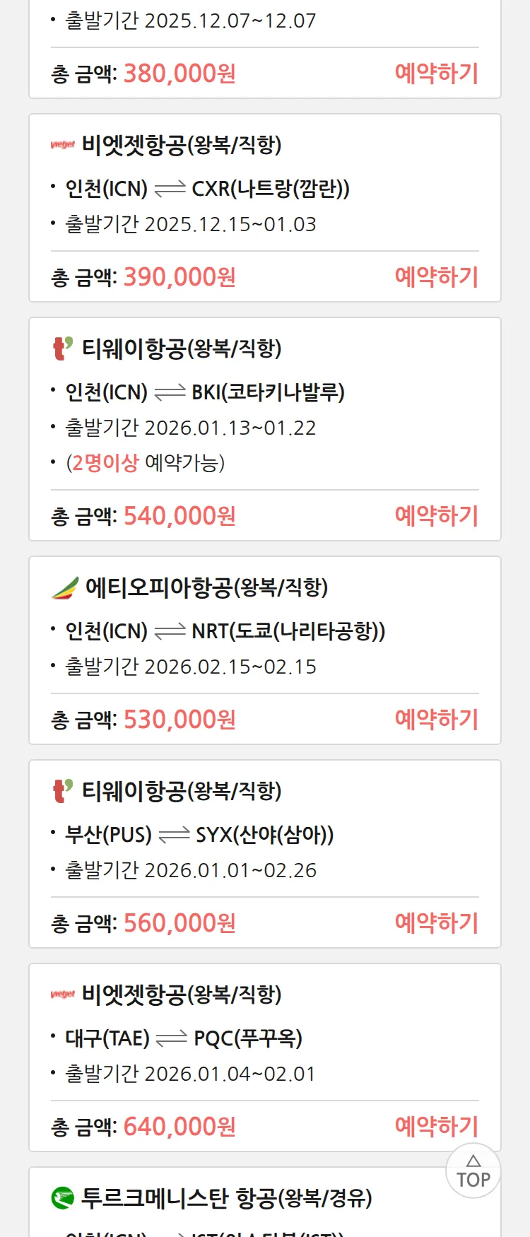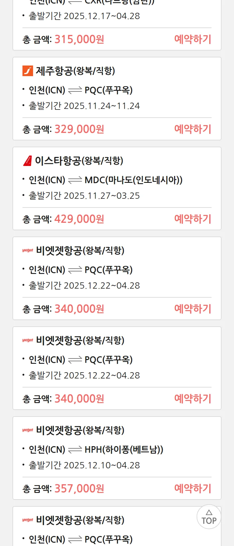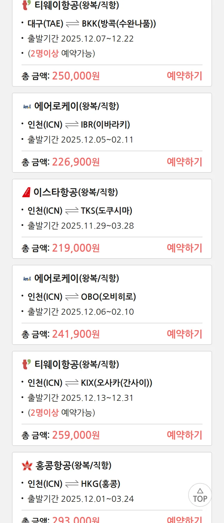 (11월 20일(목)) 땡처리 99.9% 확정 패키지