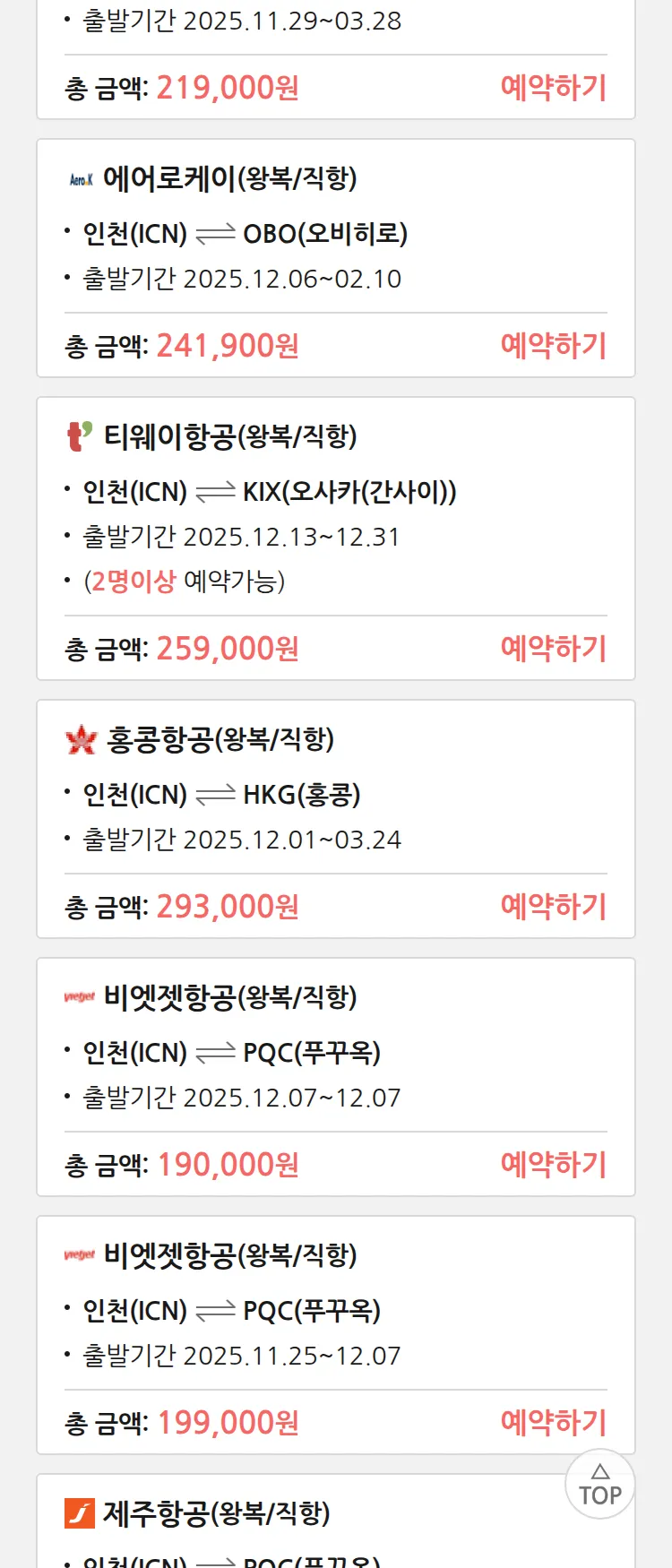 (11월 19일(수)) 땡처리 99.9% 확정 패키지