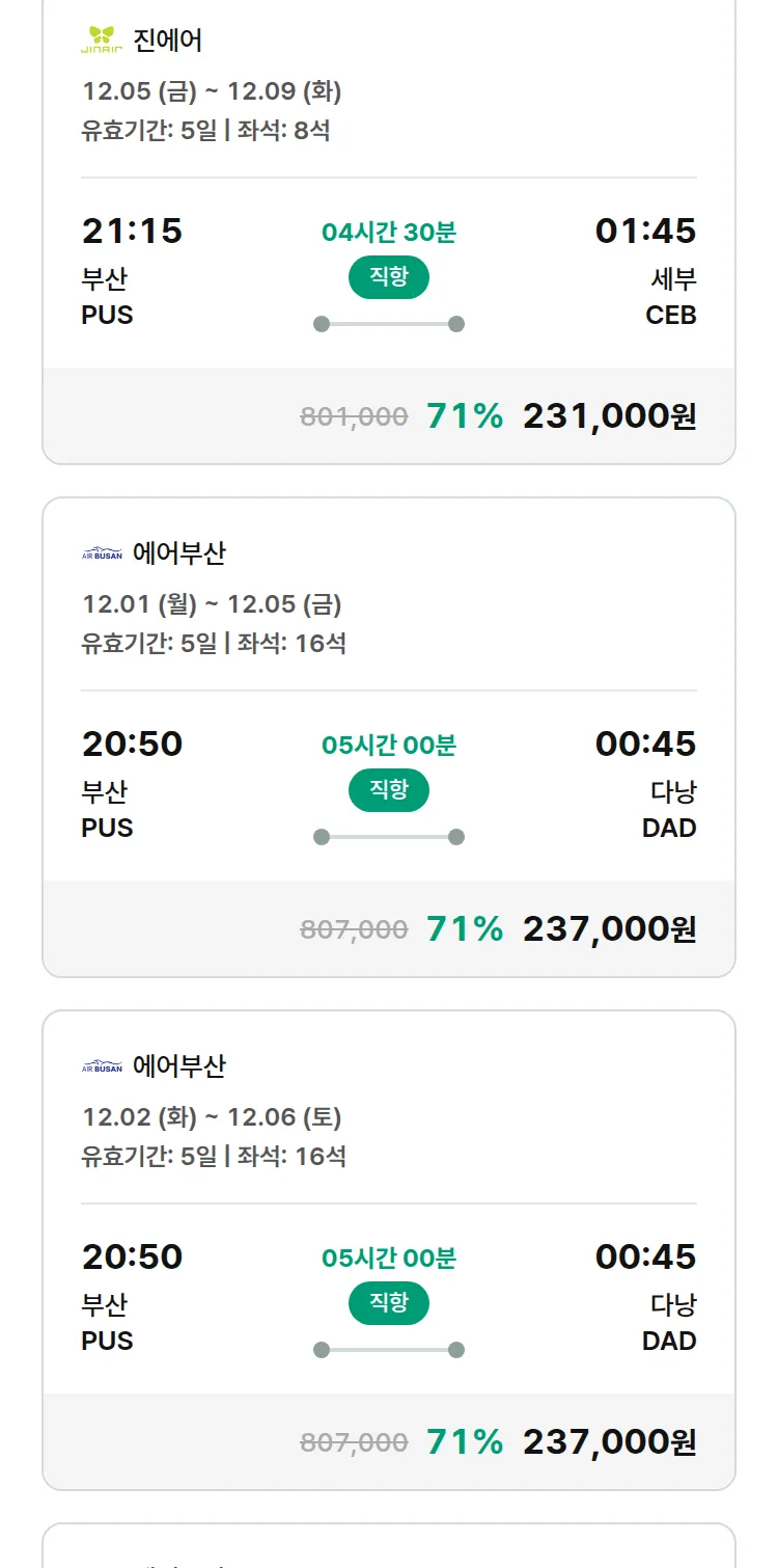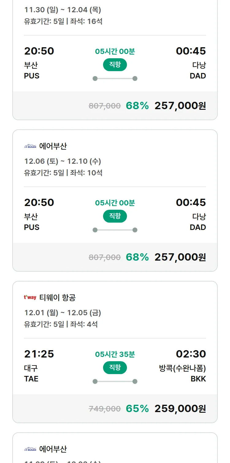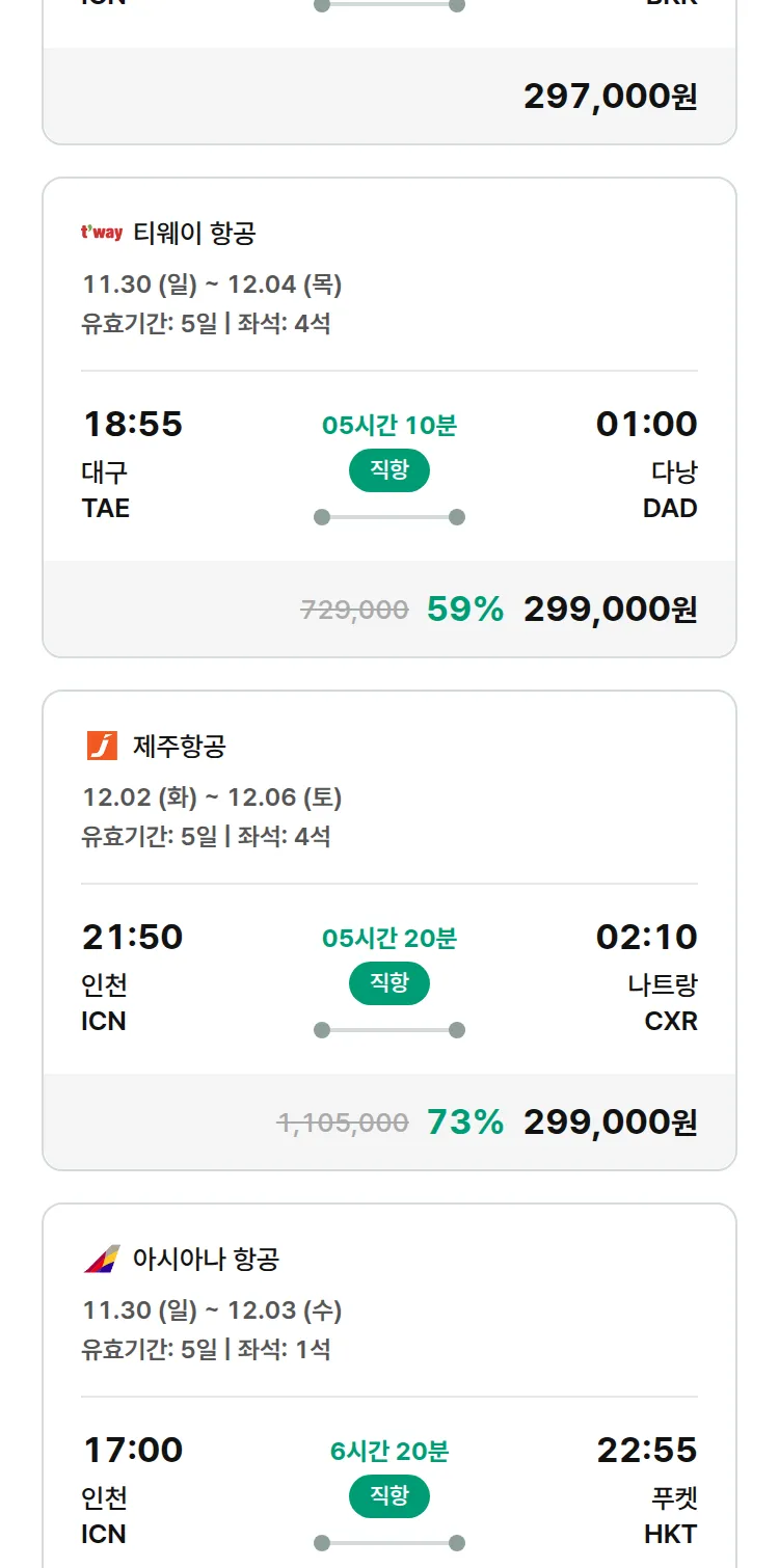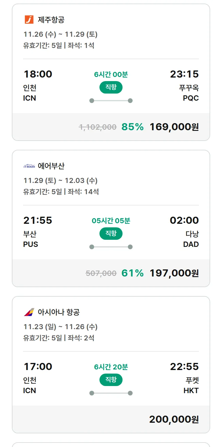 (11월 20일(목)) 땡처리 99.9% 확정 패키지