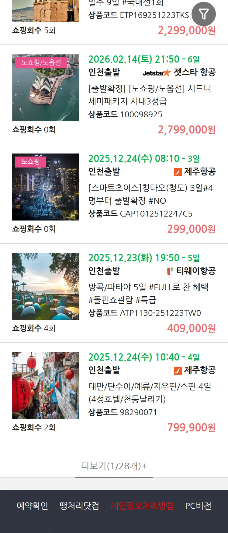 (11월 21일(금)) 땡처리 99.9% 확정 패키지