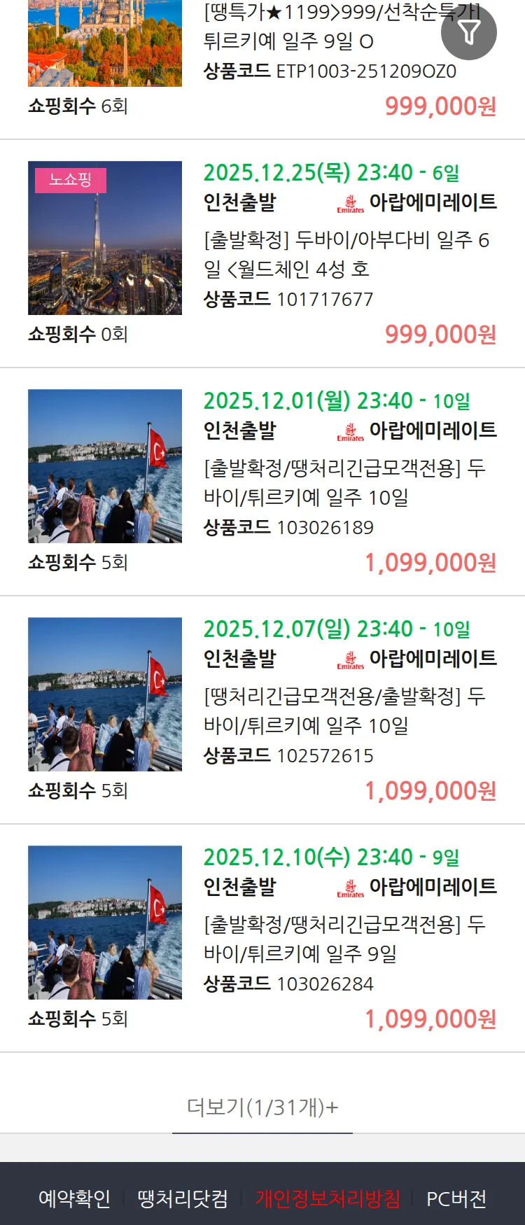 (11월 19일(수)) 땡처리 99.9% 확정 패키지