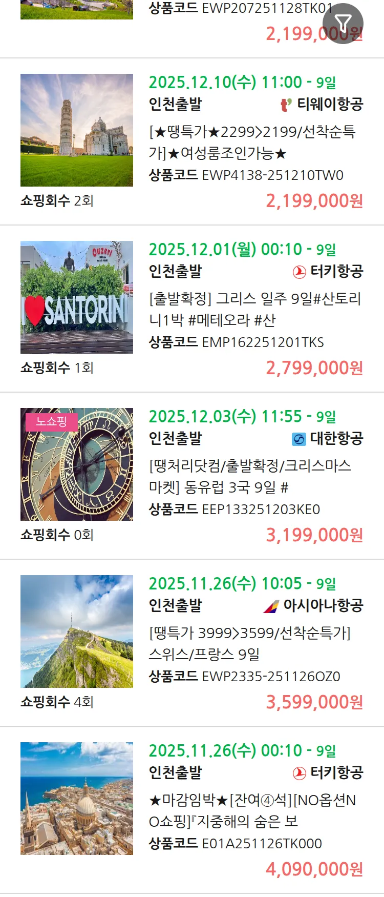 (11월 19일(수)) 땡처리 유럽 긴급 패키지