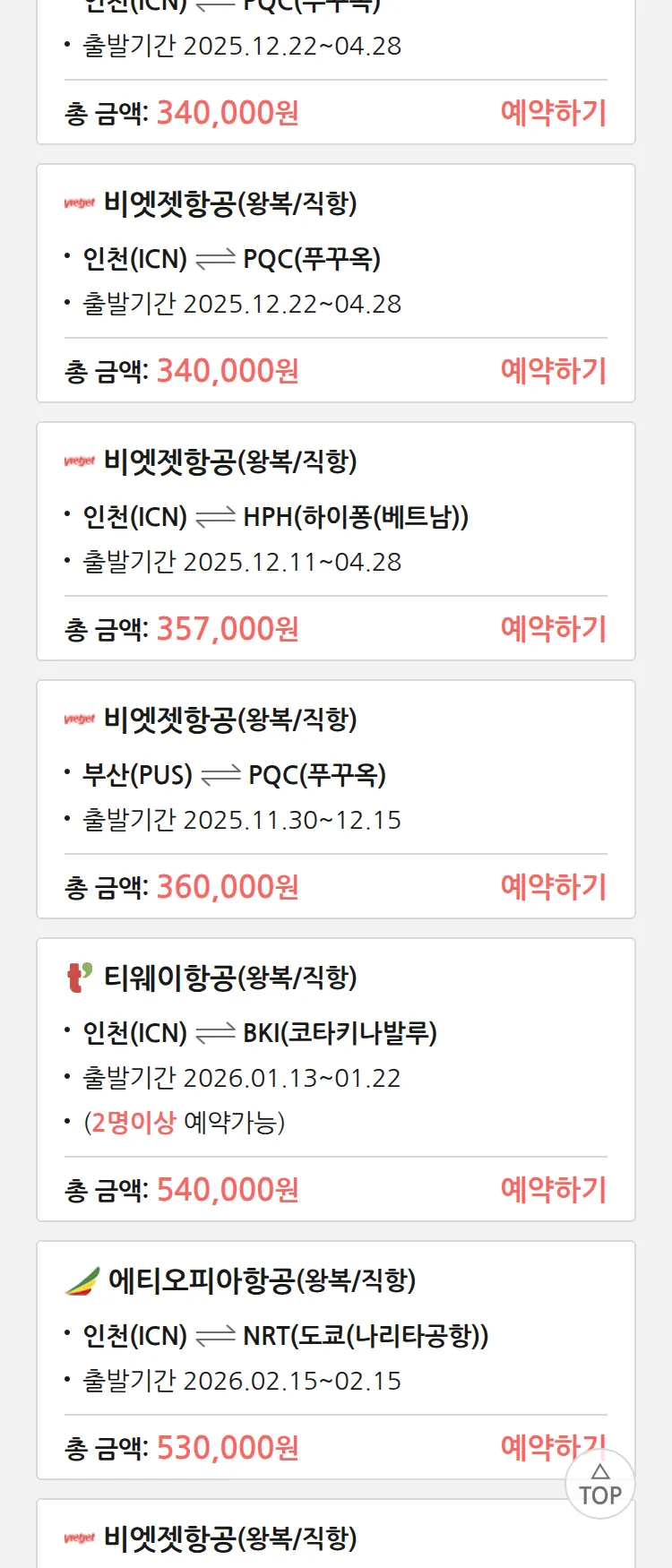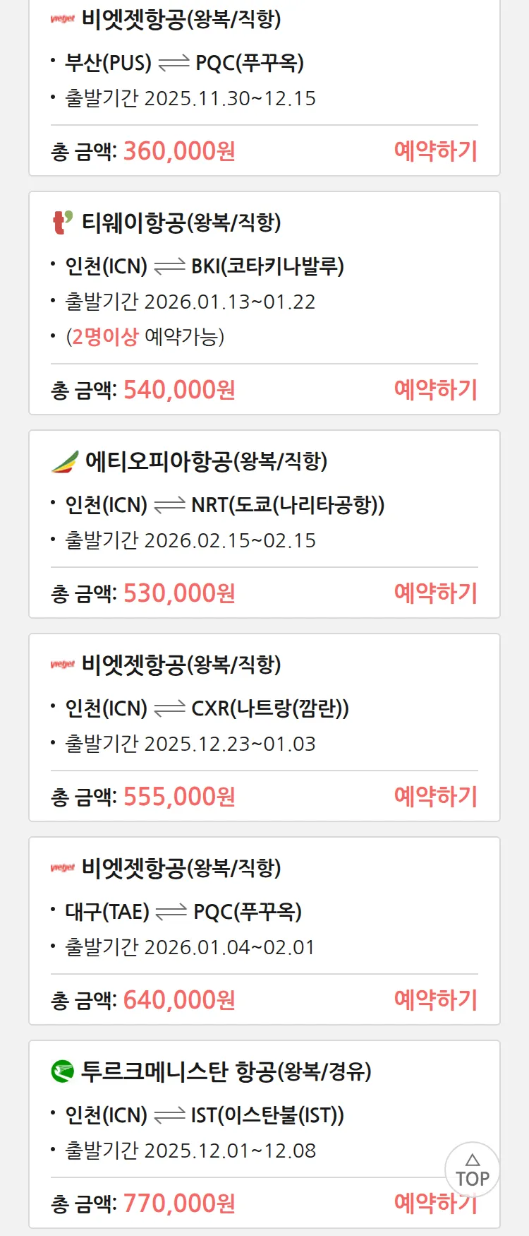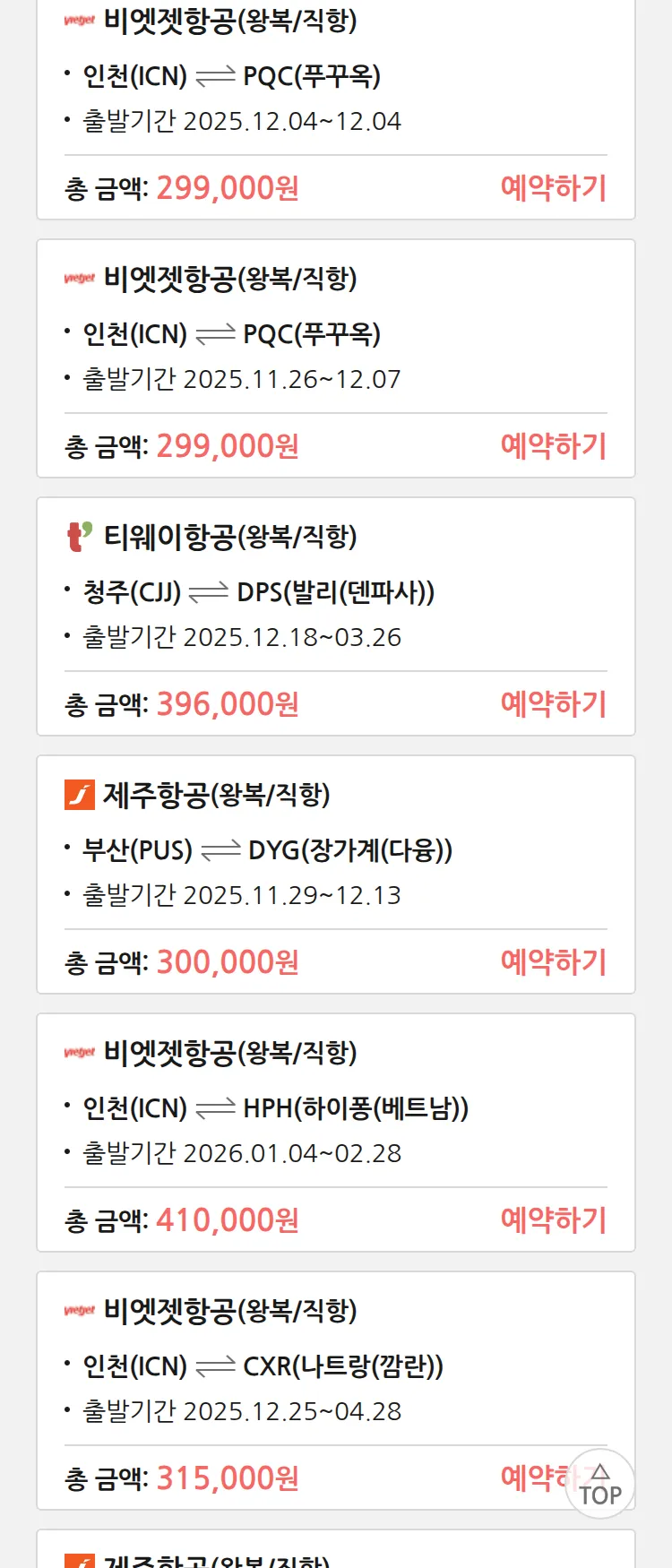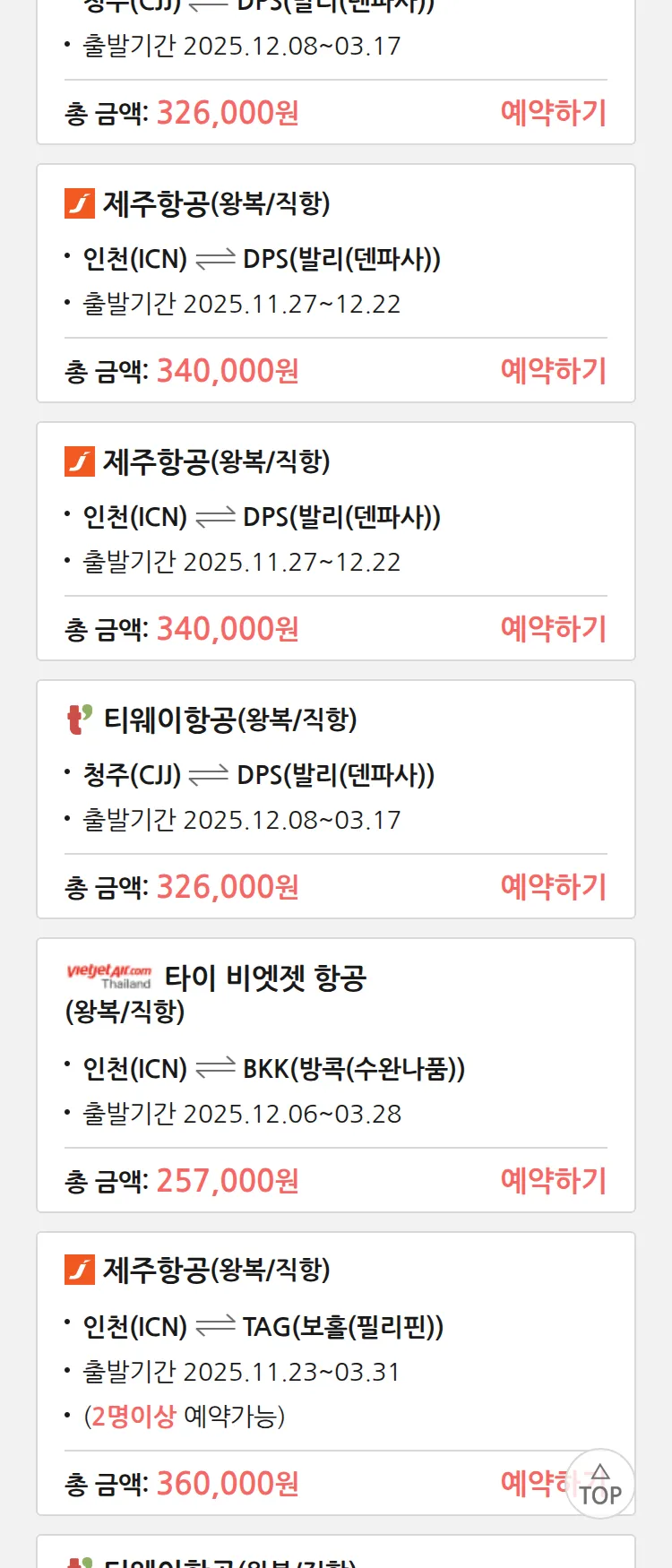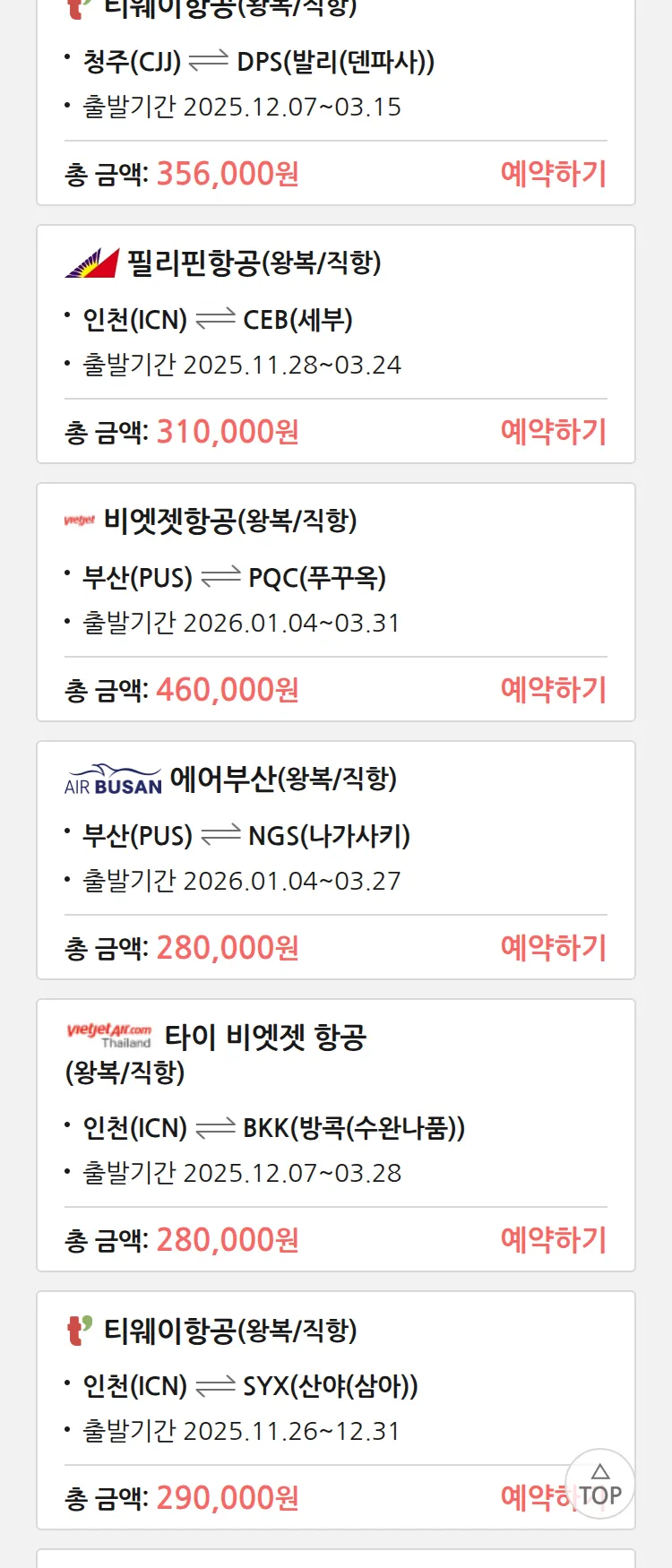 (11월 20일(목)) 땡처리 특가 항공권