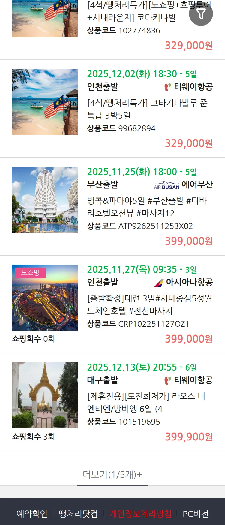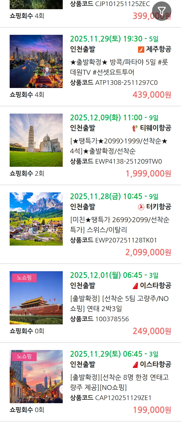 (11월 21일(금)) 땡처리 99.9% 확정 패키지
