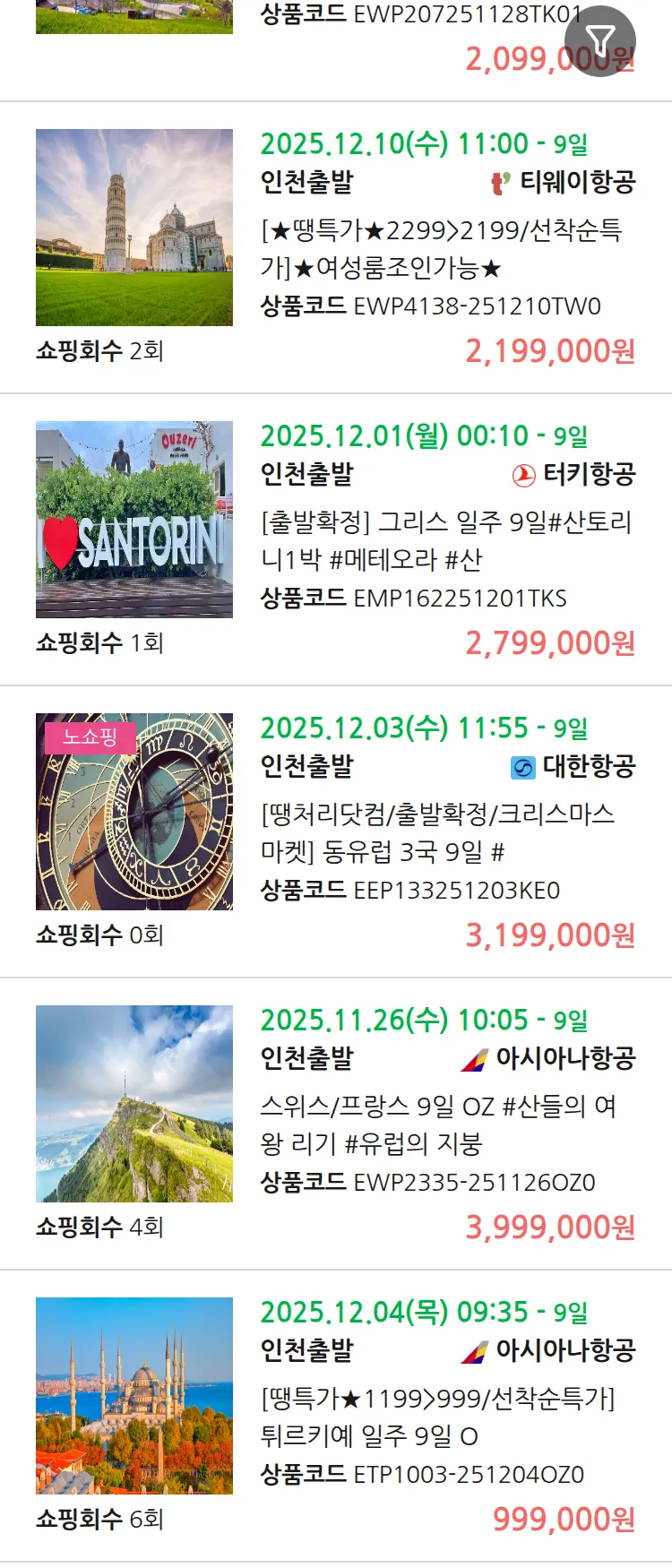 (11월 21일(금)) 땡처리 유럽 긴급 패키지