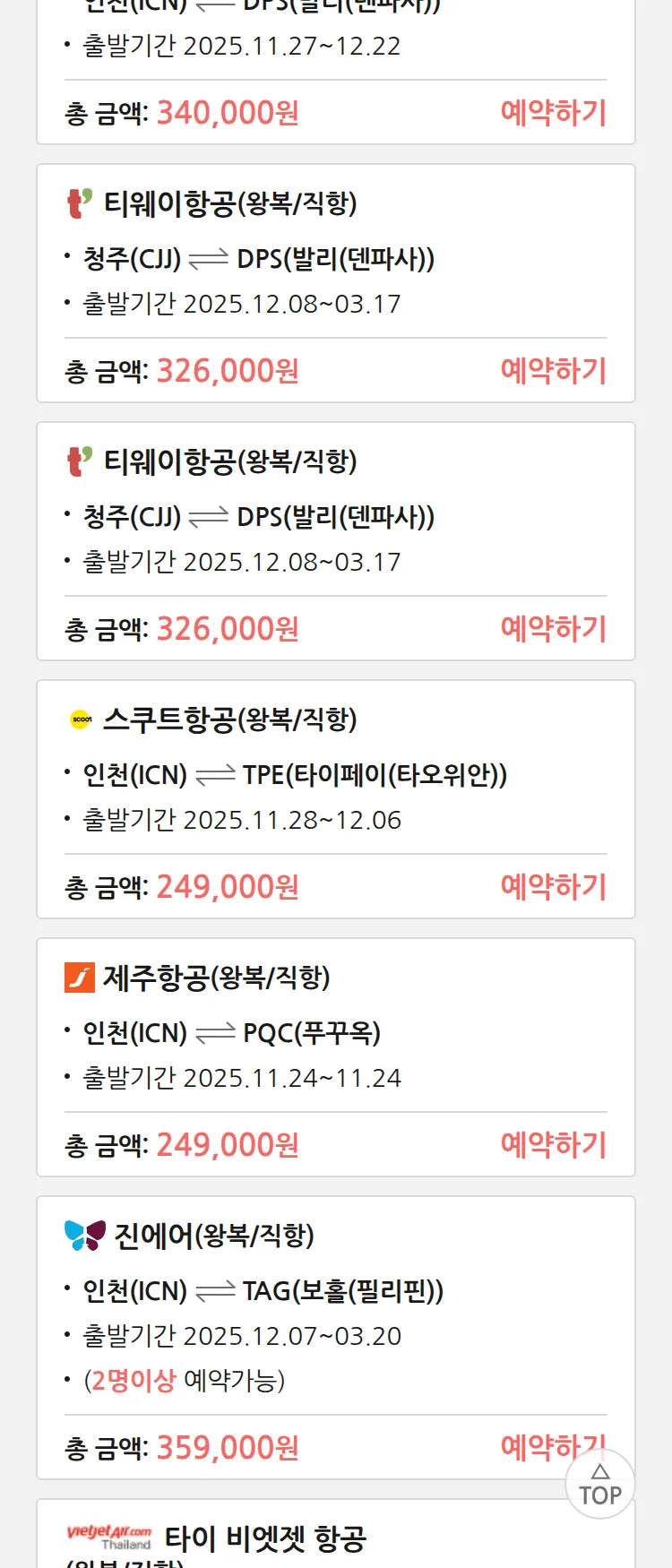 (11월 21일(금)) 모두투어 동남아 특가 항공권