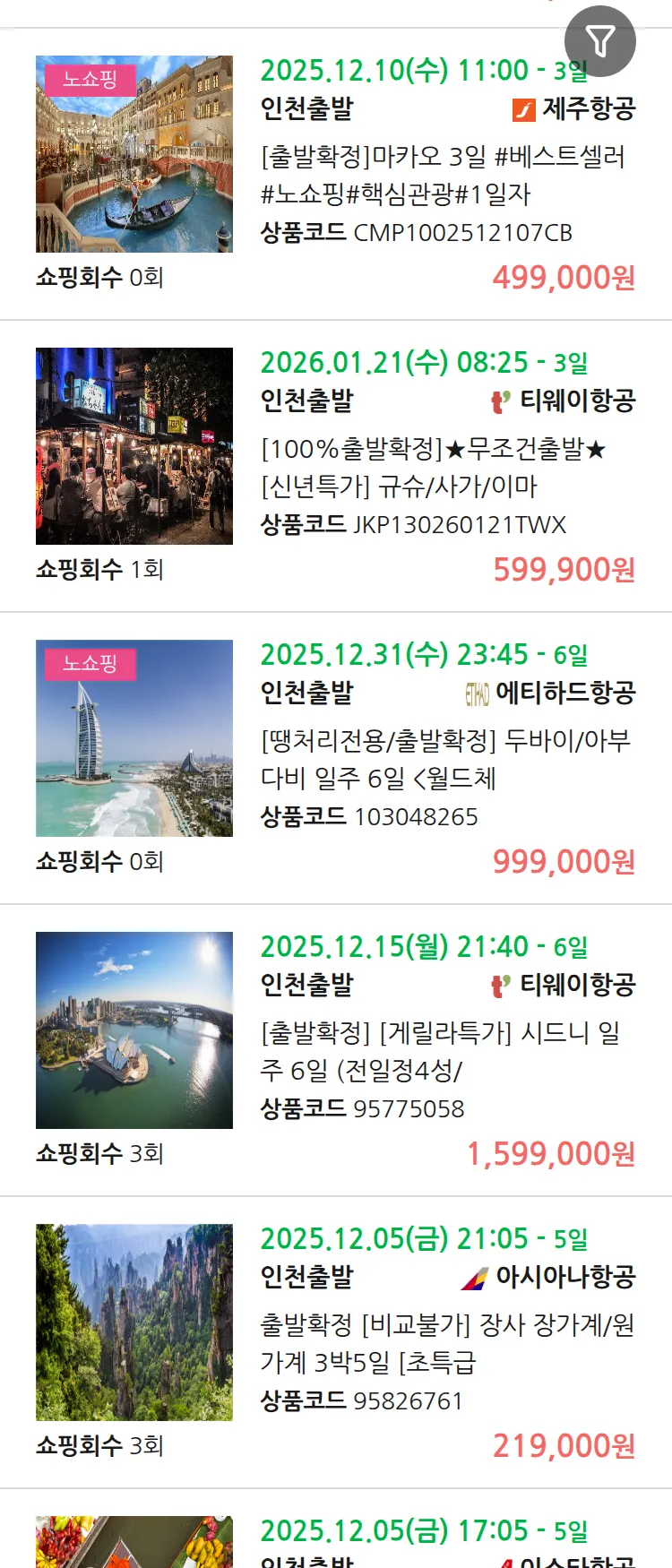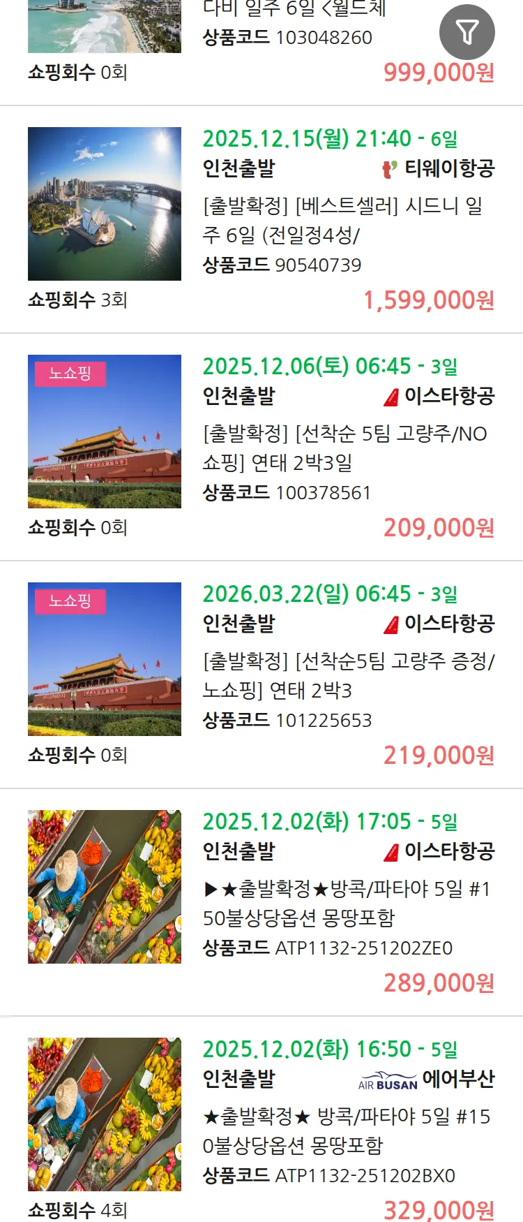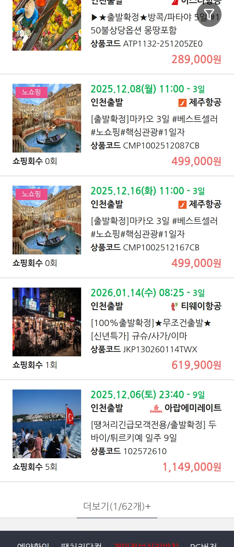 (11월 22일(토)) 땡처리 99.9% 확정 패키지