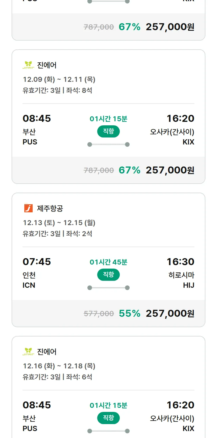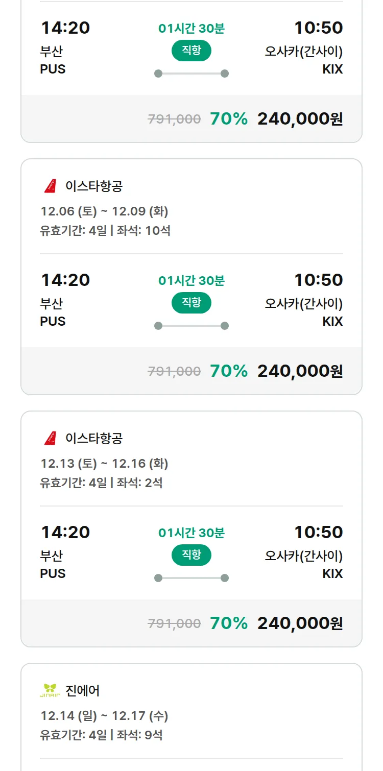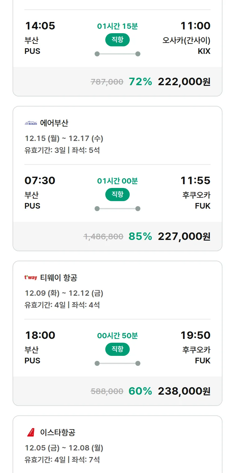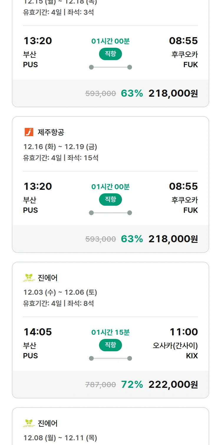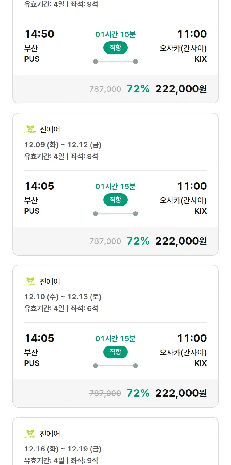 (11월 22일(토)) 모두투어 일본 특가 항공권