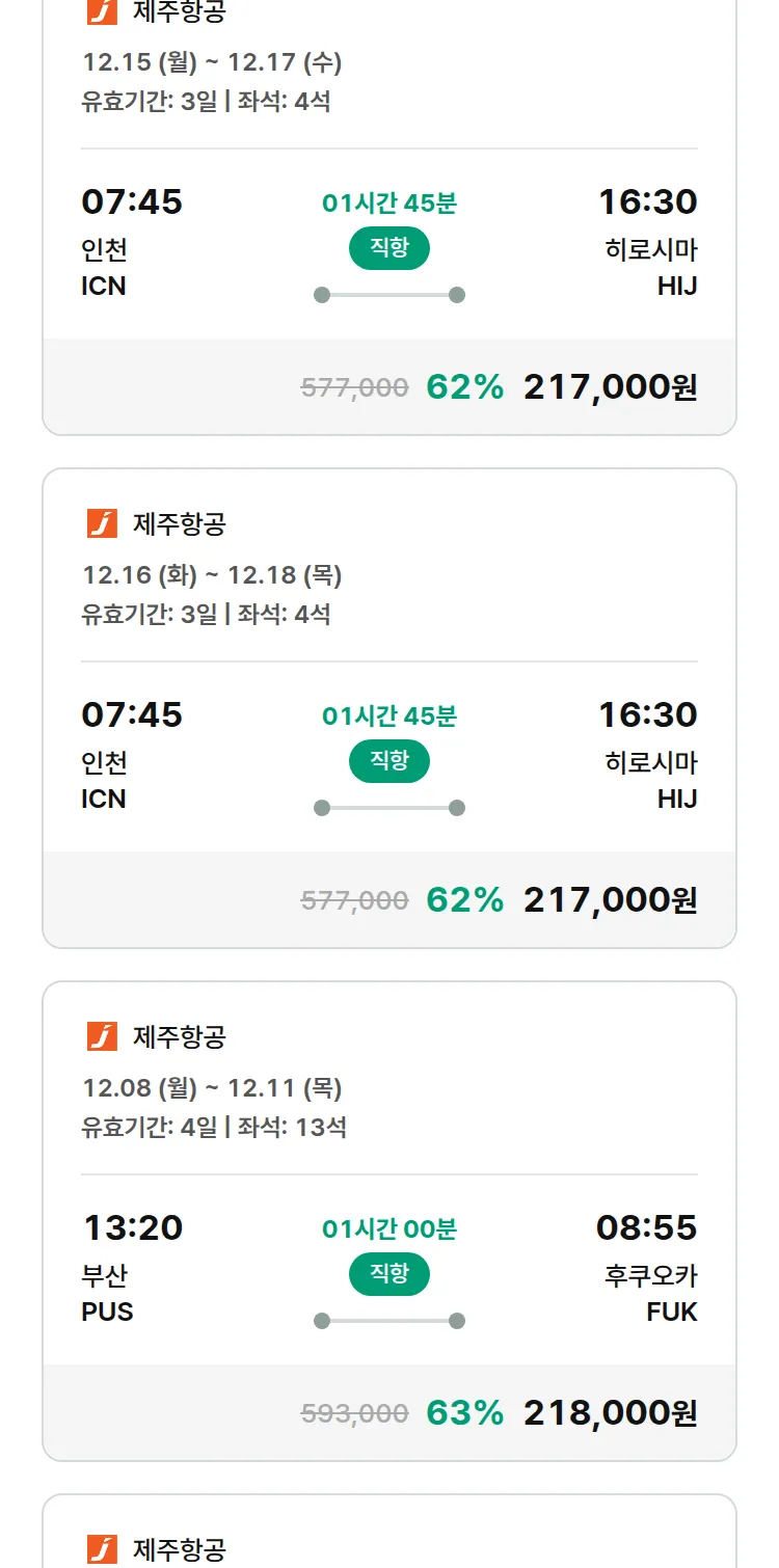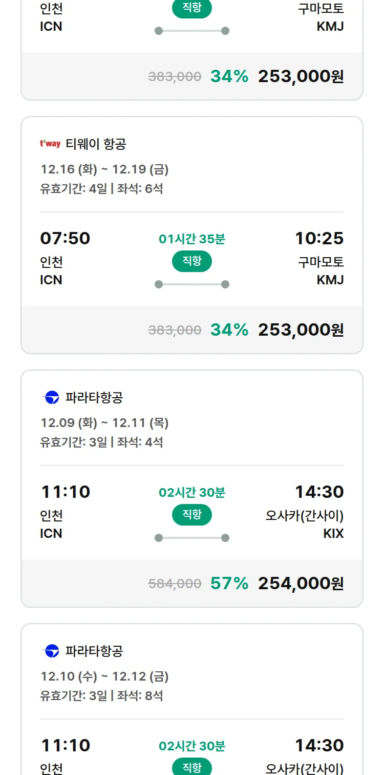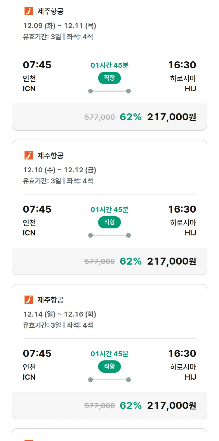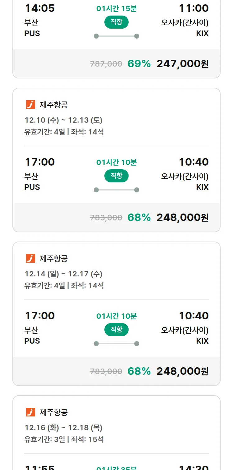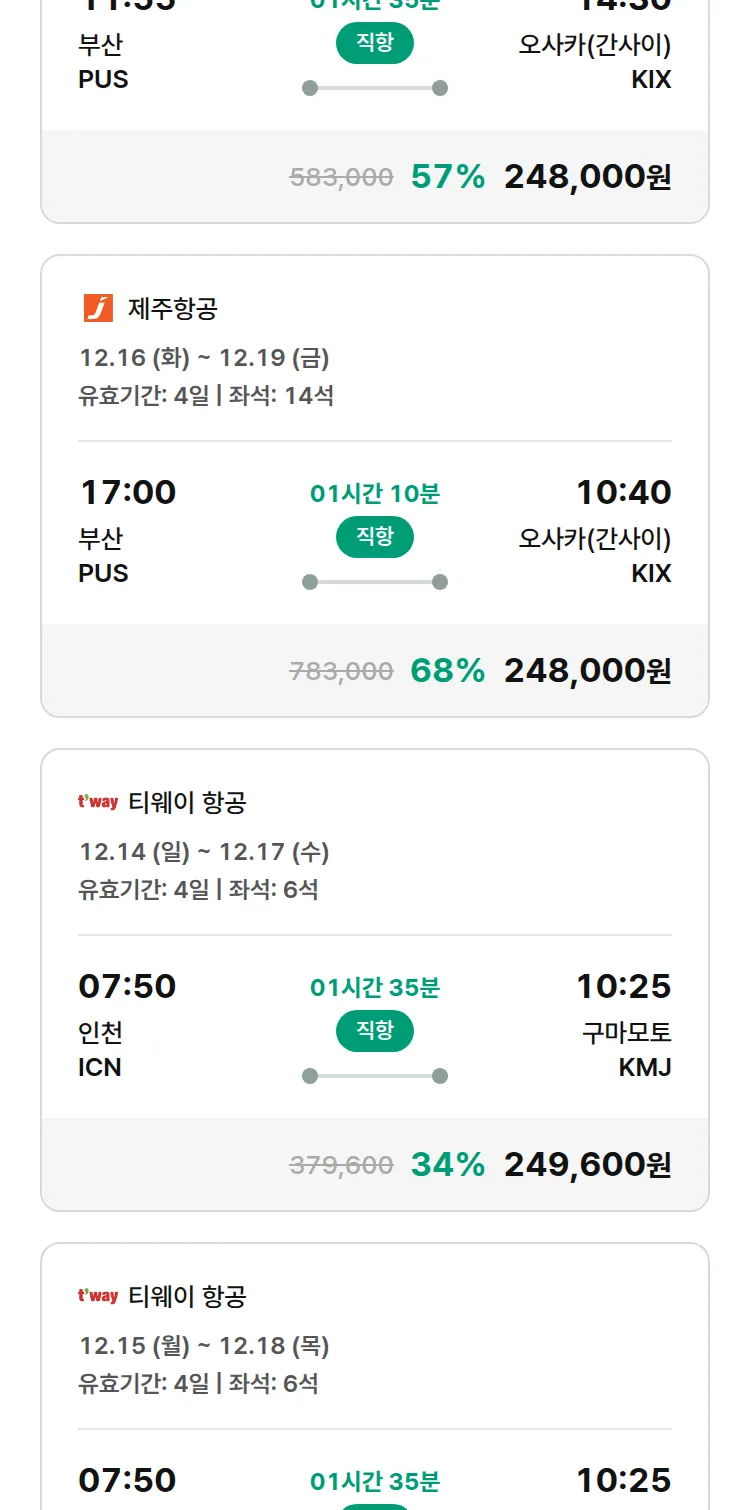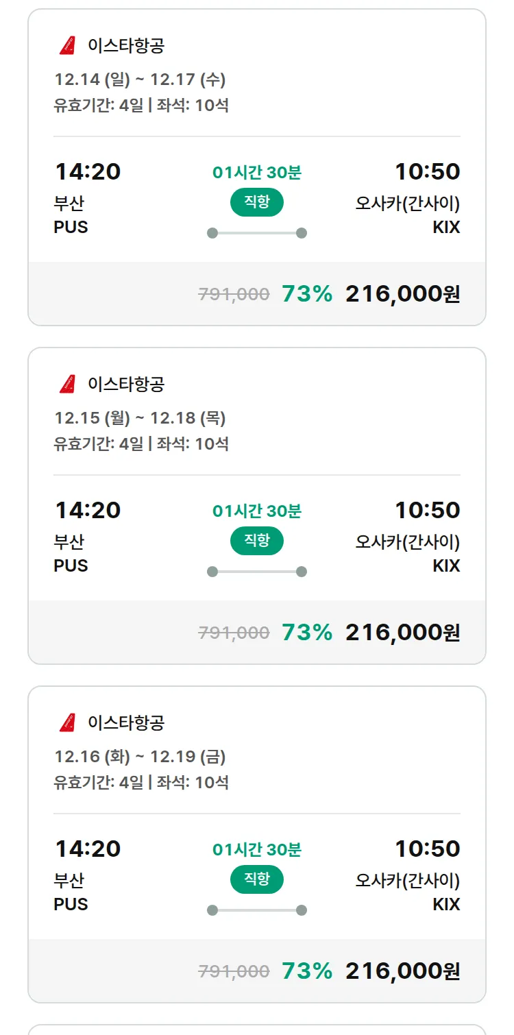 (11월 22일(토)) 모두투어 일본 특가 항공권