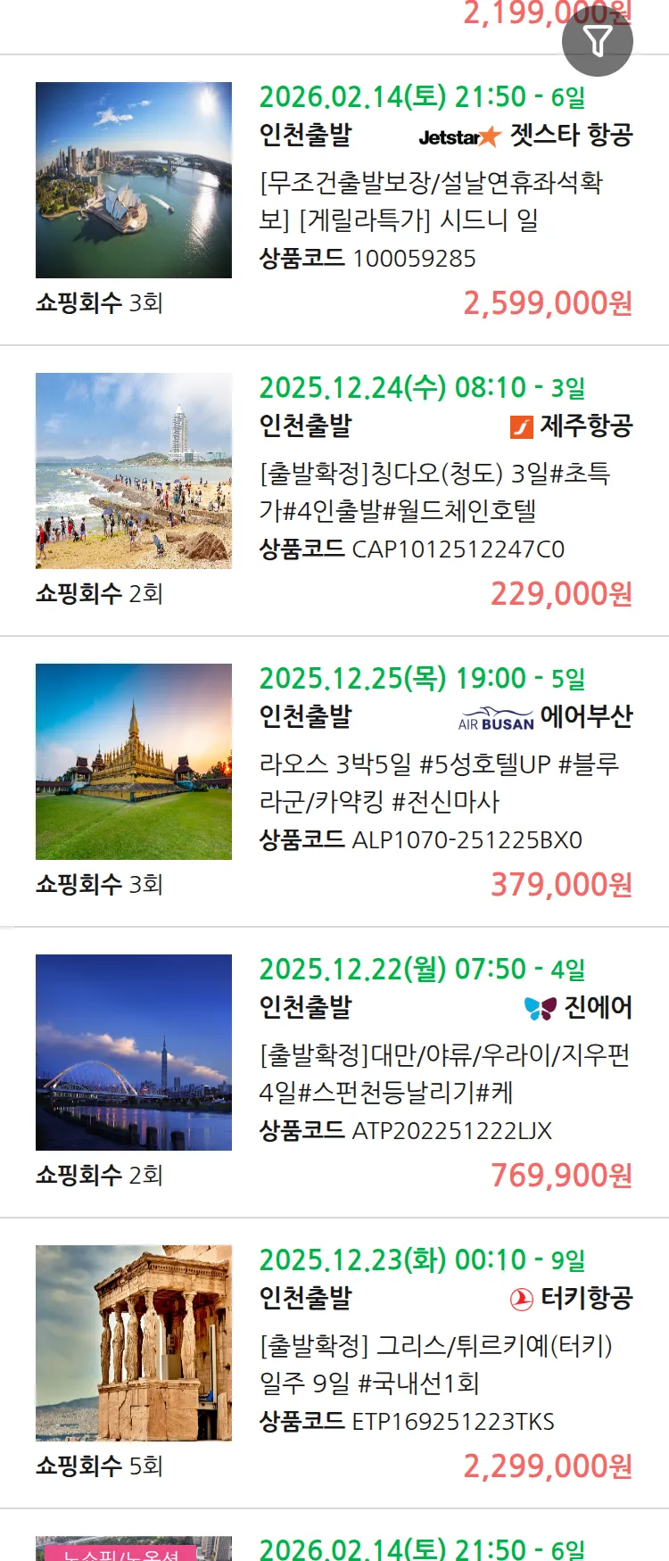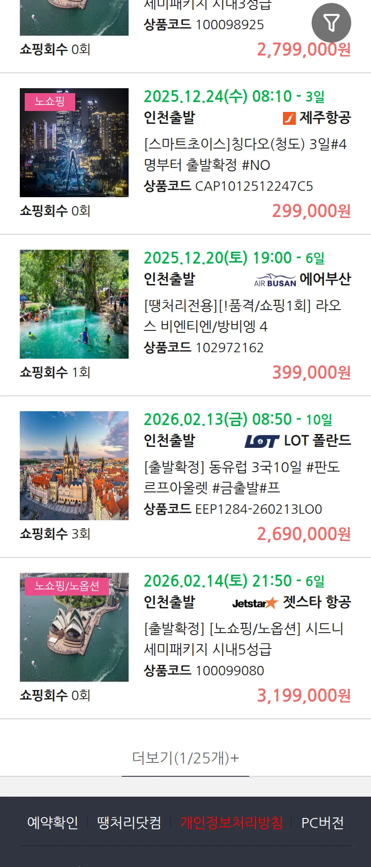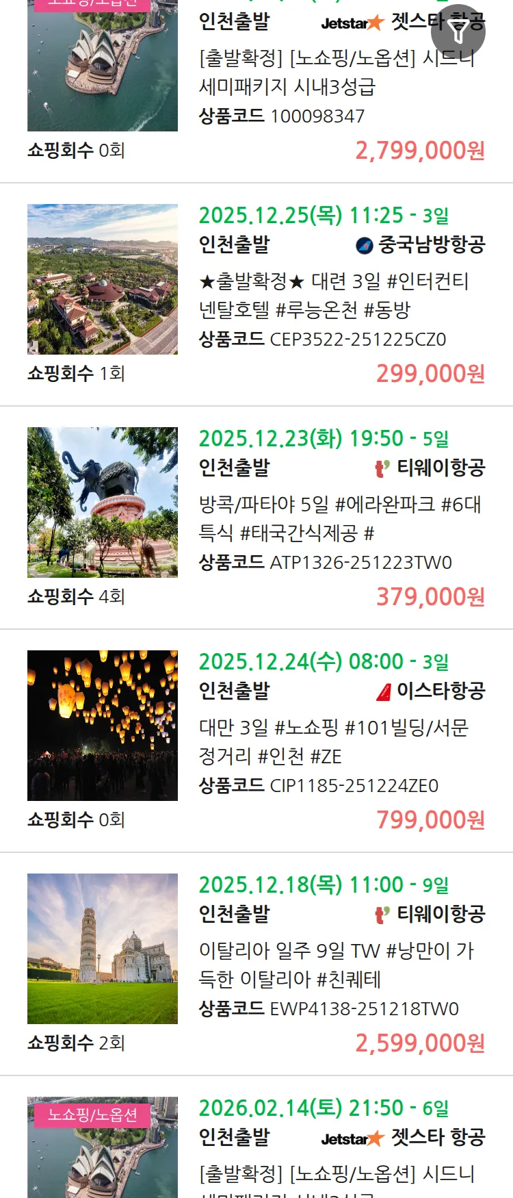 (11월 24일(월)) 땡처리 99.9% 확정 패키지