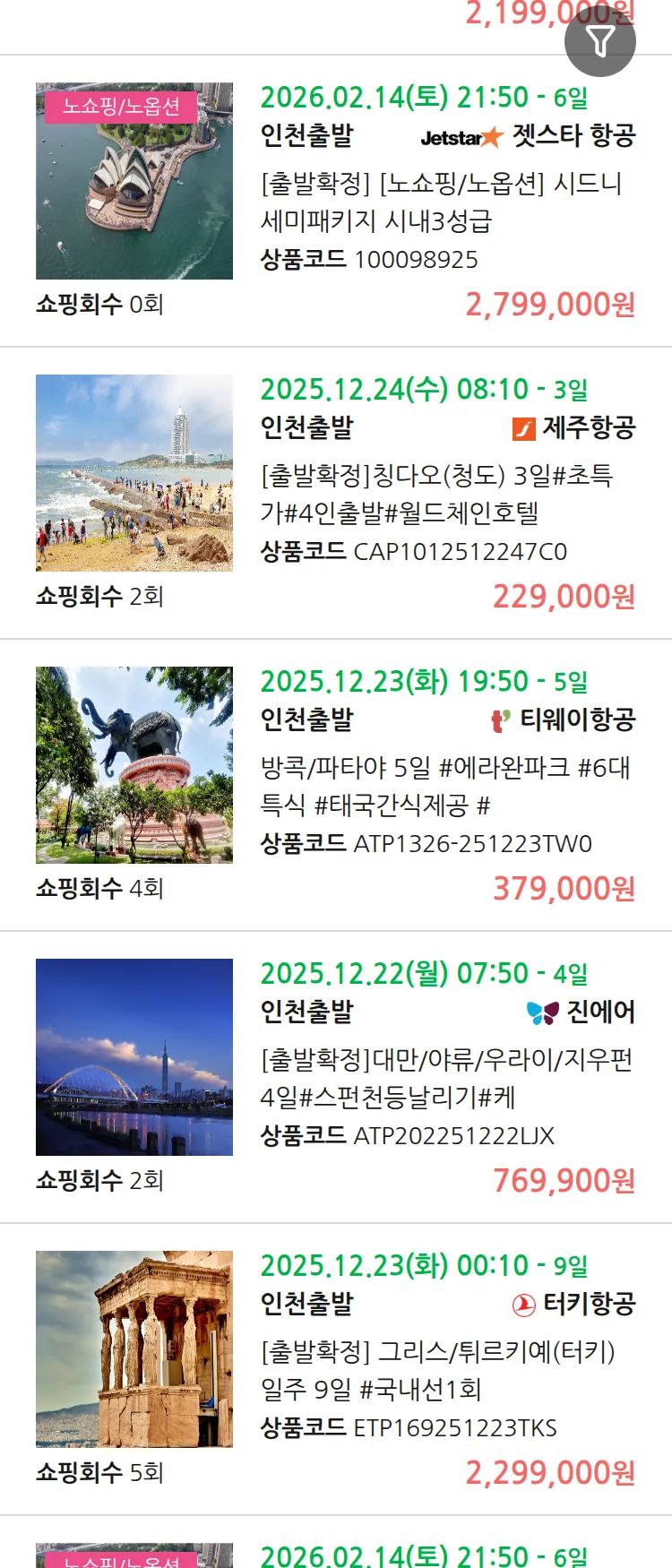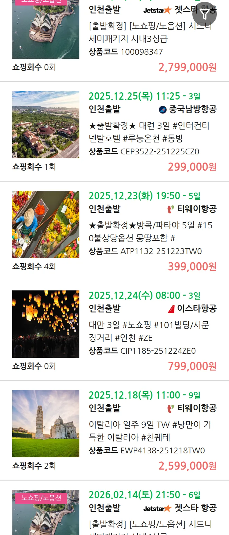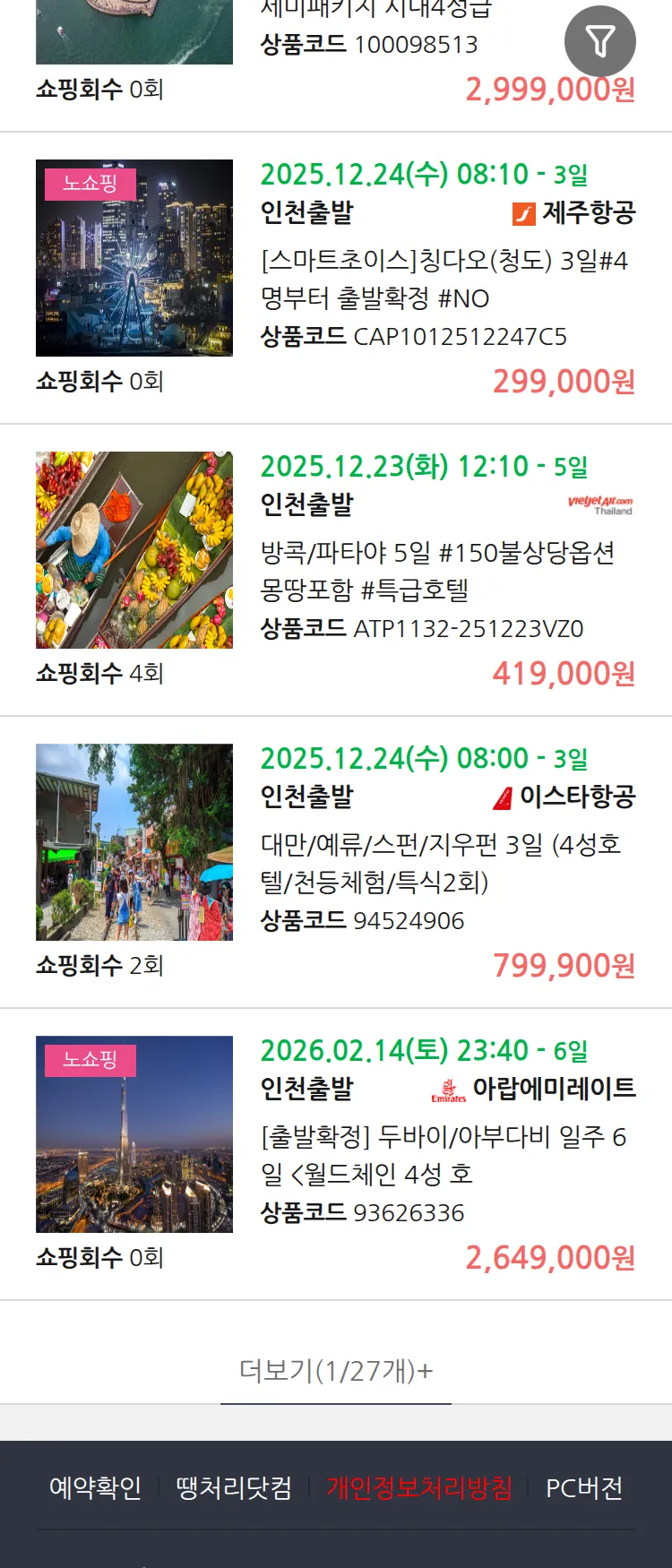 (11월 24일(월)) 땡처리 99.9% 확정 패키지