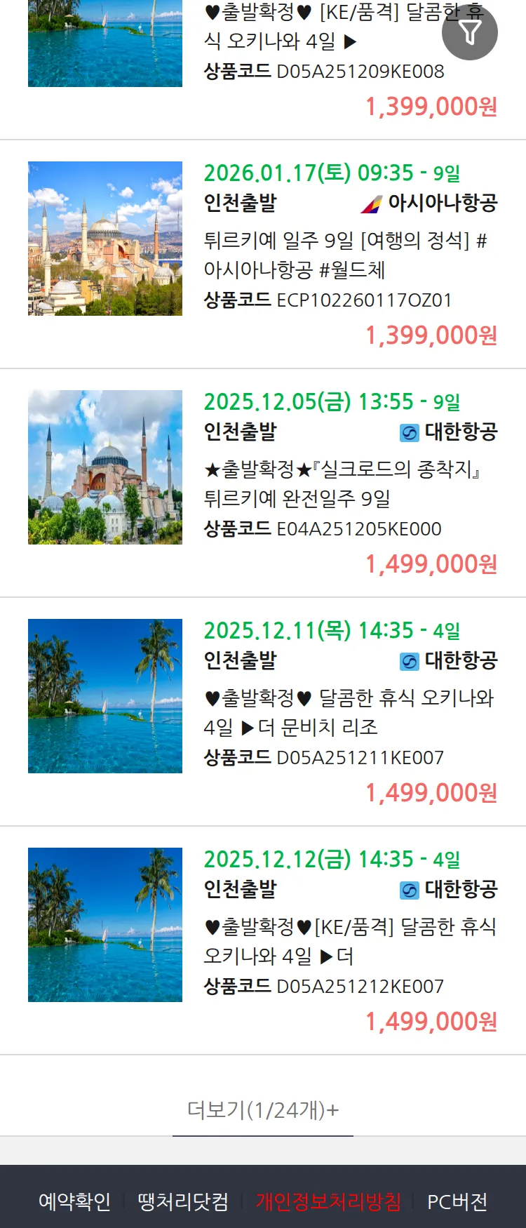 (11월 24일(월)) 땡처리 99.9% 확정 패키지