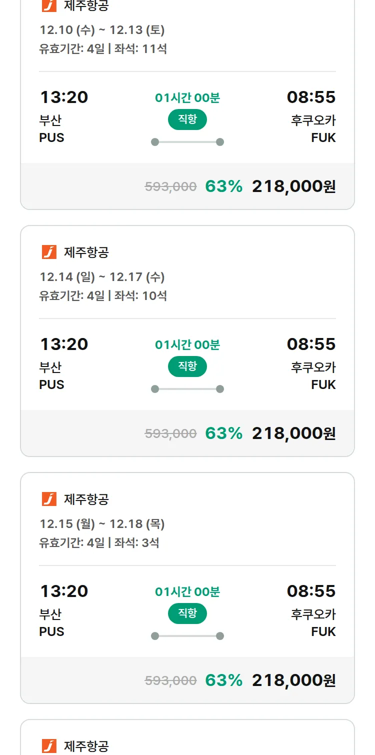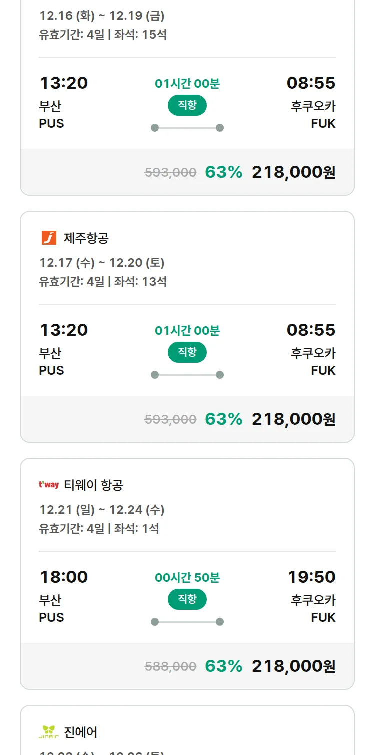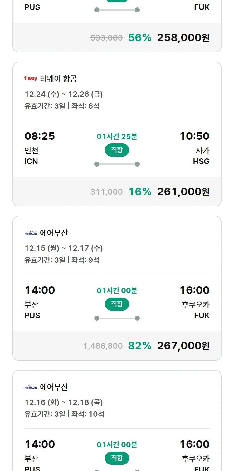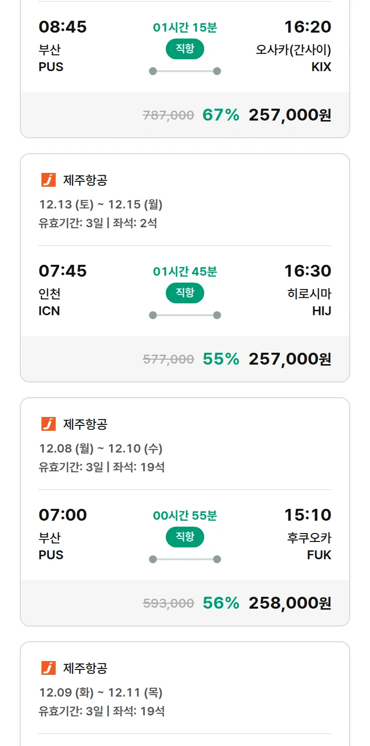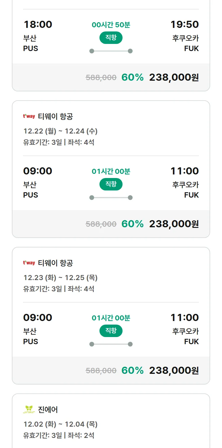 (11월 24일(월)) 땡처리 특가 항공권