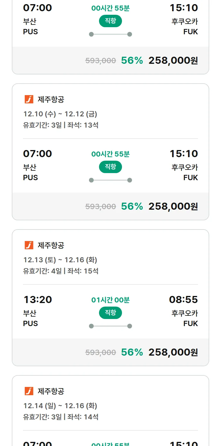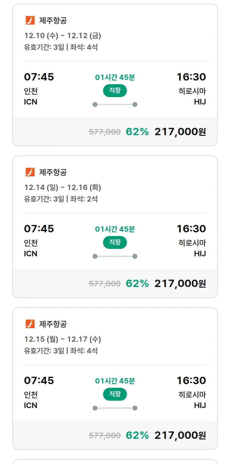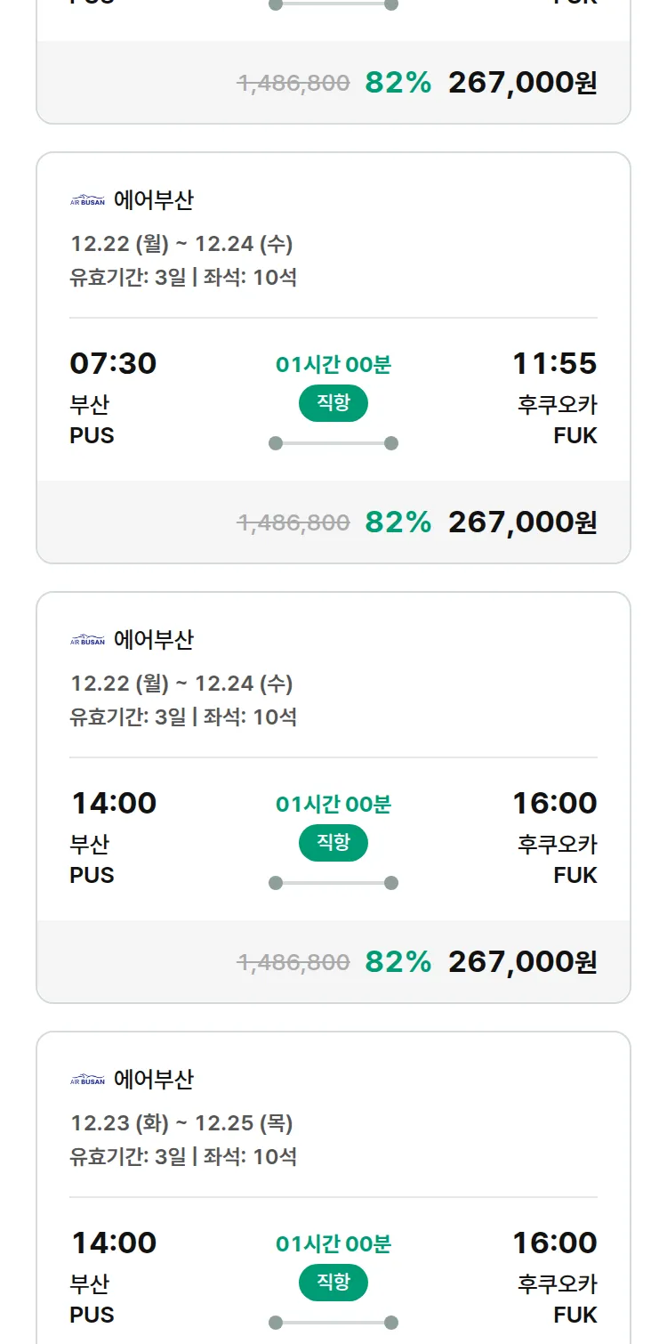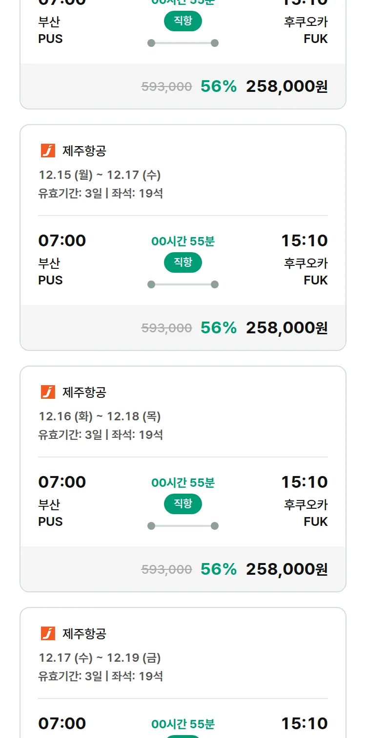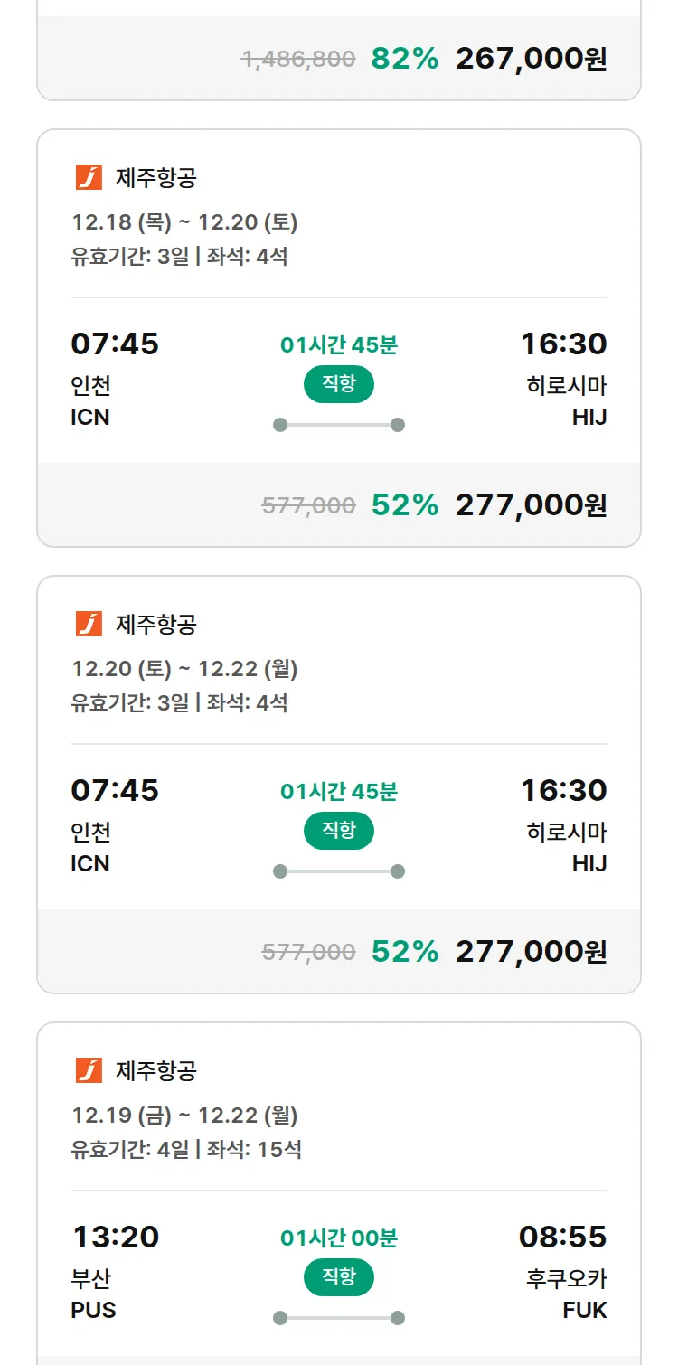 (11월 24일(월)) 땡처리 특가 항공권