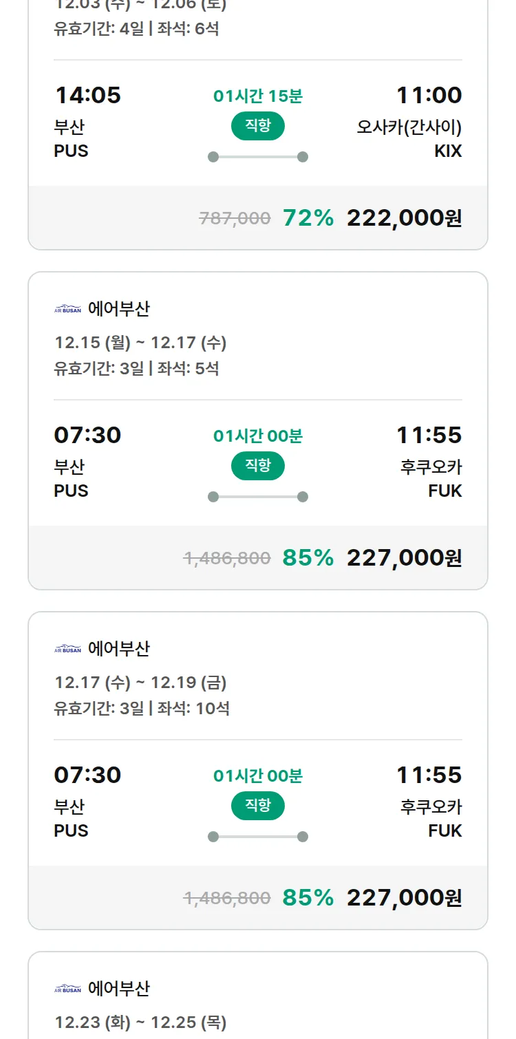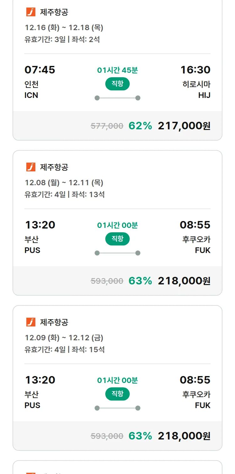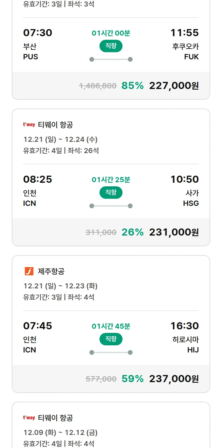 (11월 23일(일)) 땡처리 특가 항공권
