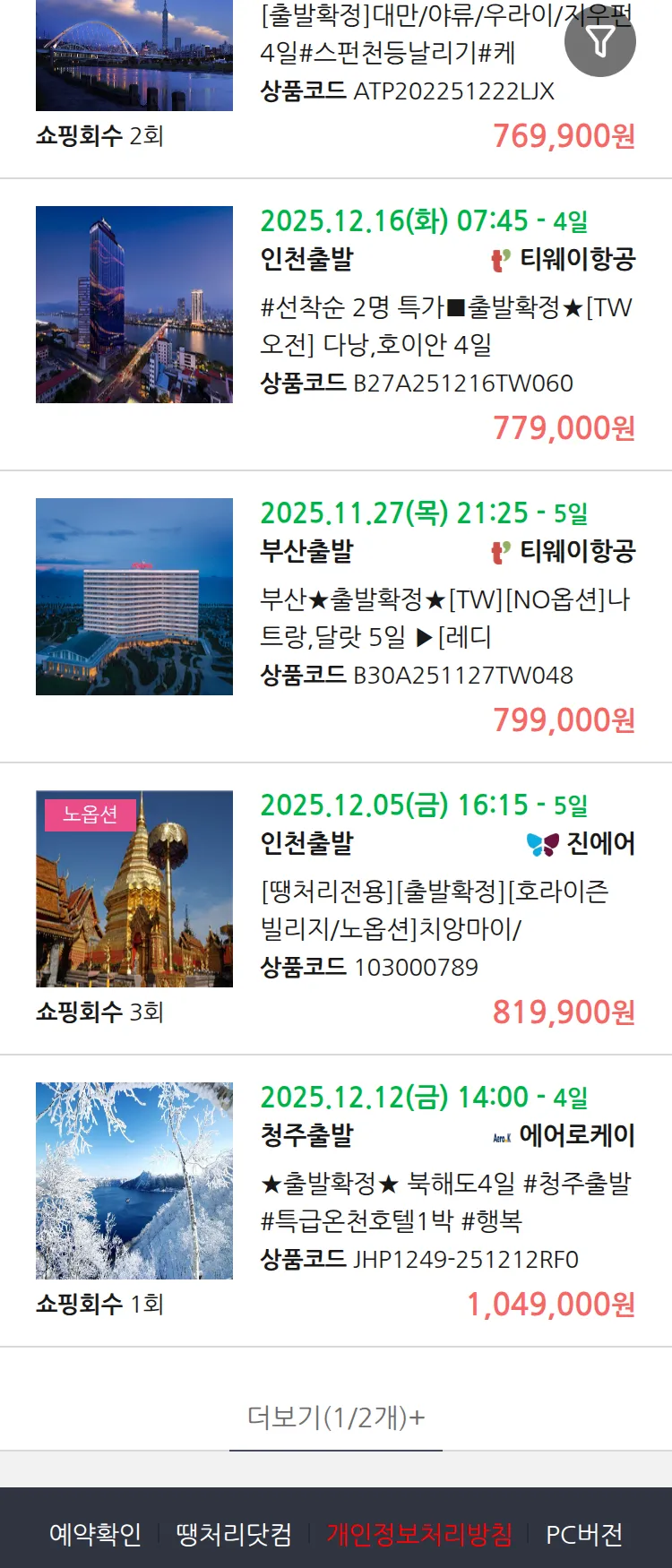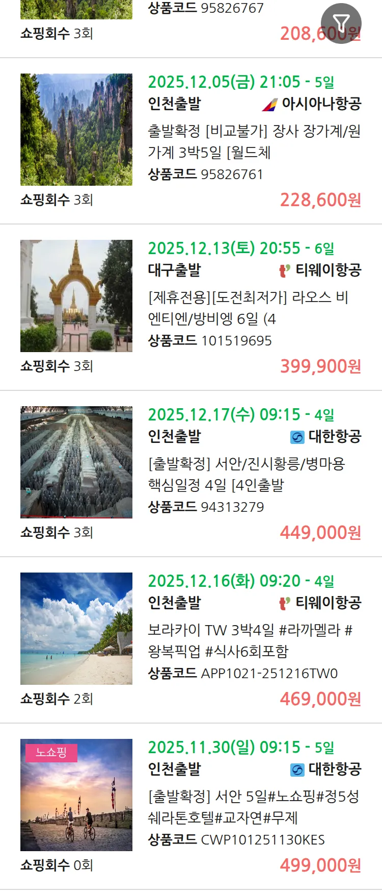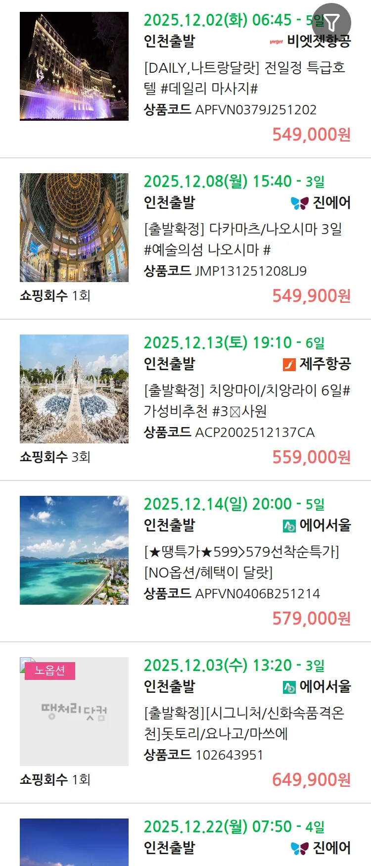 (11월 25일(화)) 땡처리 99.9% 확정 패키지