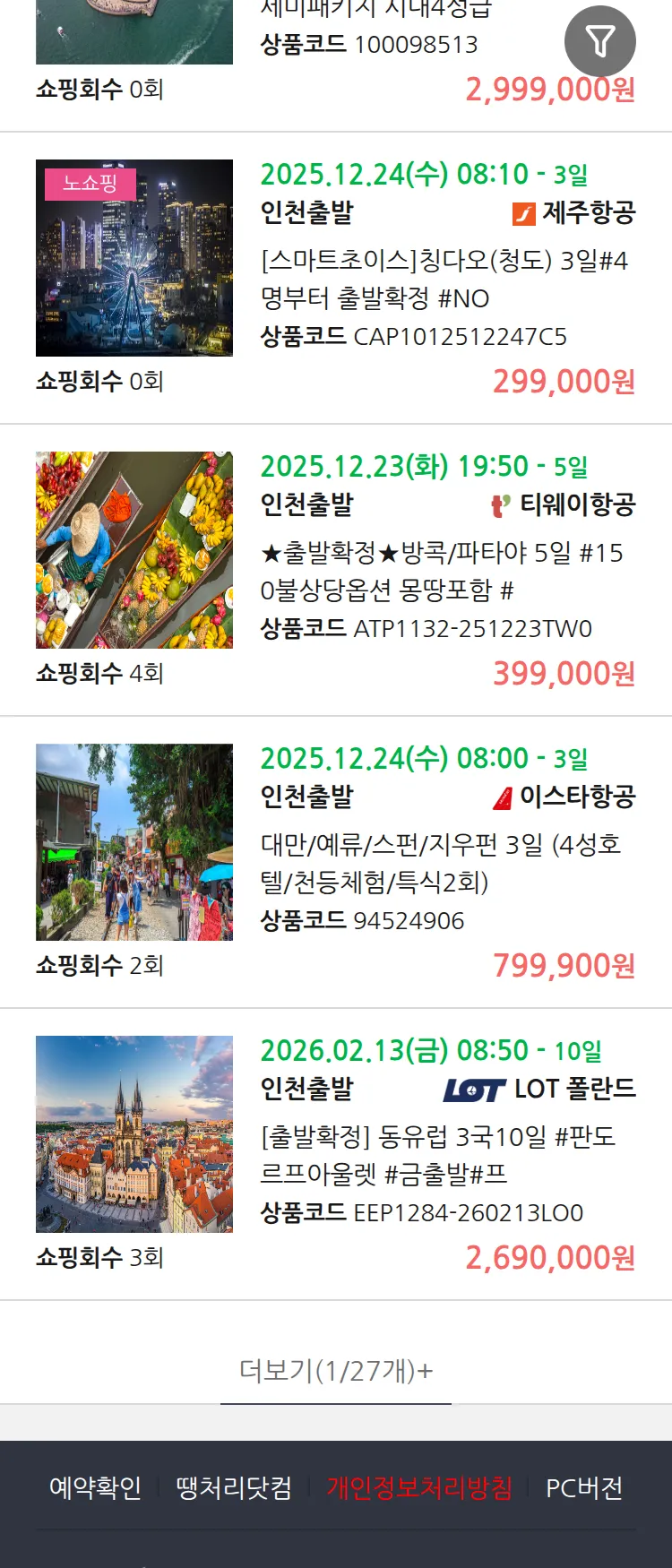 (11월 26일(수)) 땡처리 99.9% 확정 패키지