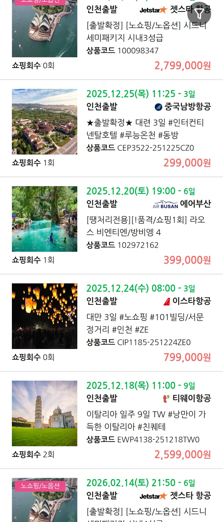 (11월 25일(화)) 땡처리 99.9% 확정 패키지
