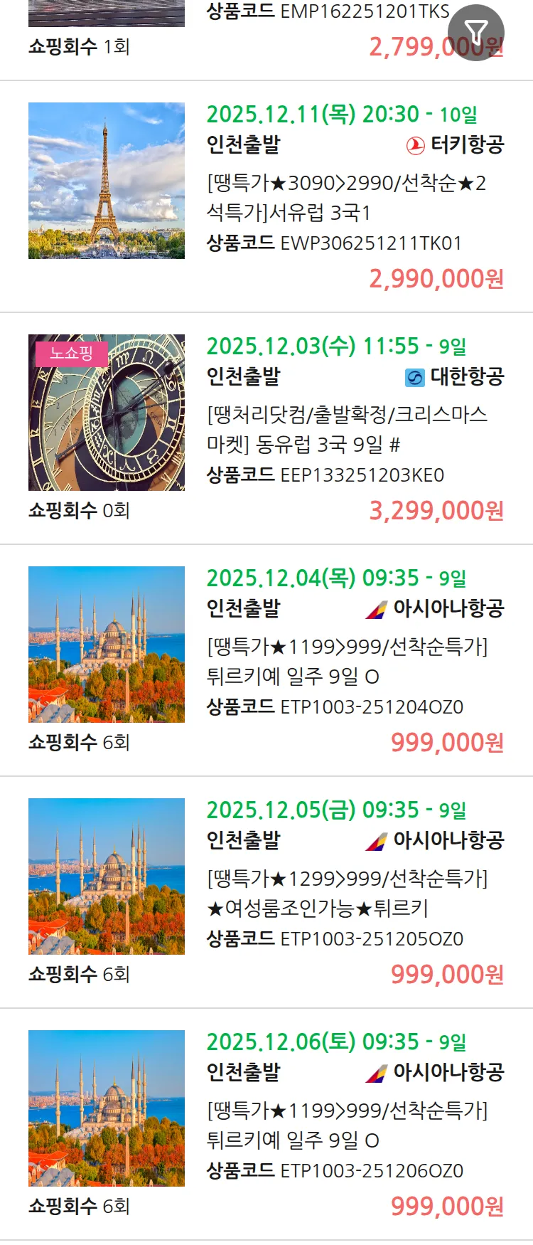 (11월 25일(화)) 땡처리 유럽 긴급 패키지