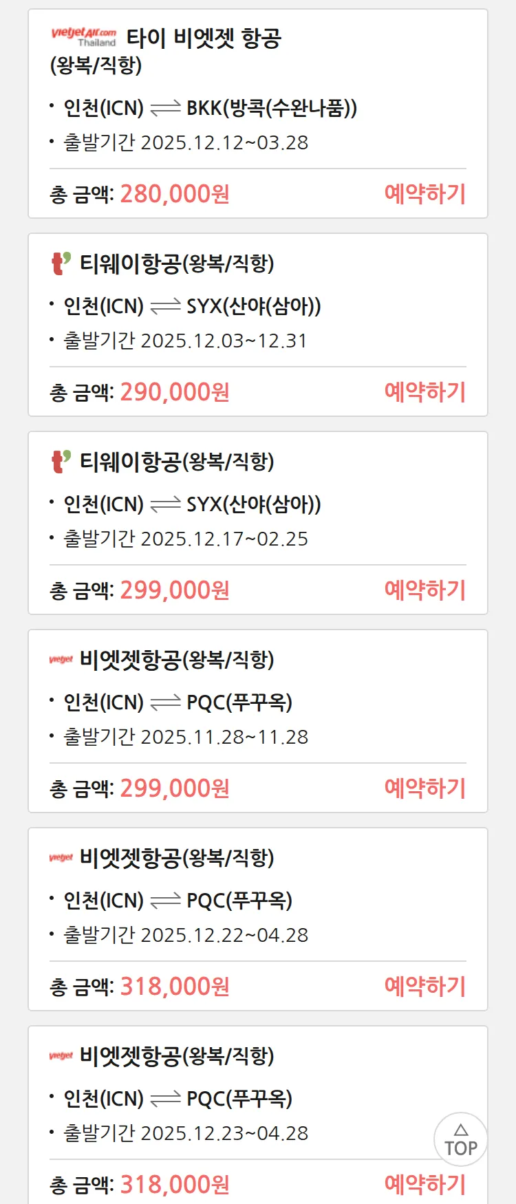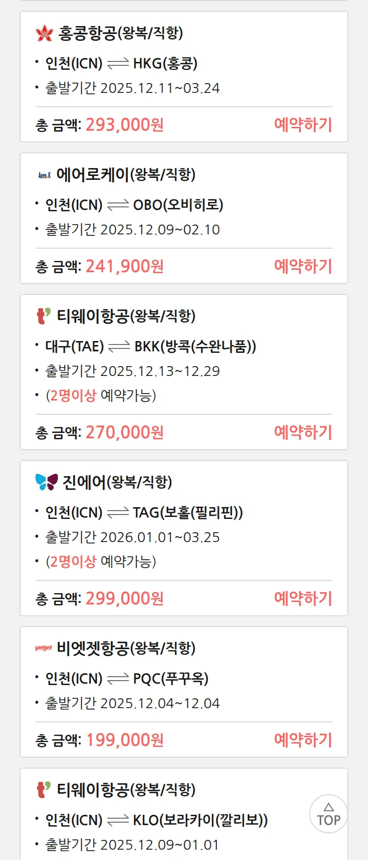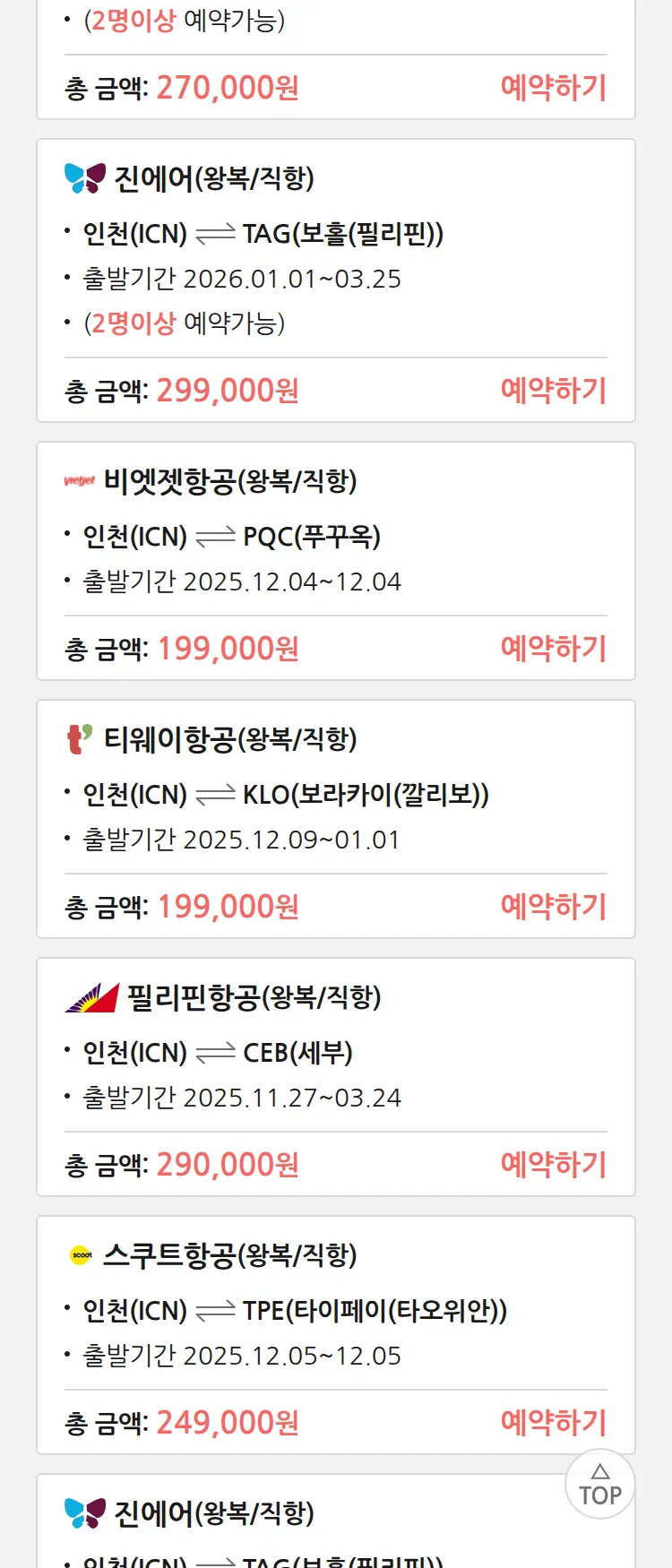 (11월 25일(화)) 땡처리 특가 항공권