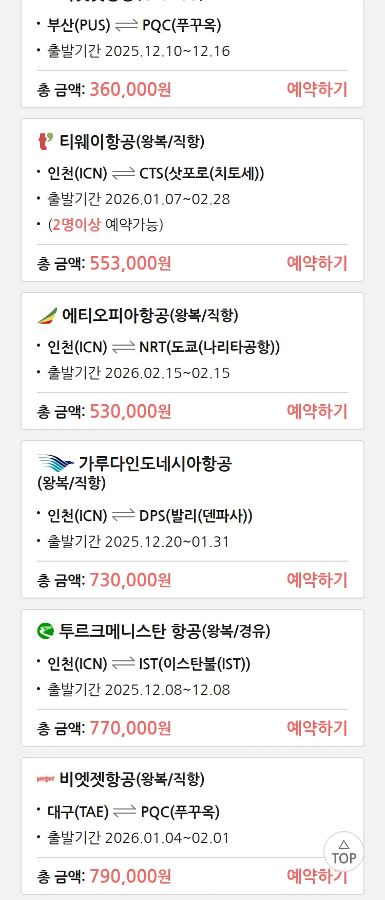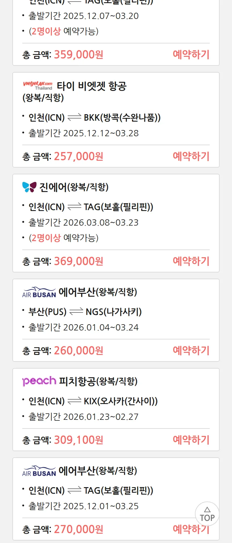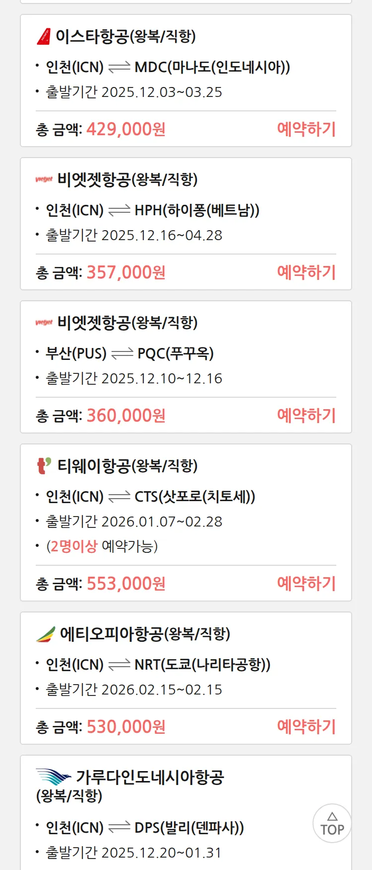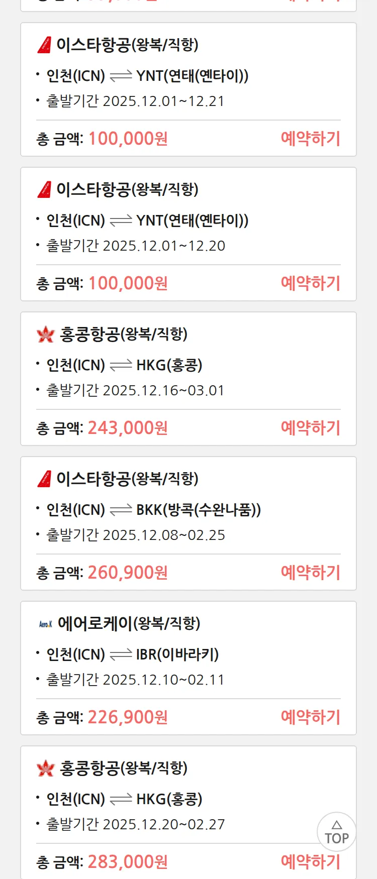 (11월 25일(화)) 땡처리 특가 항공권