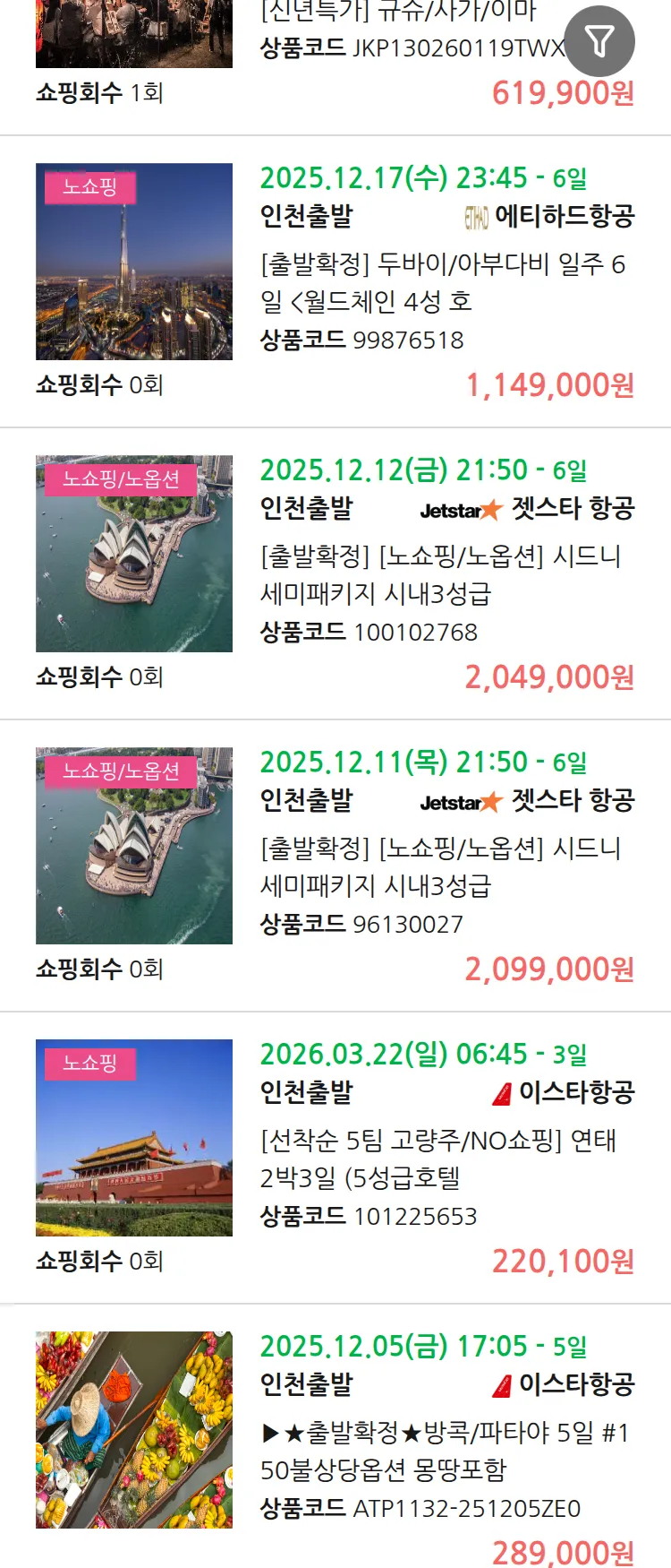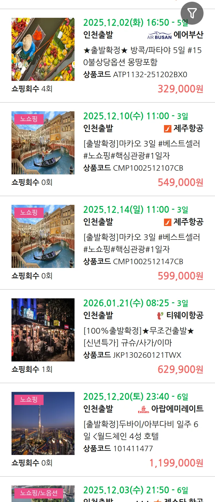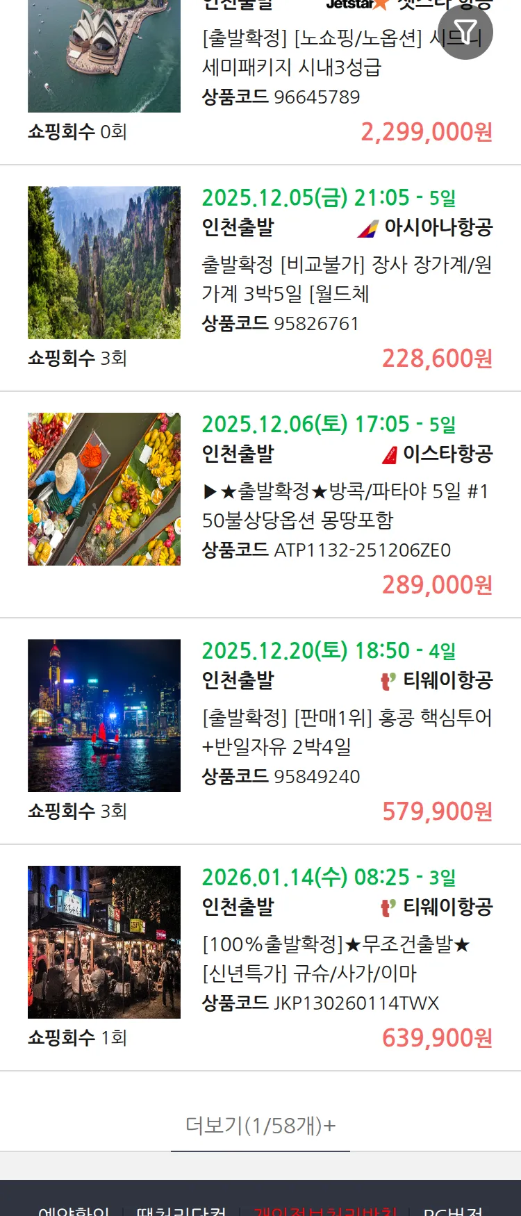 (11월 25일(화)) 땡처리 99.9% 확정 패키지
