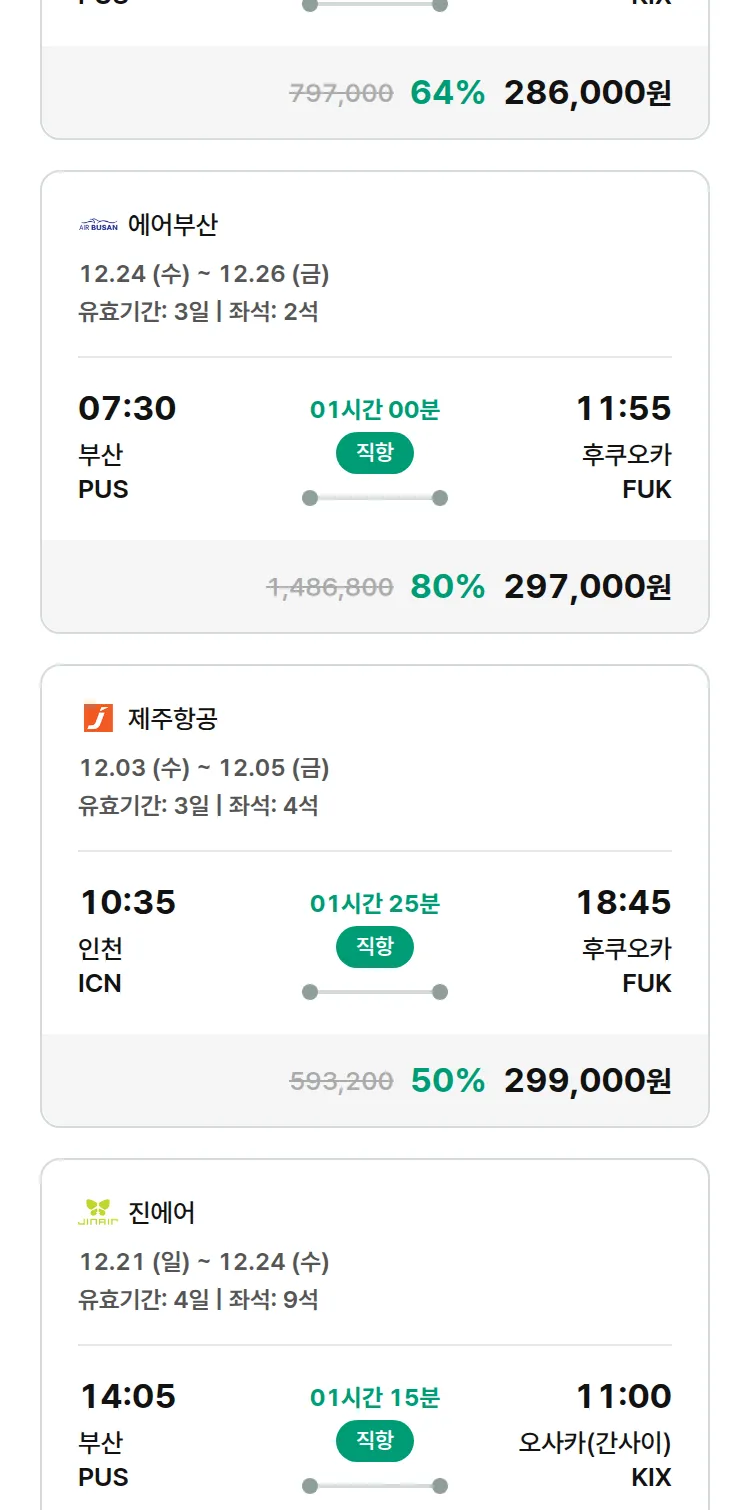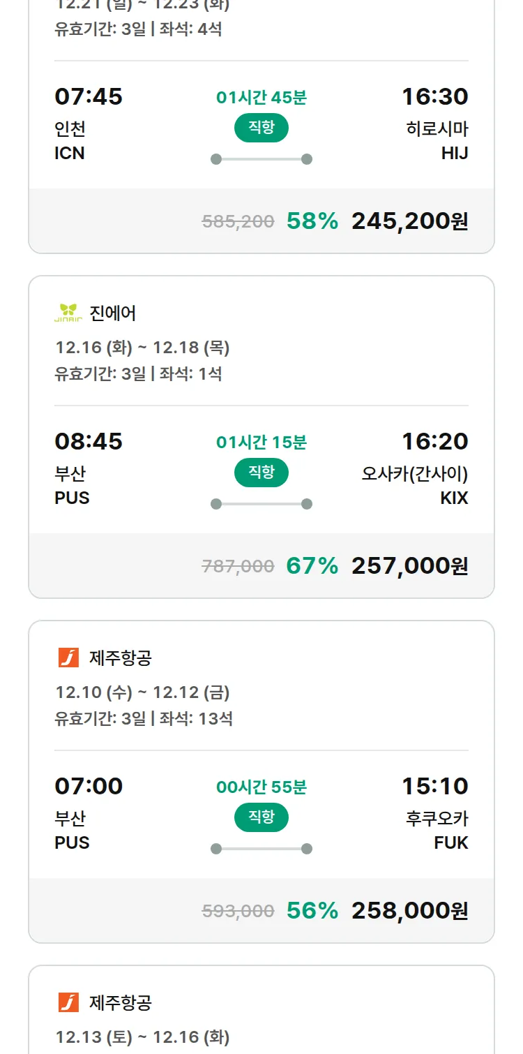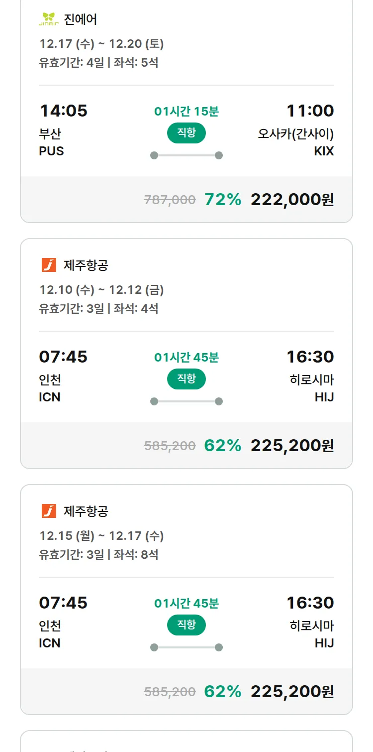 (11월 25일(화)) 모두투어 일본 특가 항공권