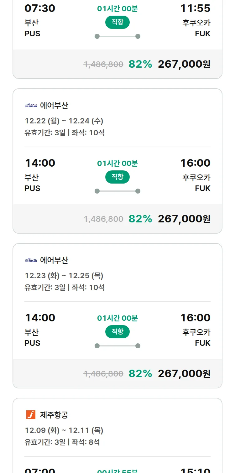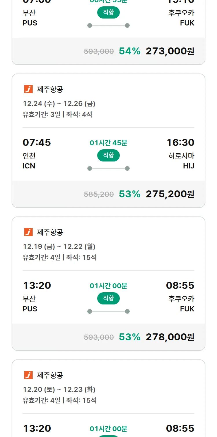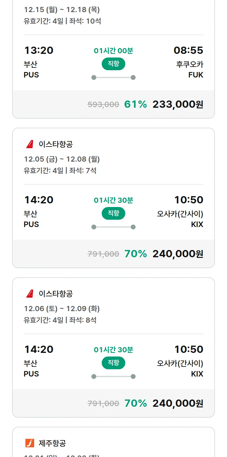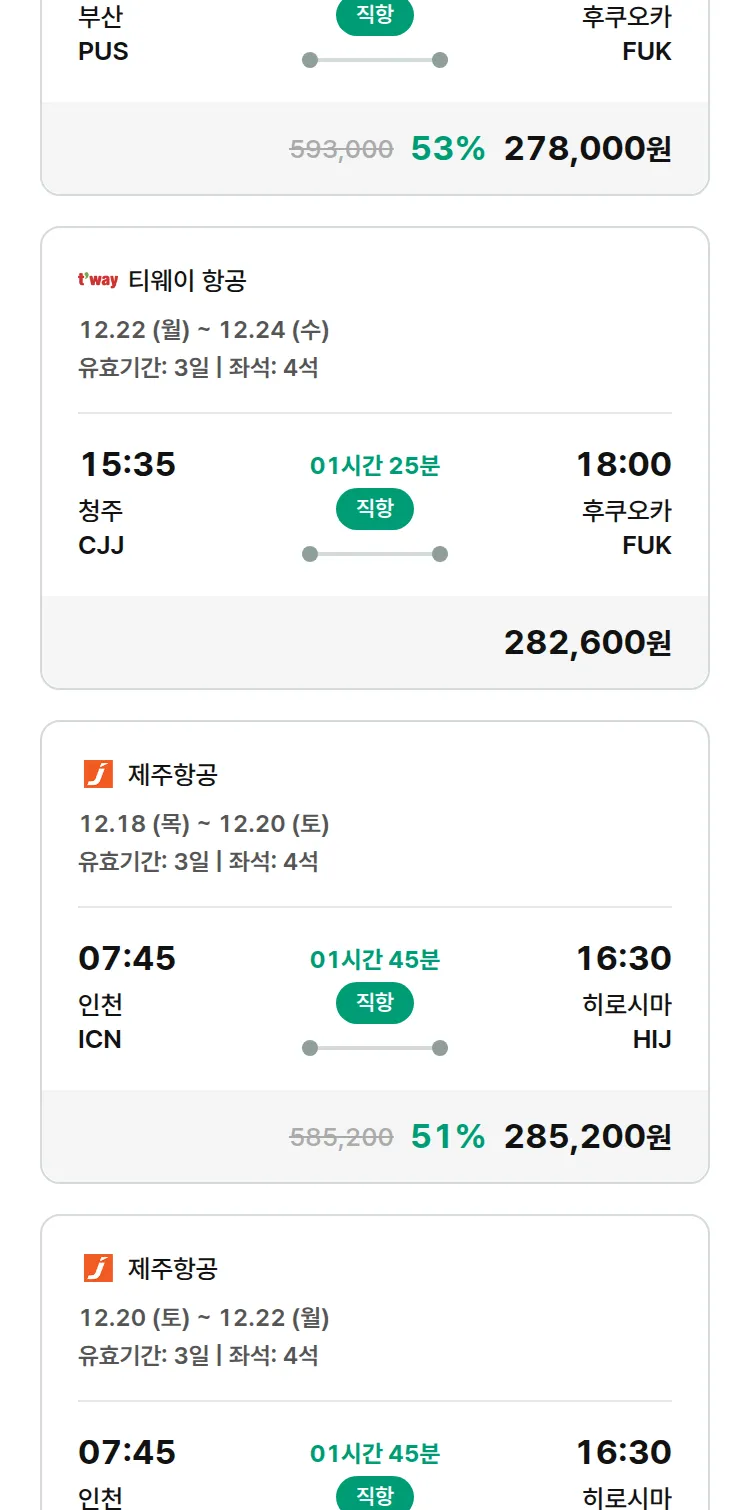 (11월 25일(화)) 모두투어 일본 특가 항공권