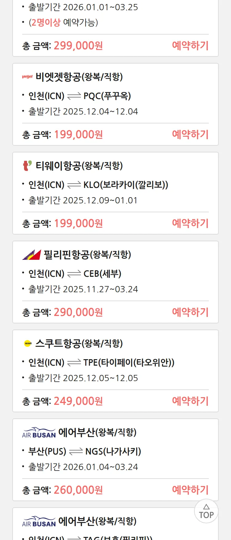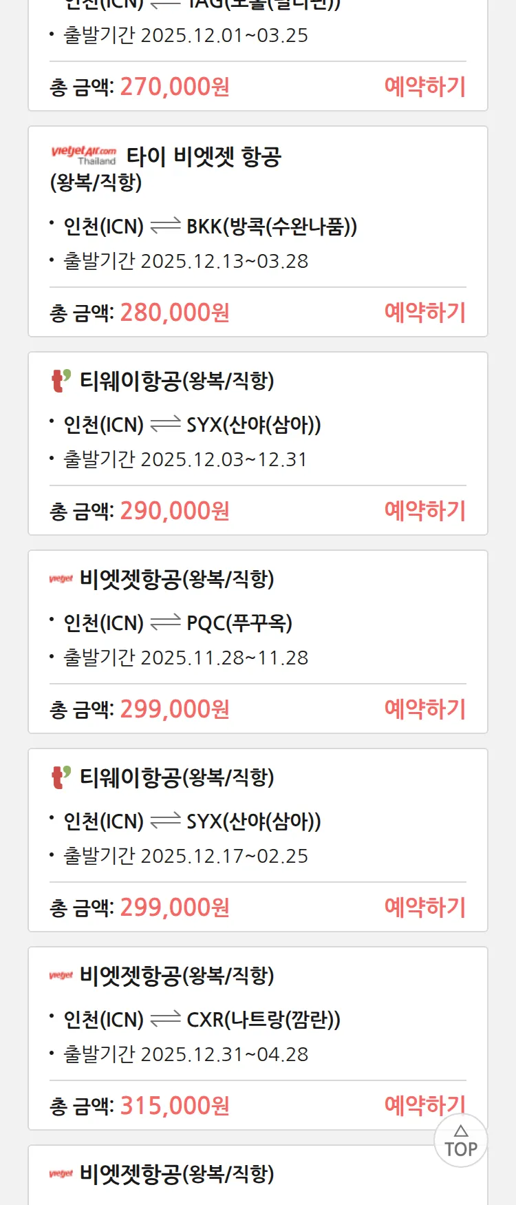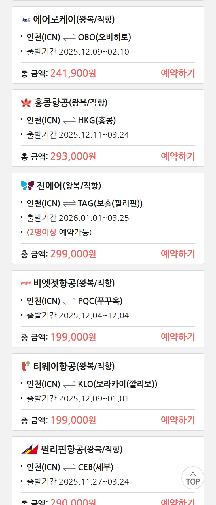 (11월 25일(화)) 땡처리 특가 항공권