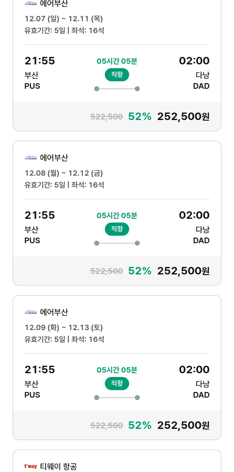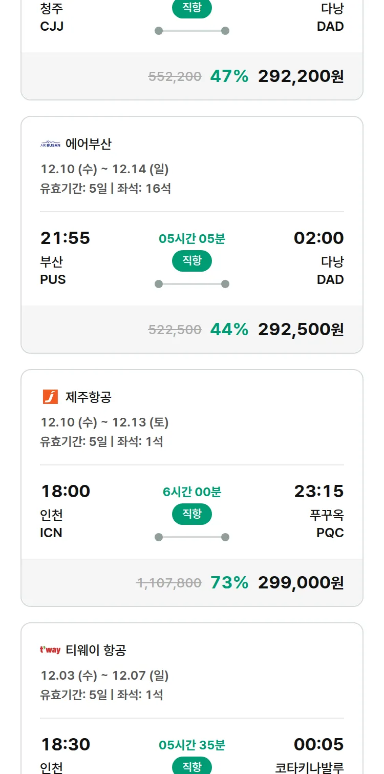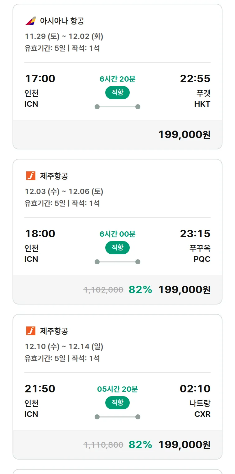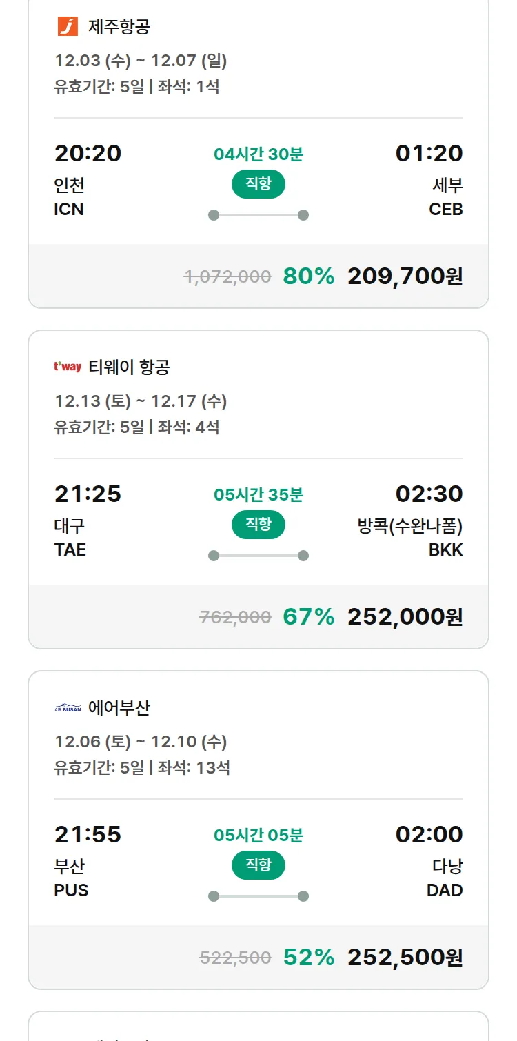 (11월 25일(화)) 땡처리 특가 항공권