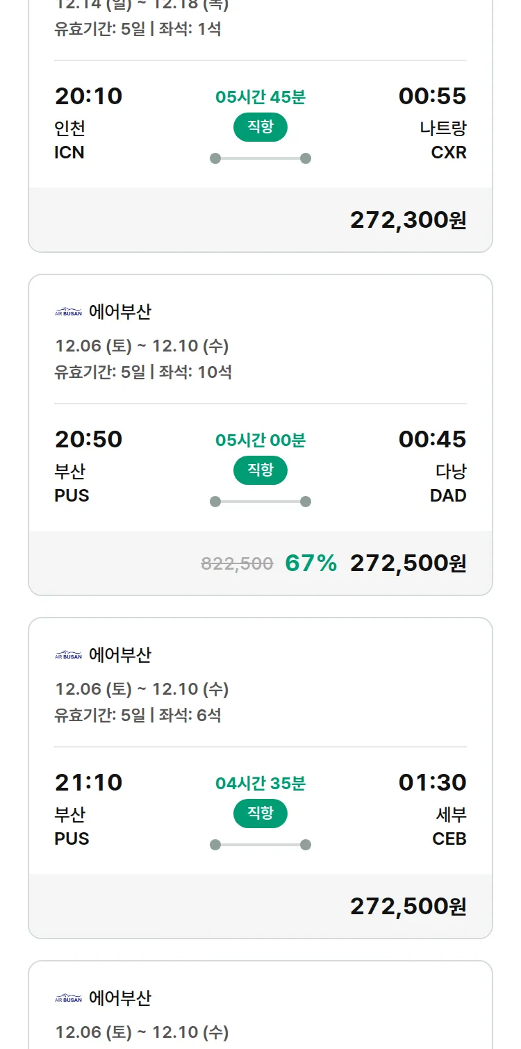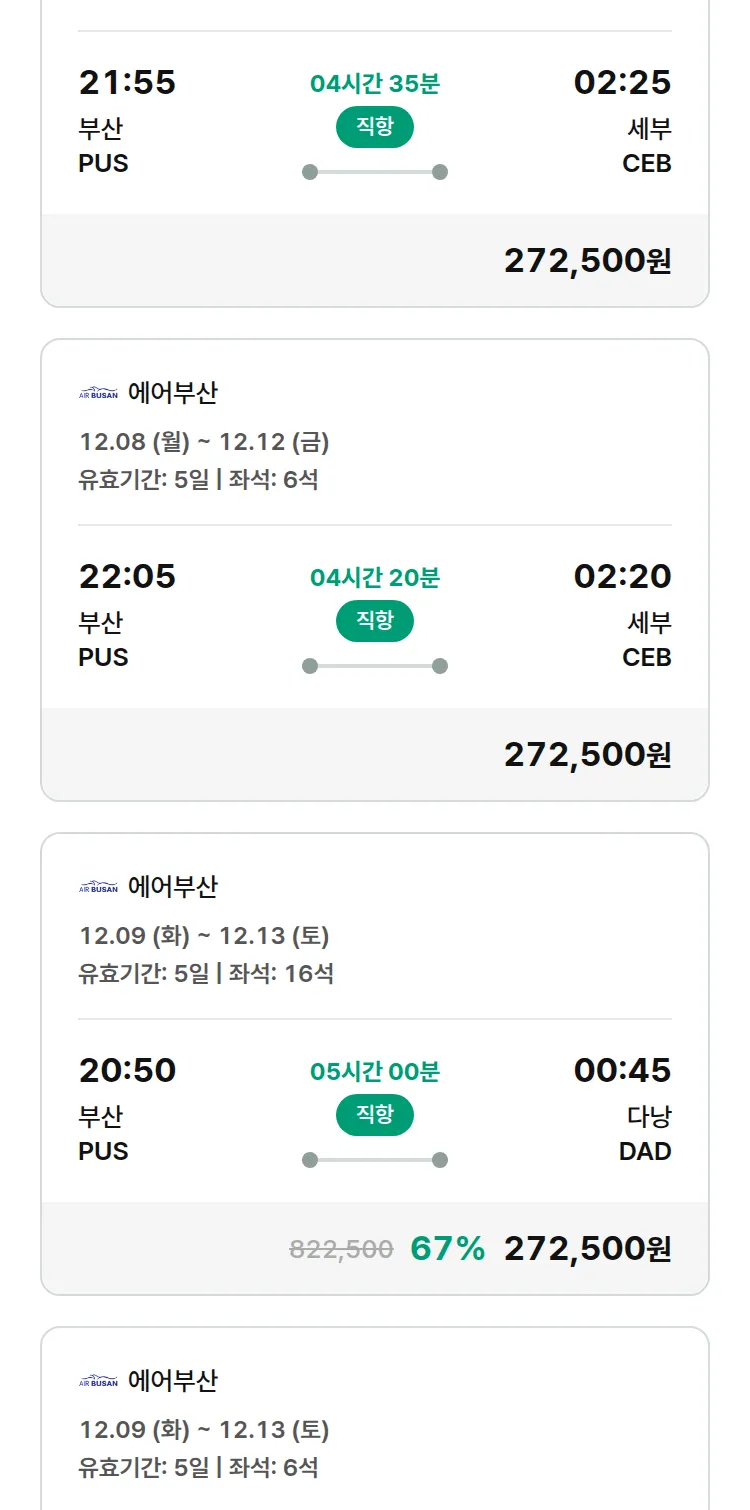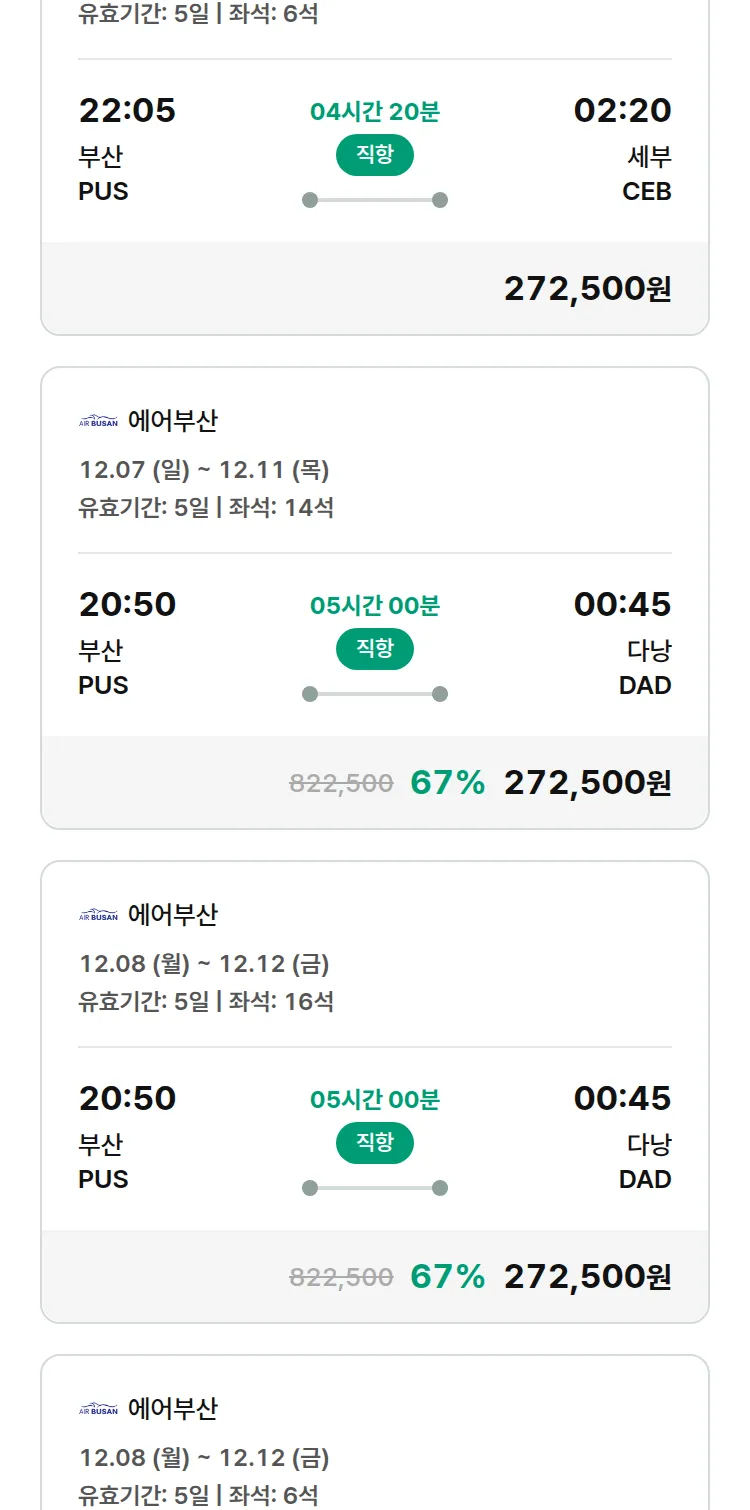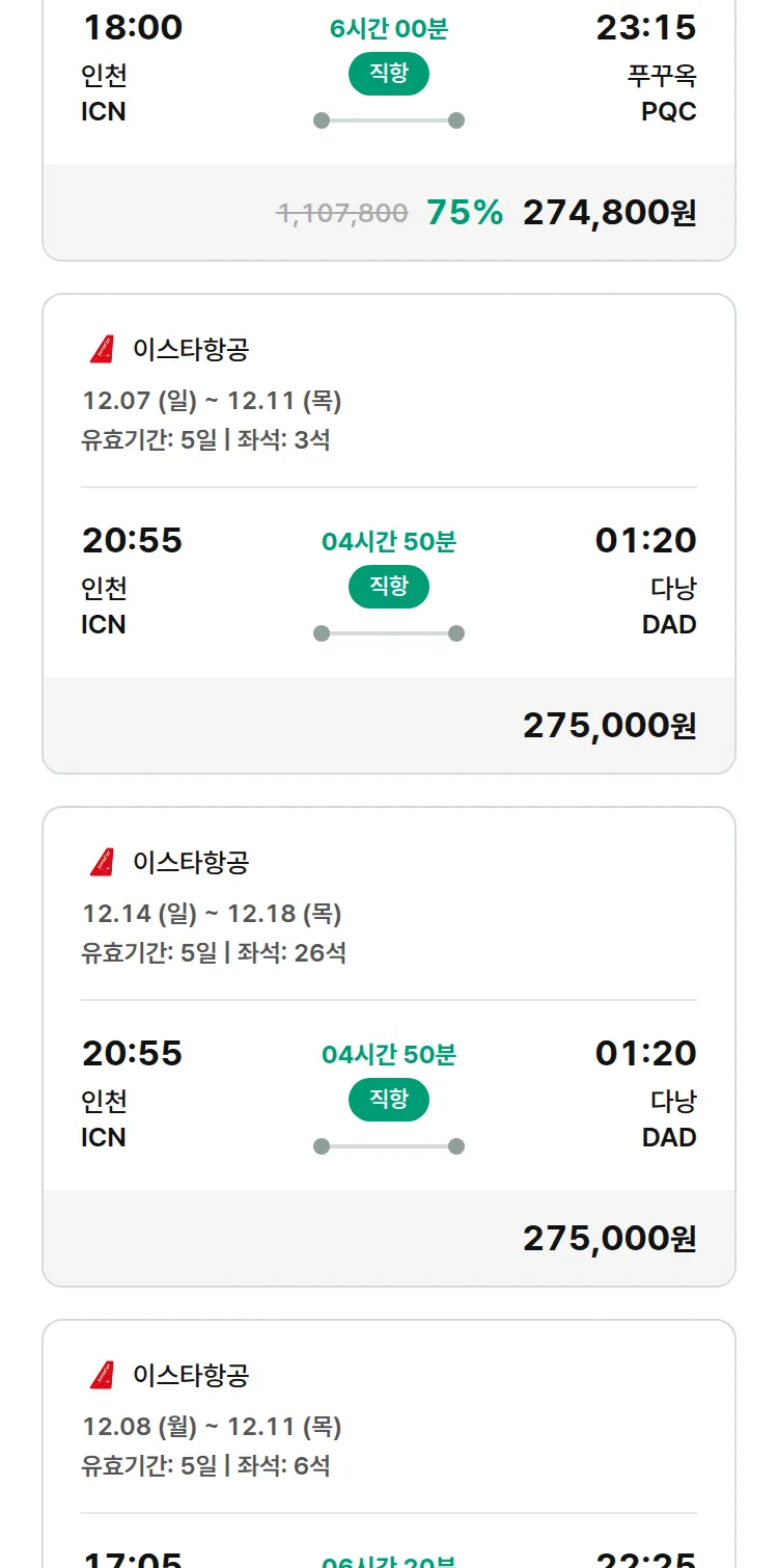 (11월 25일(화)) 땡처리 특가 항공권