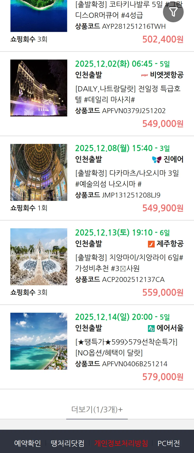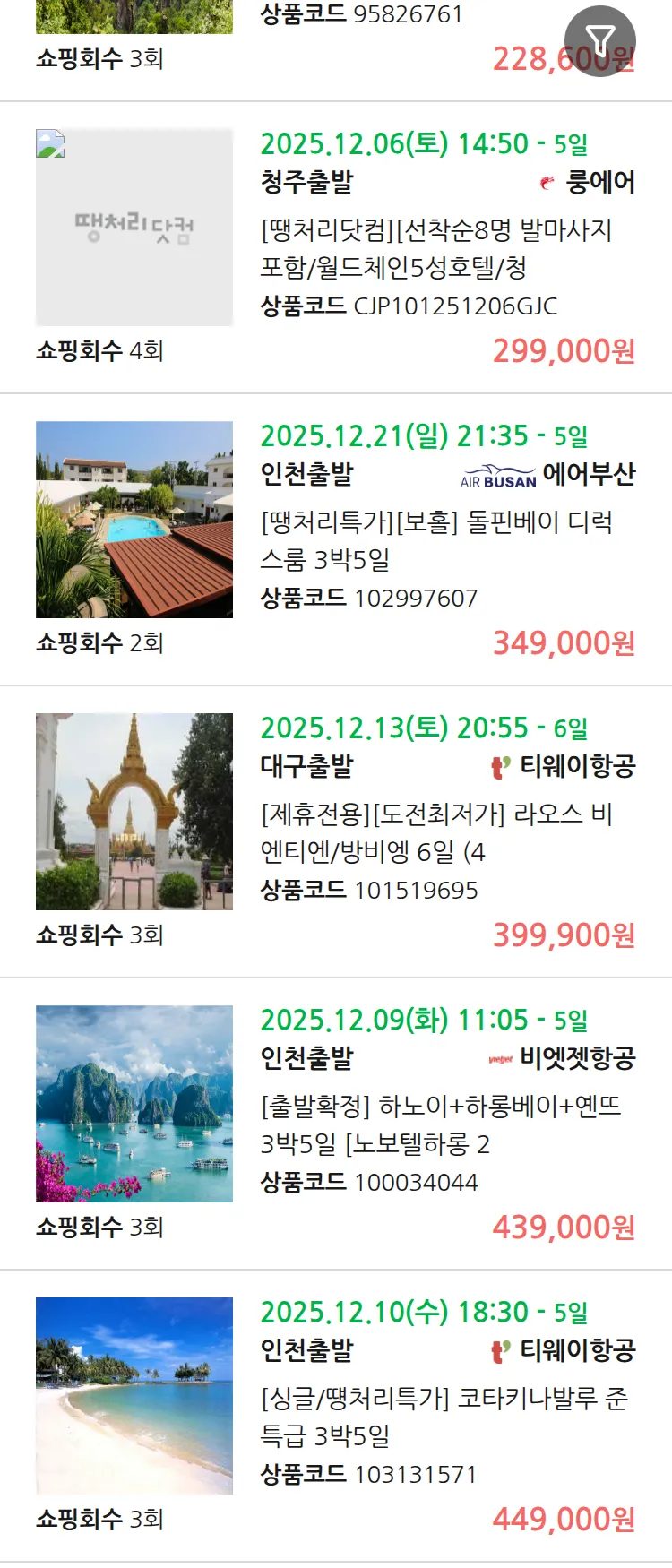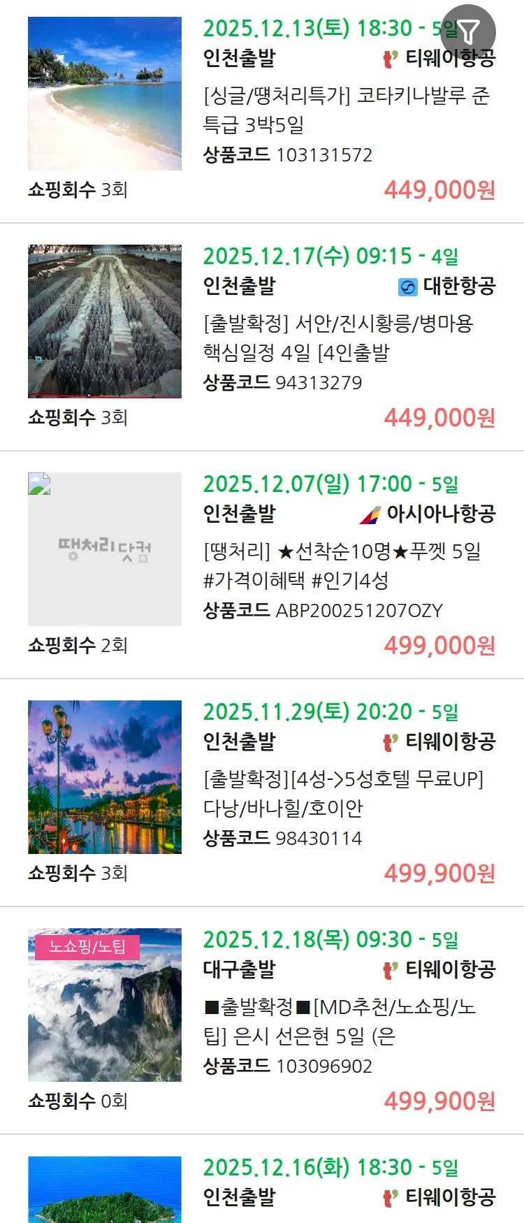 (11월 27일(목)) 땡처리 99.9% 확정 패키지